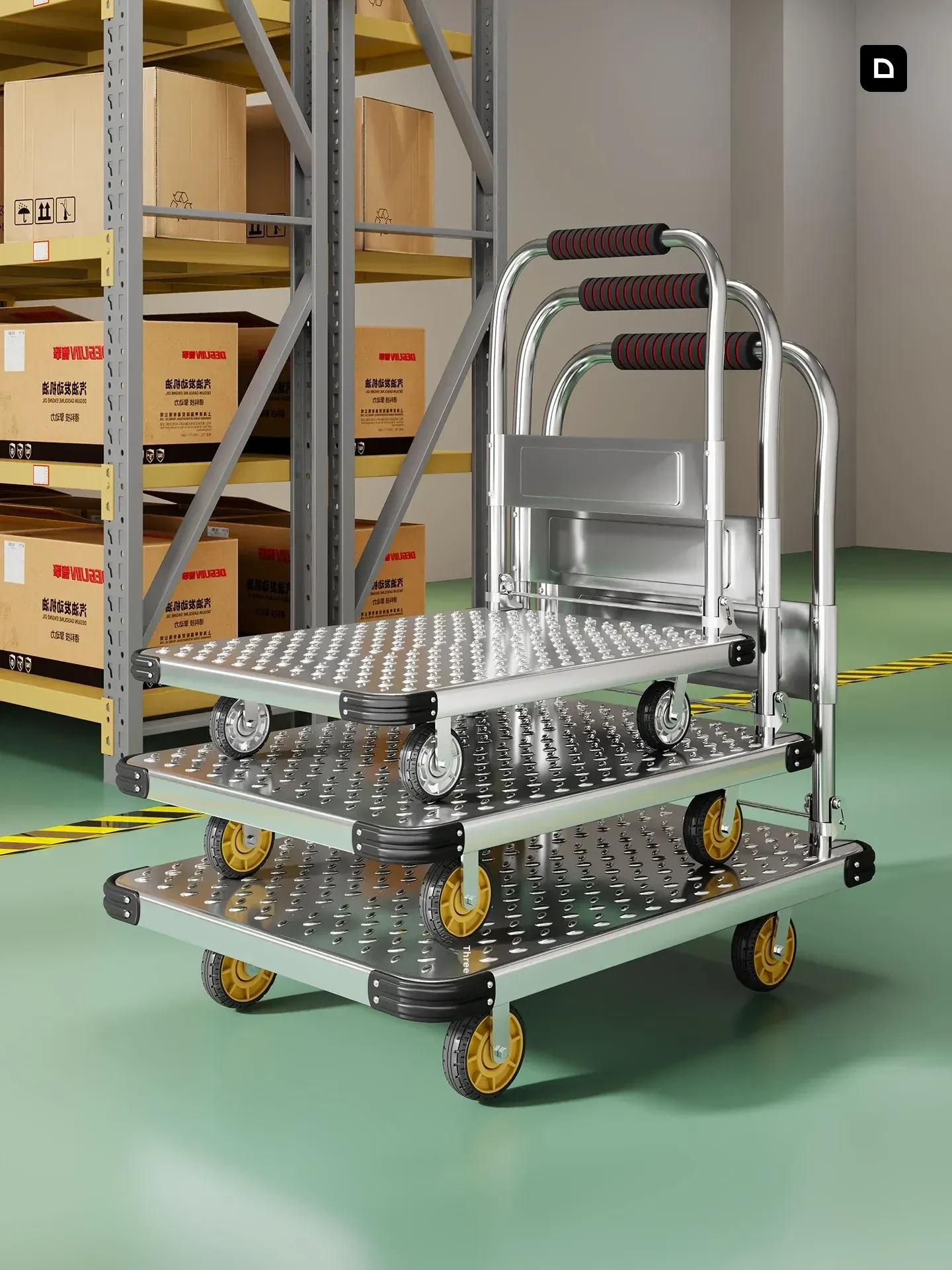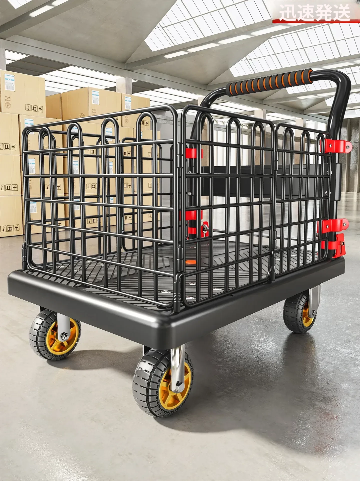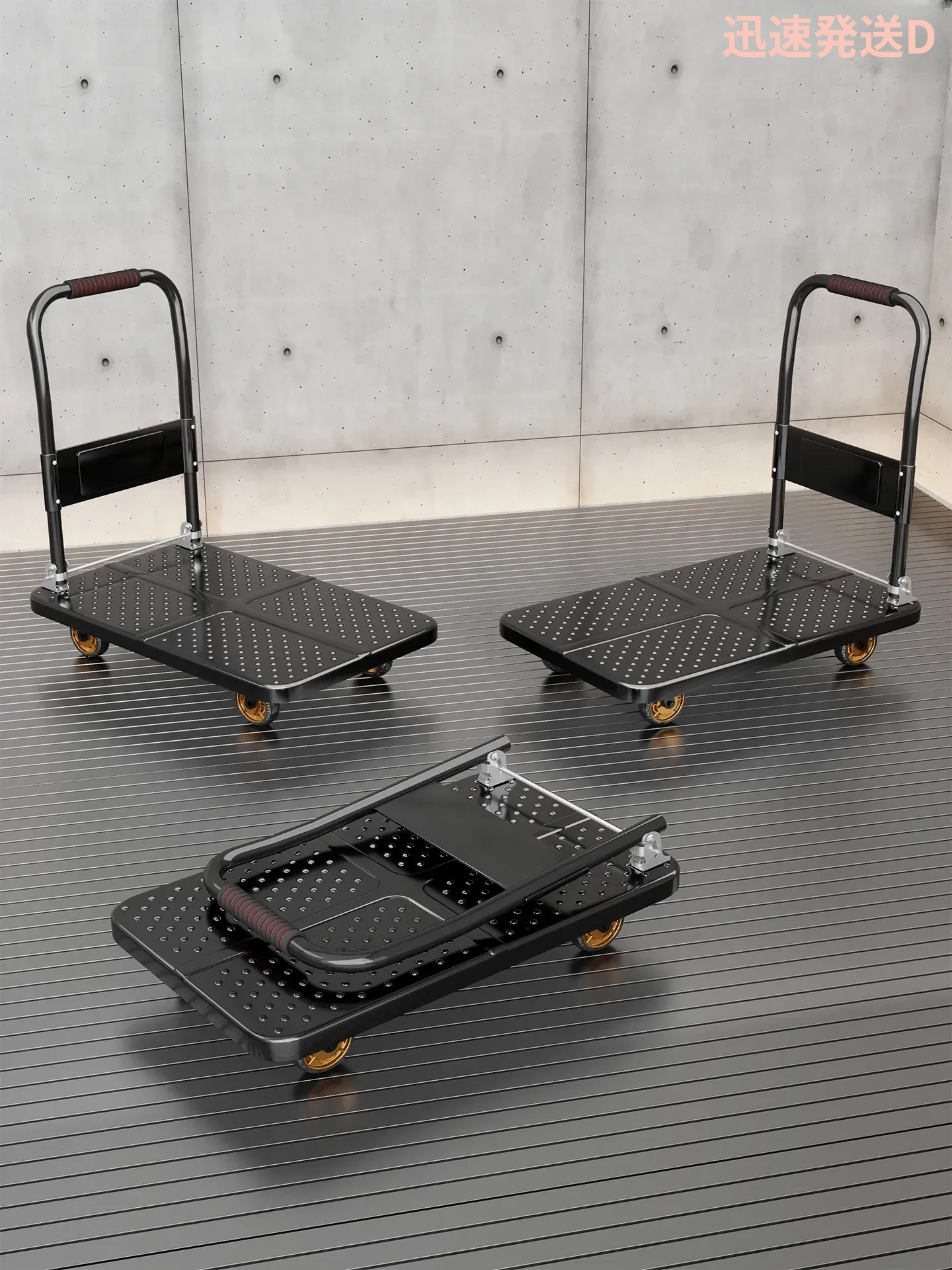 折りたたみ式スチールプレート小型手押しカート - 静音設計で快適な配送&運搬!スーパーや倉庫での使用に最適な、便利なキャリーカートです。