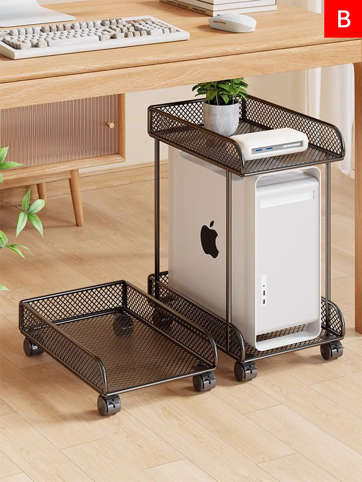 家庭やオフィスに最適!パソコン本体をしっかり支える可動式キャスター付き多段ラック - スペースを有効活用し、快適な作業環境を実現!