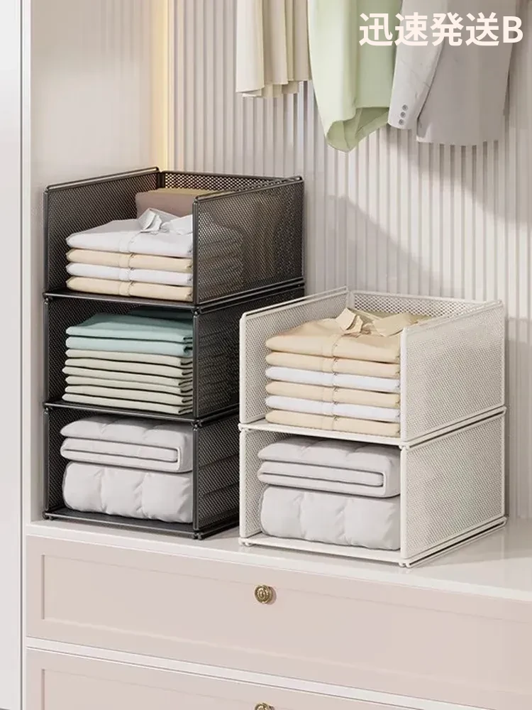 クローゼット引き出し式収納棚 - 階層分けが可能な収納ラック、寝室の整理整頓に最適!重ねて使える便利な収納バスケットで、スペースを有効活用!