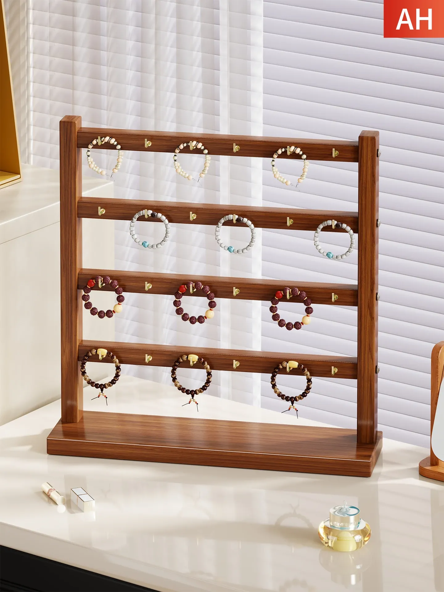 天然木製のジュエリーディスプレイスタンド - 手作りのブレスレットやネックレス、ヘアゴムを美しく整理!仏珠やアクセサリーをスタイリッシュに収納できる、インテリアにも映えるおしゃれなアイテムです。