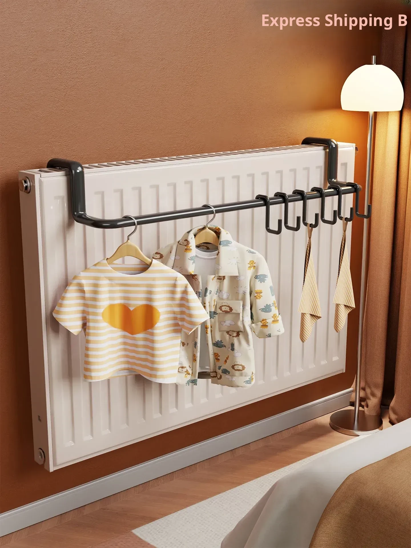 Radiator Clothes Drying Rack with Hooks - No Drill Towel Holder and Hanging Rod, Convenient Storage Solution for Effortless Drying on Radiators