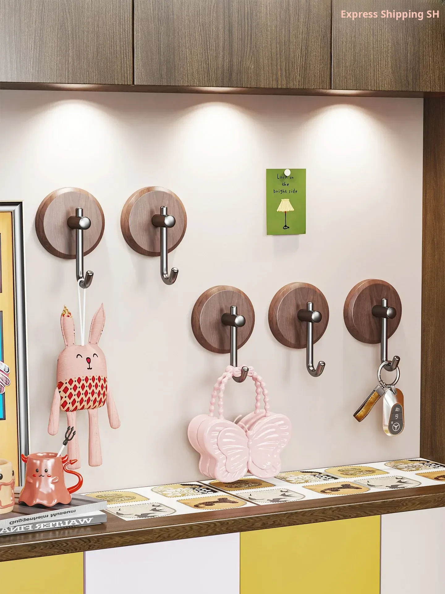 Premium Walnut Wood Grain Wall Hook - No Drill Door-Mounted Clothes Hook, Strong Adhesive Single Hook for Entryway, Perfect for Organizing Your Space