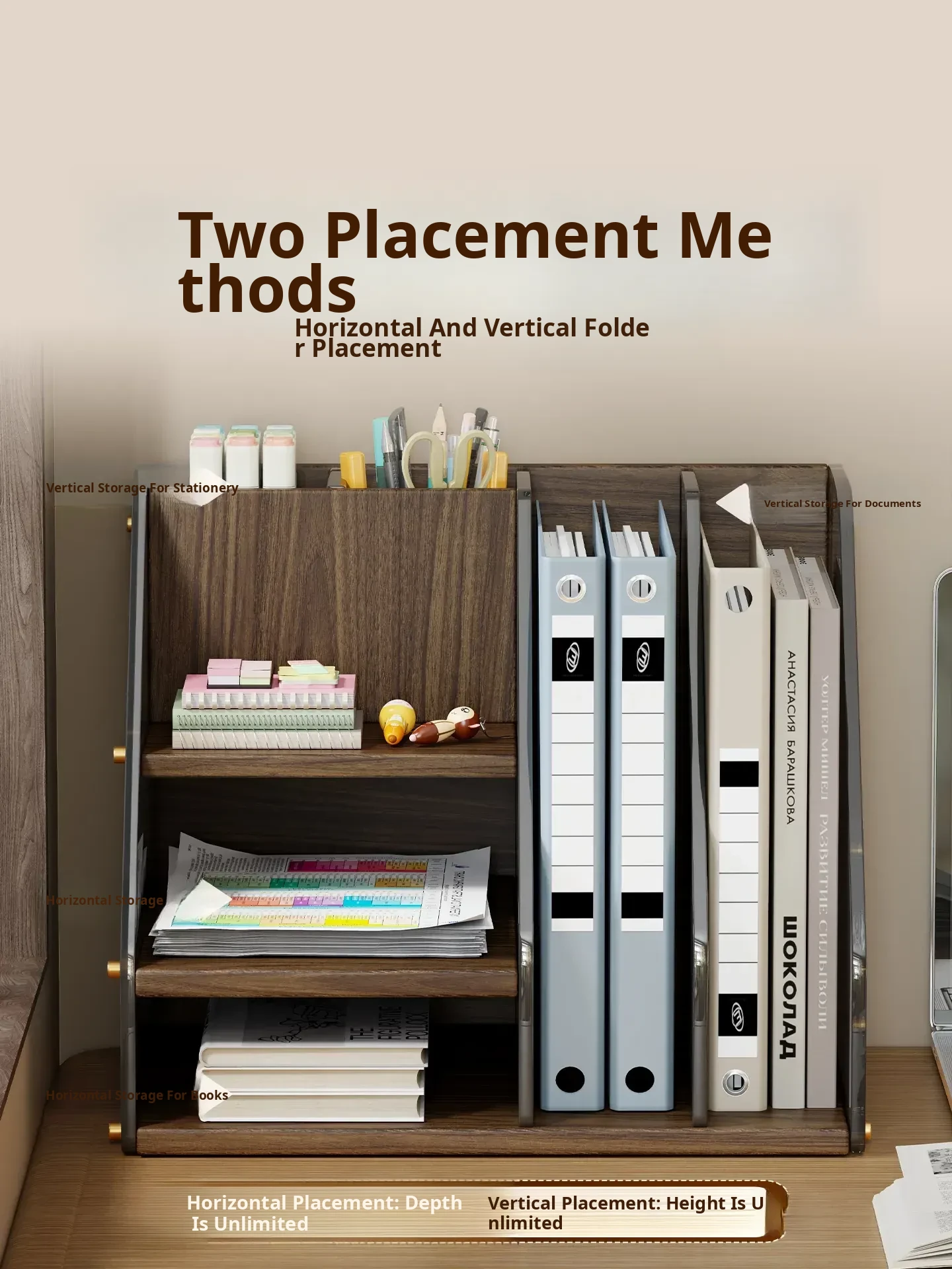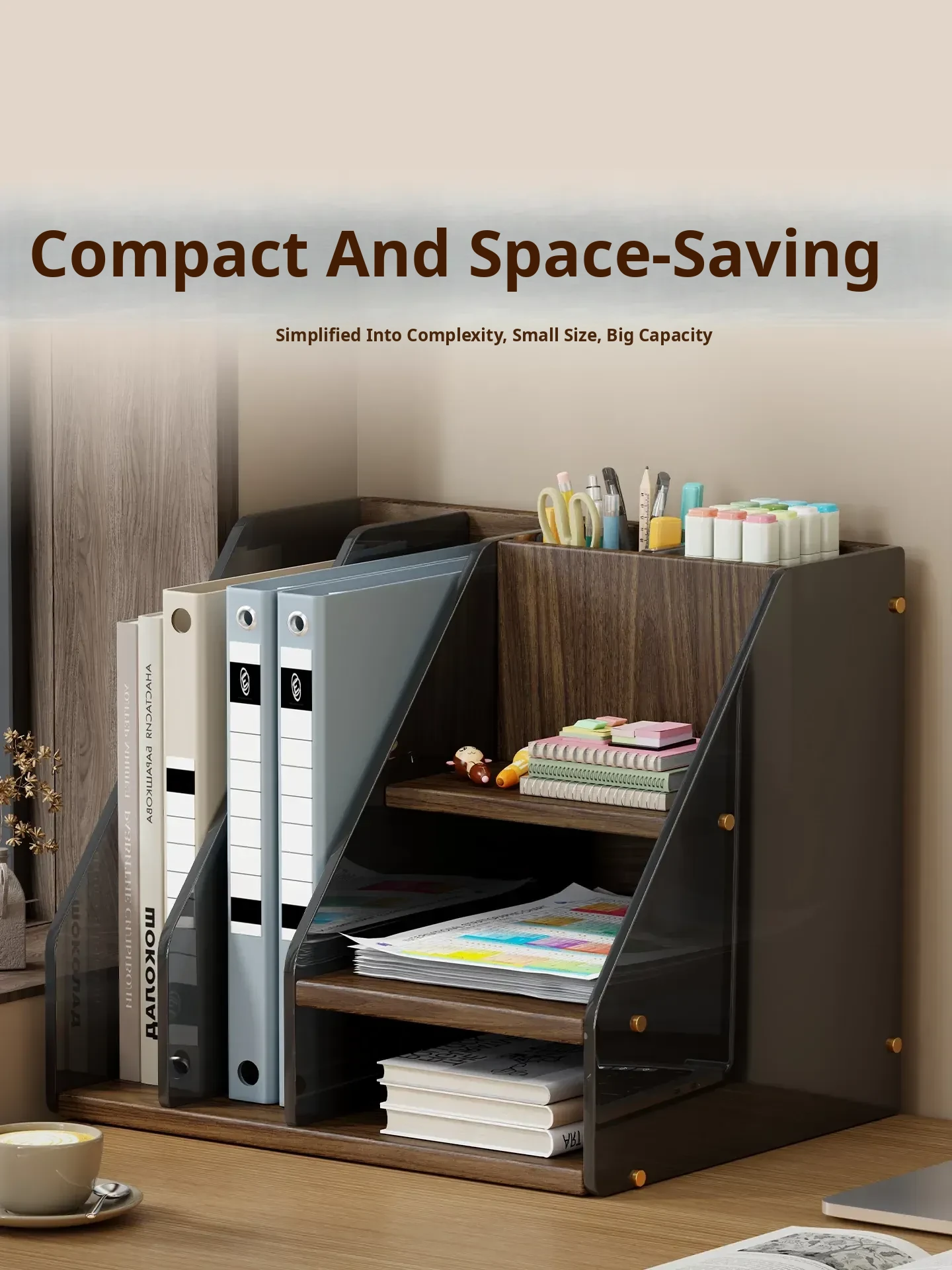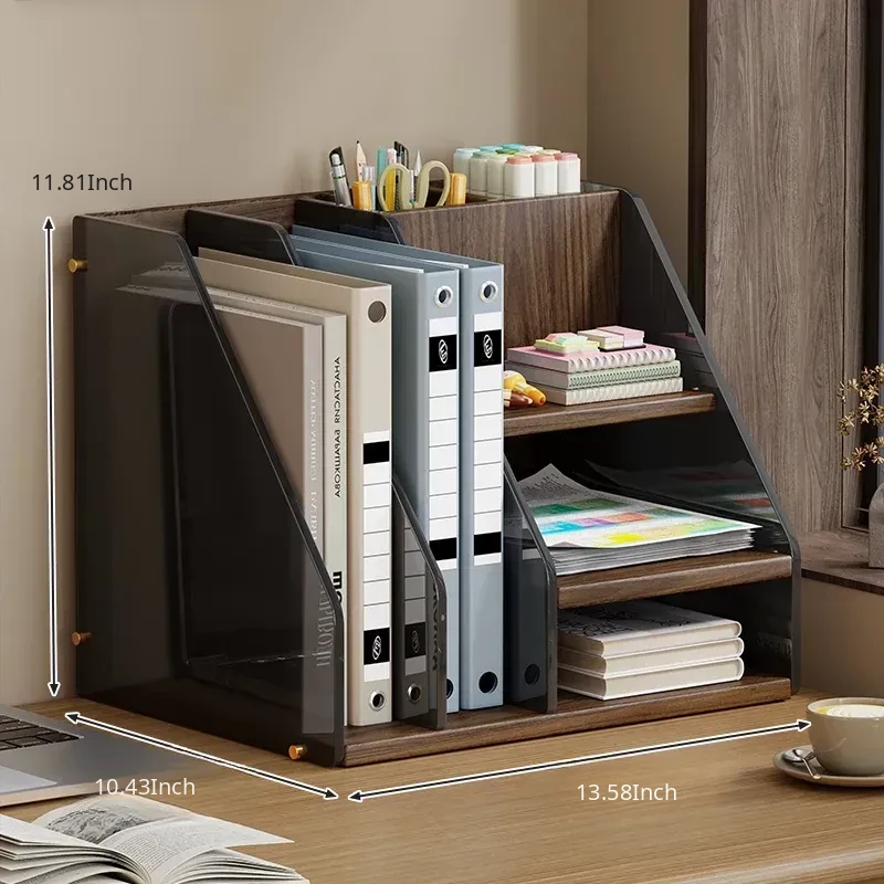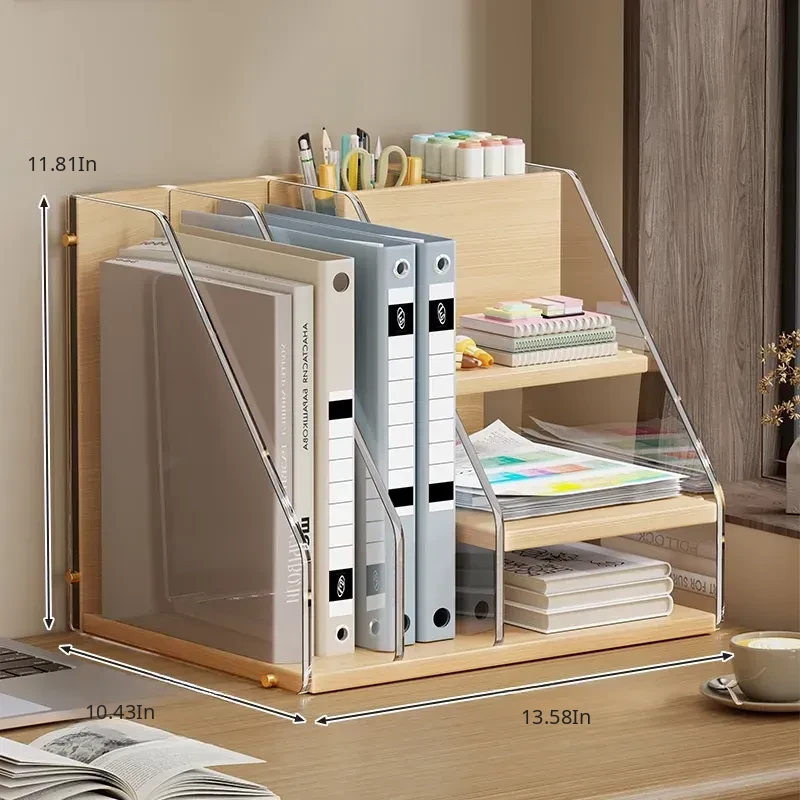 Desktop Organizer Shelf - Stylish Office Desk Book Stand, File Storage Box, Pen Holder, and Space-Saving Bookshelf - Perfect for Maximizing Your Workspace Efficiency!
