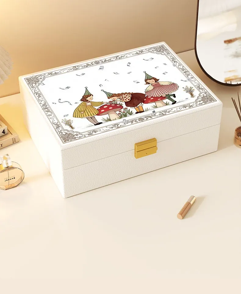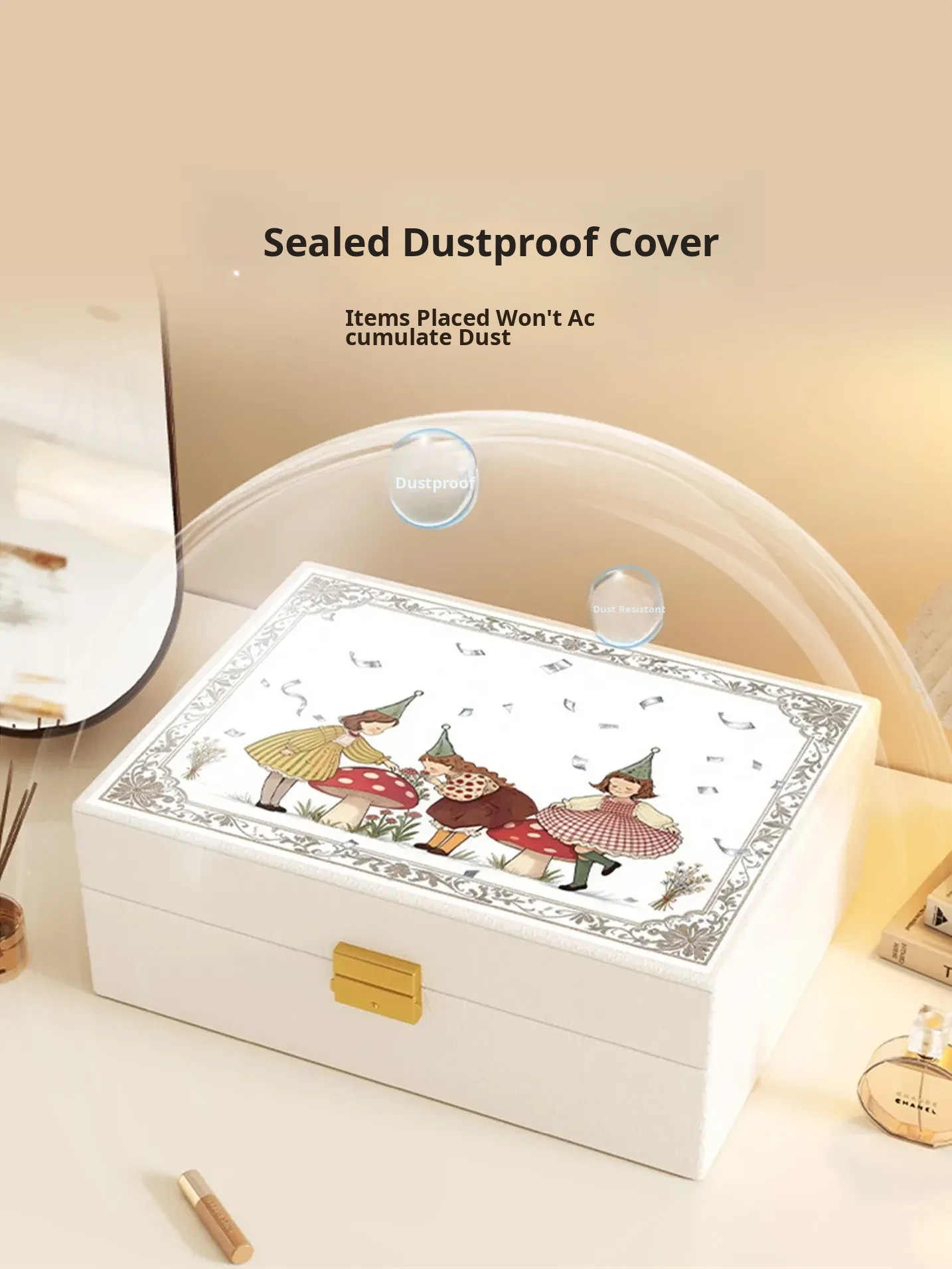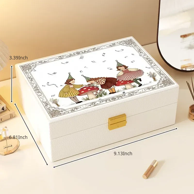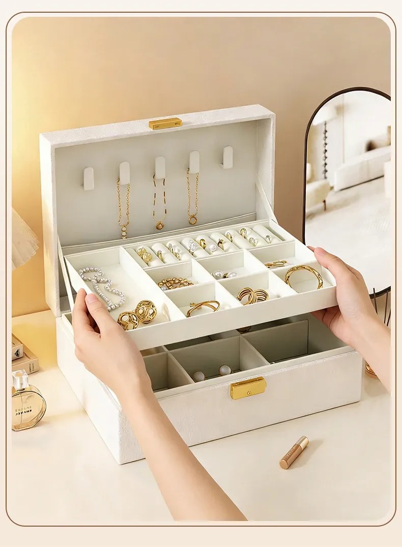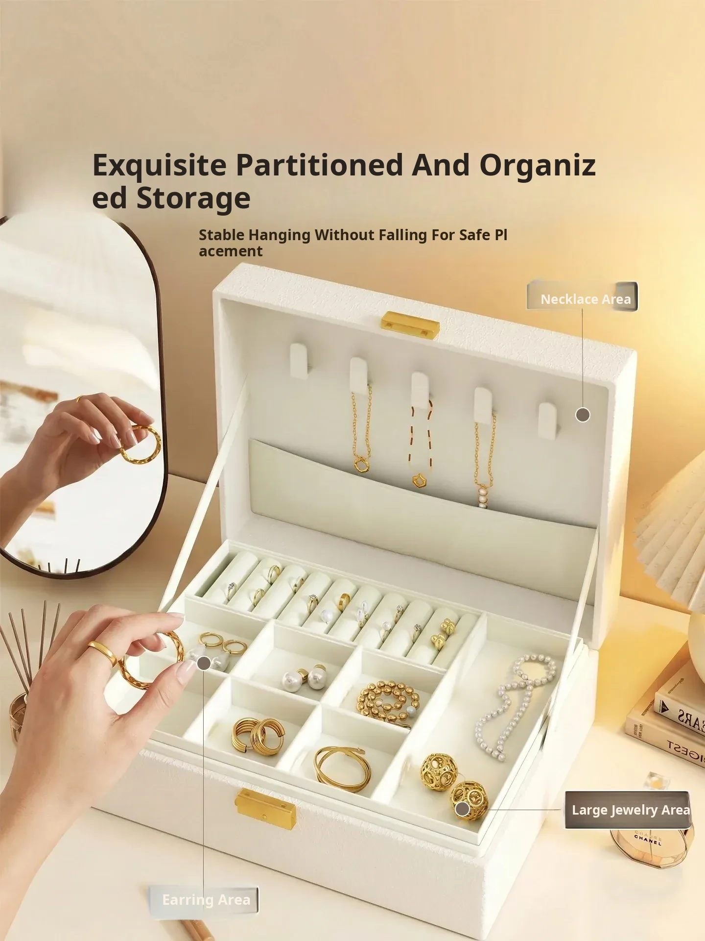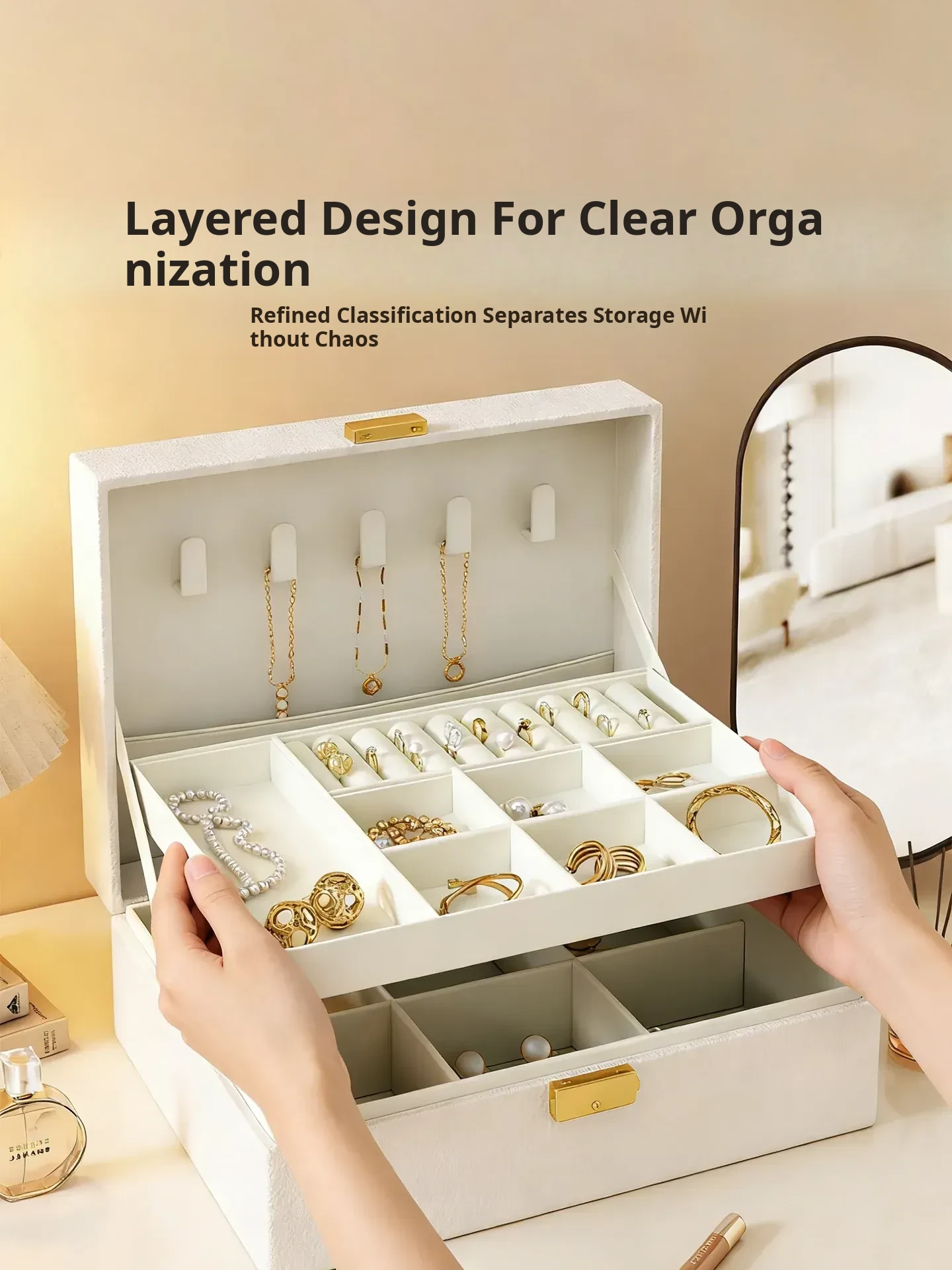 Elegant Cream Jewelry Organizer Box - Compact & Luxurious Storage for Necklaces, Earrings, and Rings - Portable High-Capacity Solution for Your Precious Accessories
