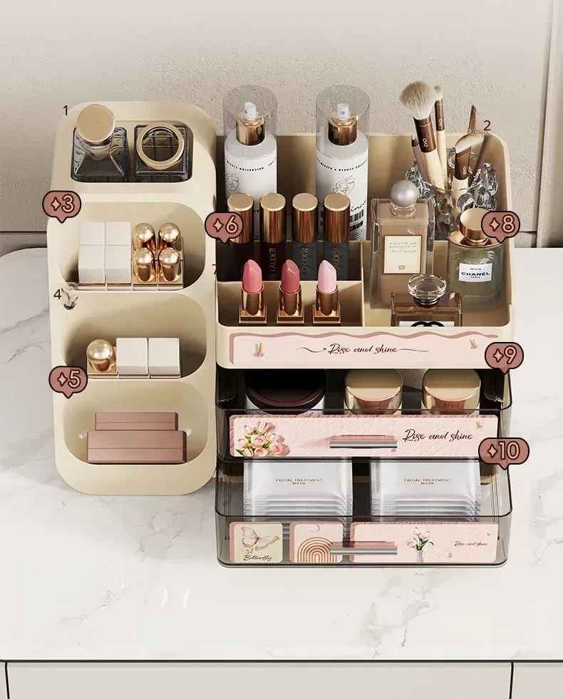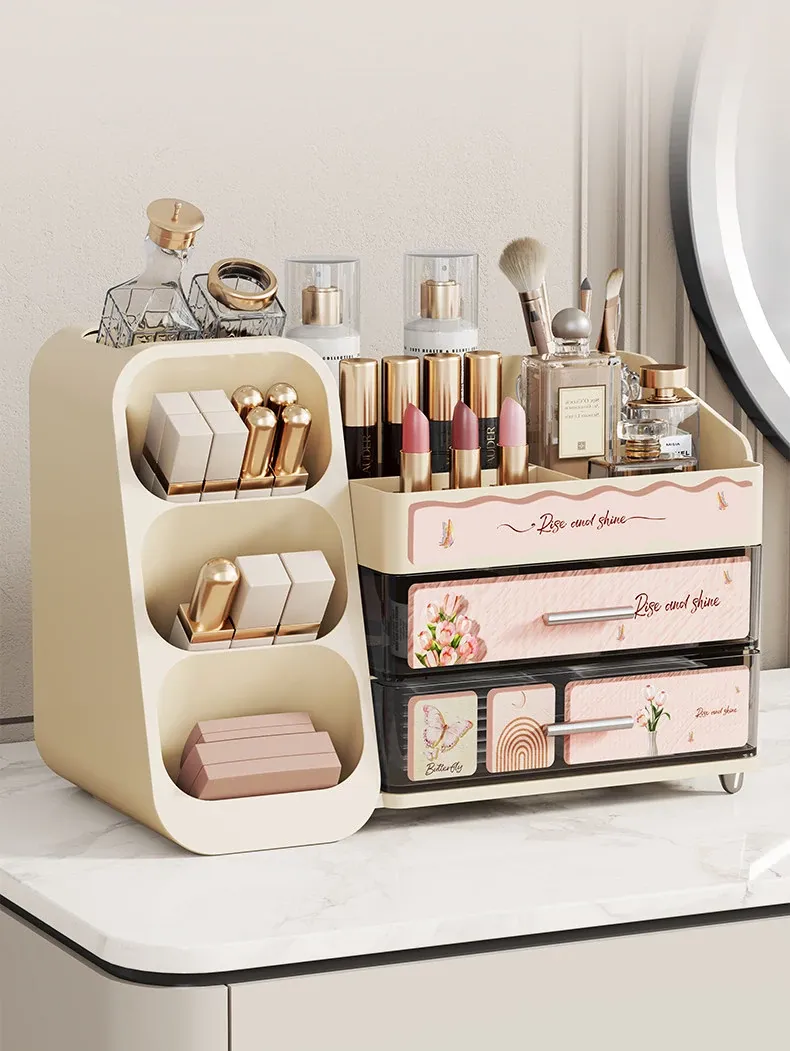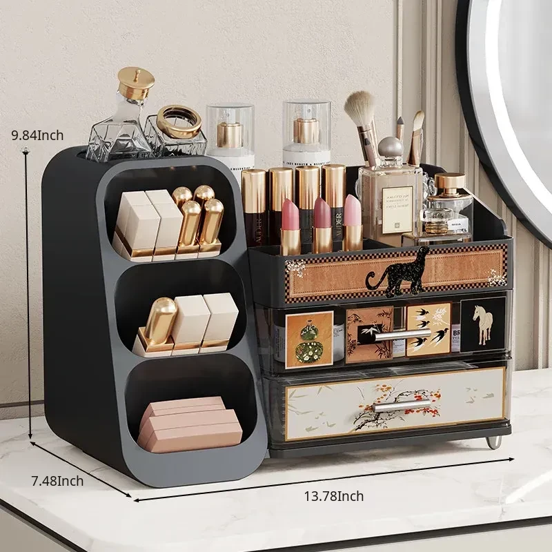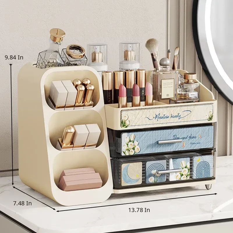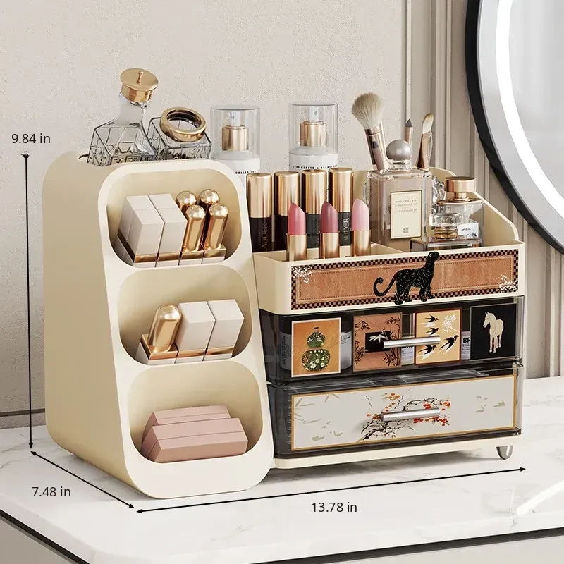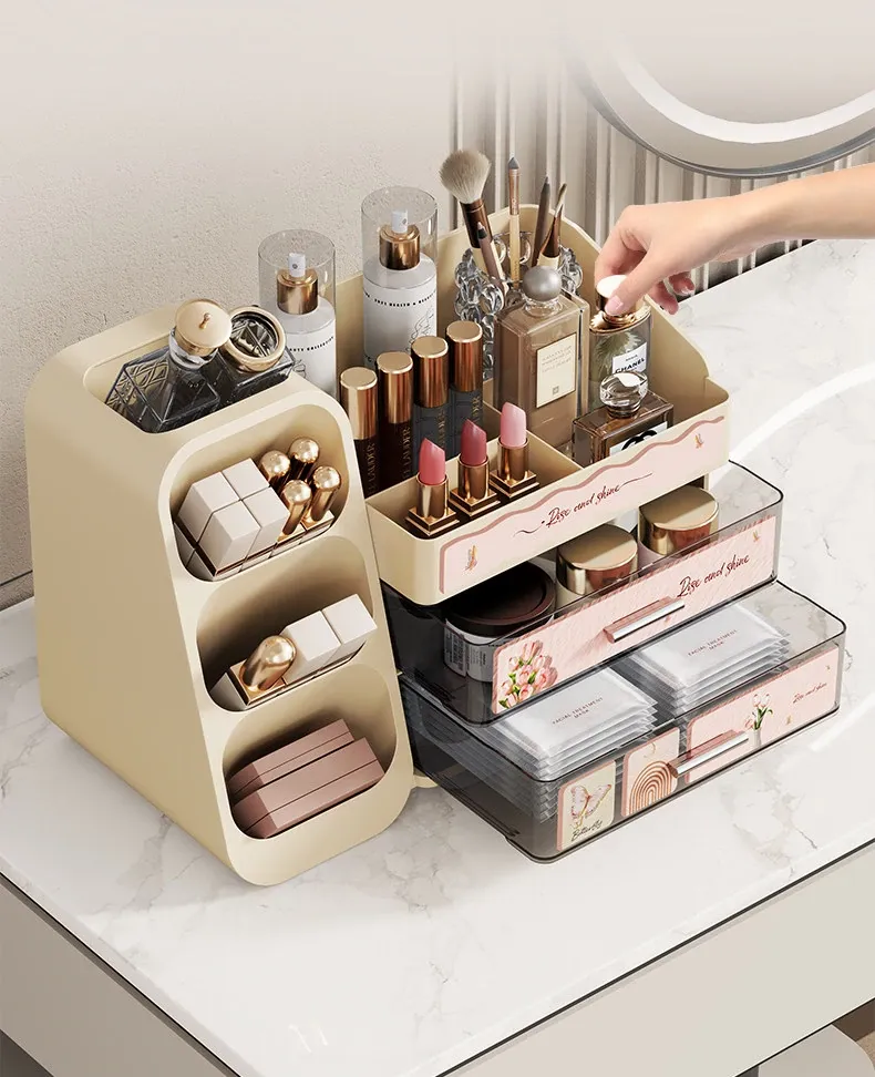 Elegant Large-Capacity Makeup Organizer with Drawer - Stylish Vanity Storage for Cosmetics, Skincare, Lipsticks, and Masks
