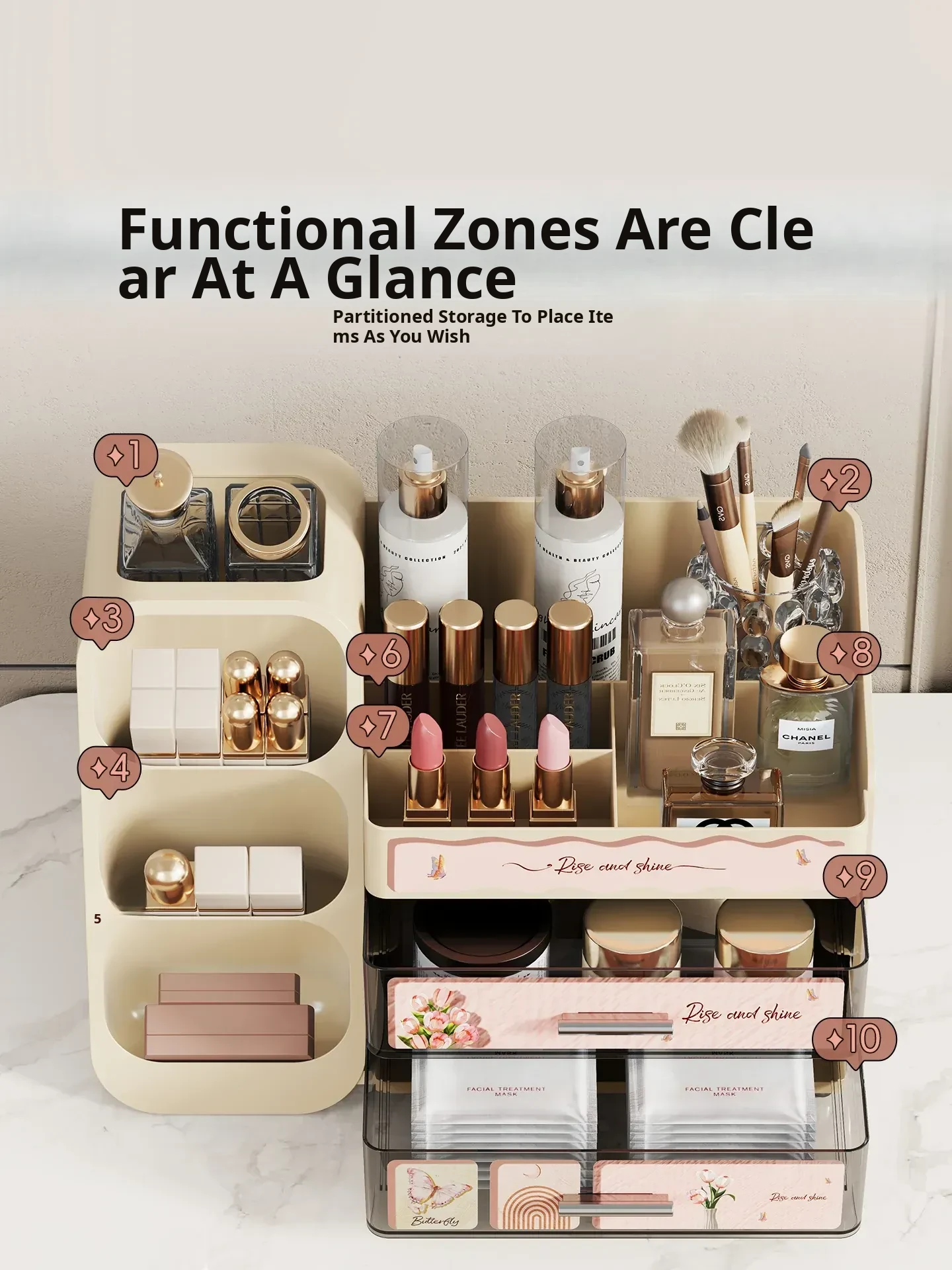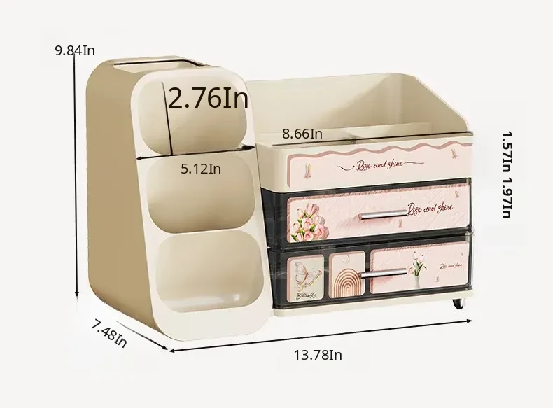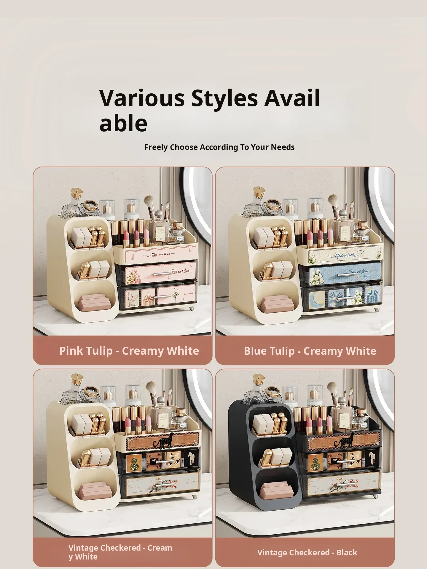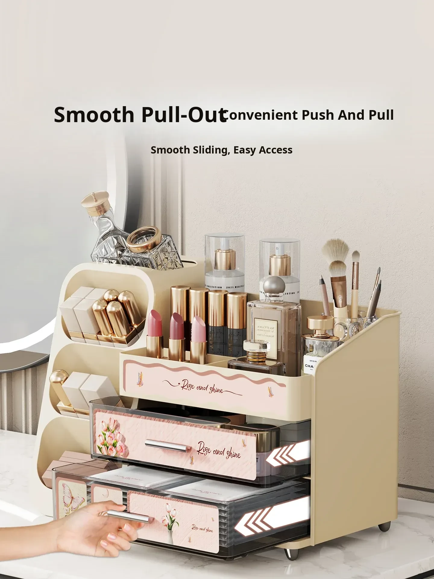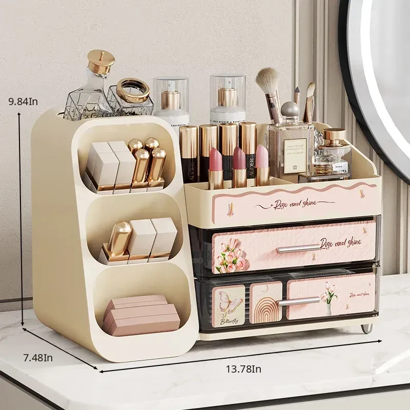 Elegant Large-Capacity Makeup Organizer with Drawer - Stylish Vanity Storage for Cosmetics, Skincare, Lipsticks, and Masks