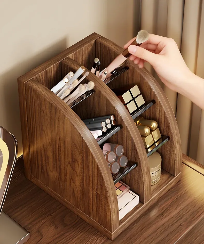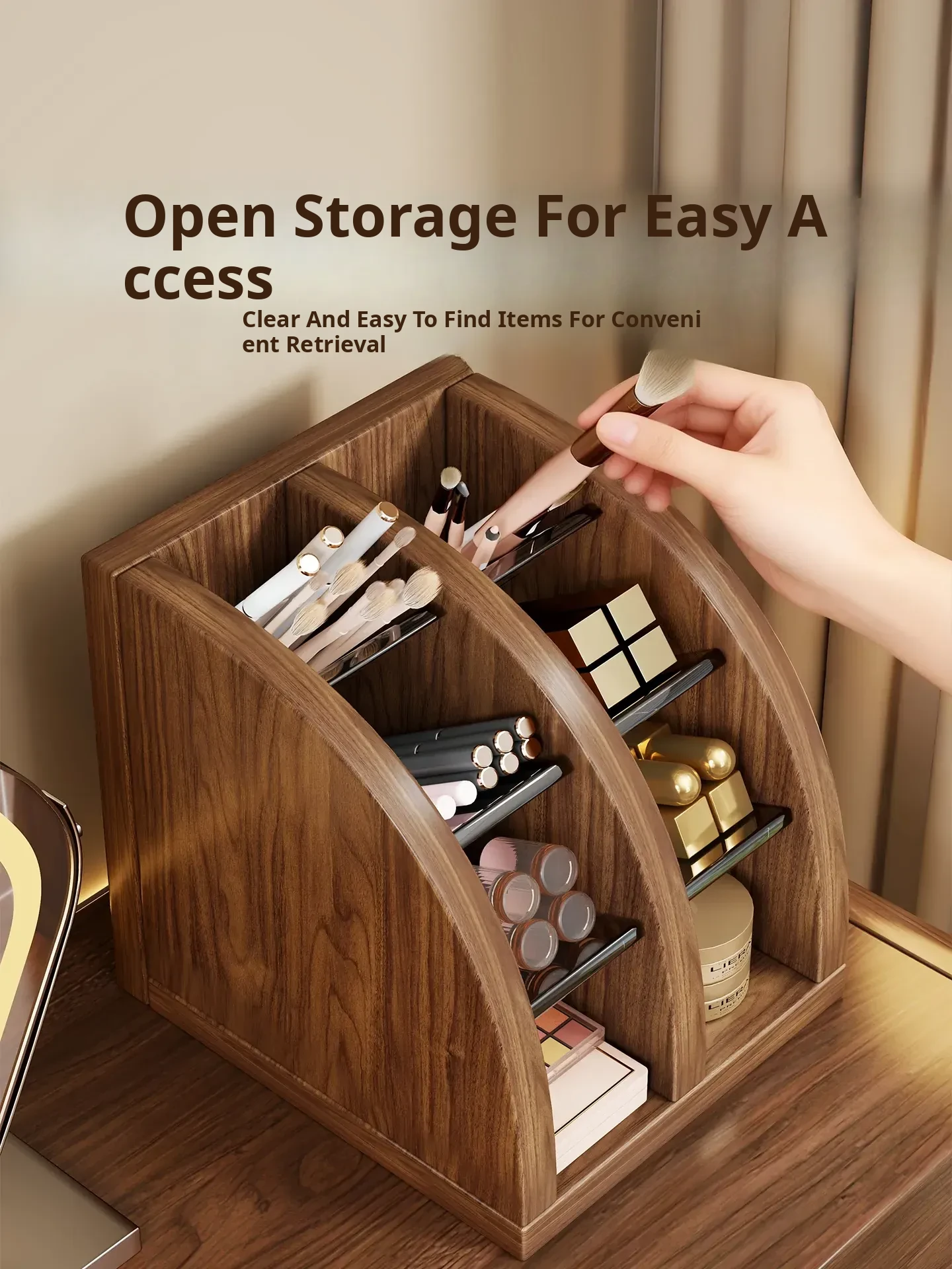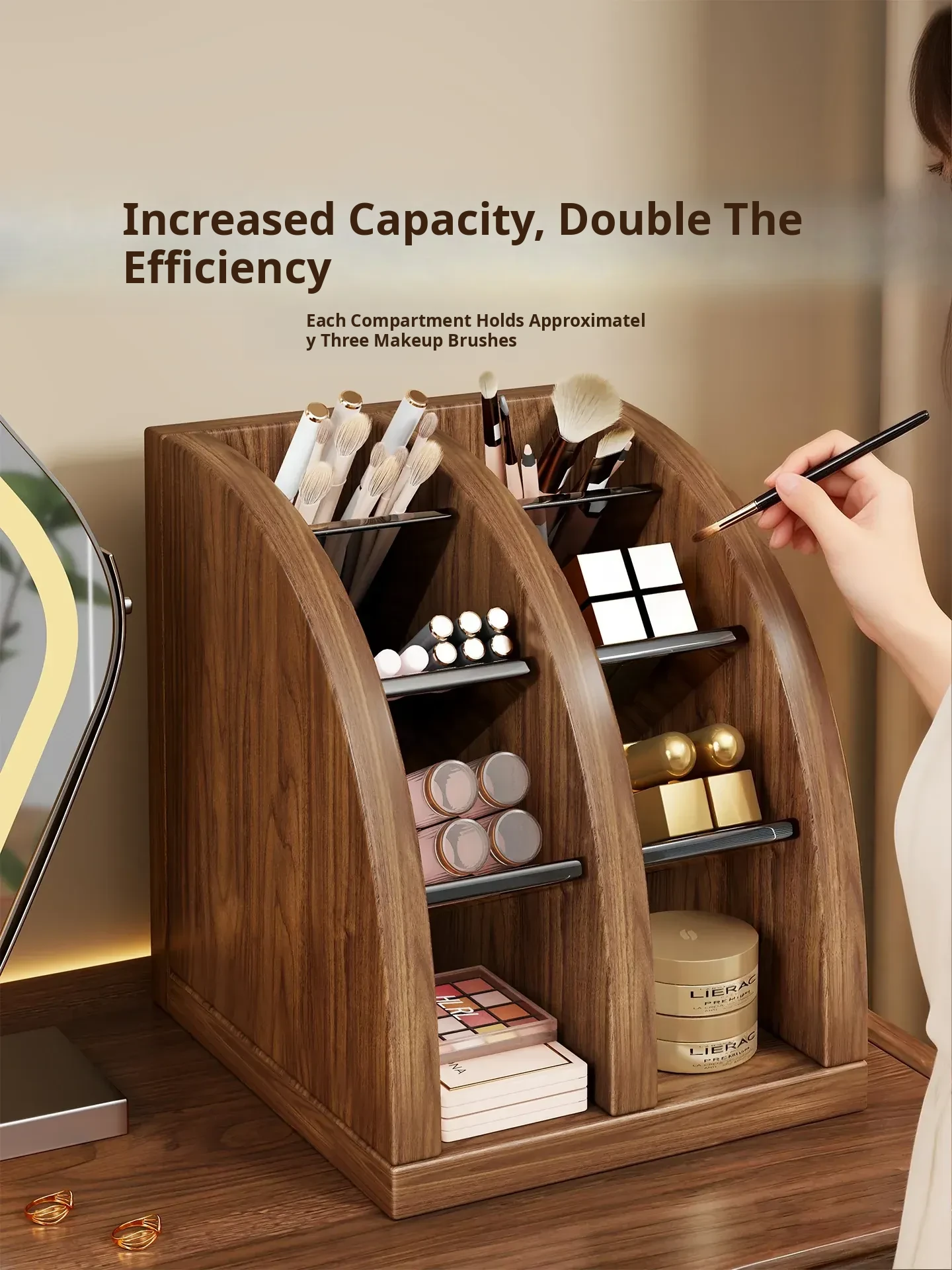Elegant Makeup Brush Organizer - Stylish Vanity Desktop Holder for Eyeshadow, Eyebrow Pencils, and Powder Brushes - Chic Divided Storage for Lipsticks and More