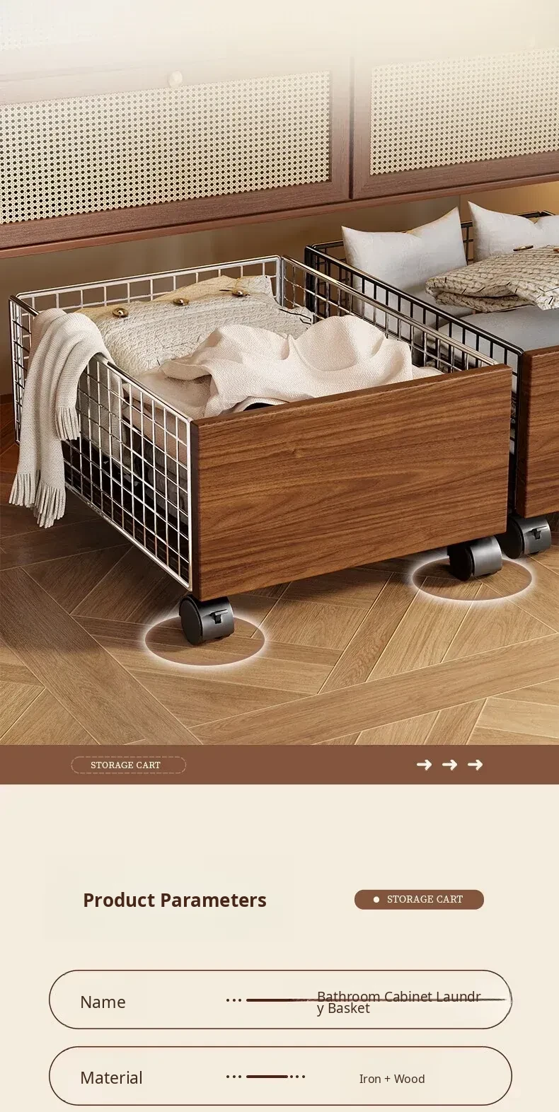 Large Capacity Laundry Hamper with Wheels - Movable Bathroom Cart for Easy Storage of Dirty Clothes - Stylish and Functional Washing Basket for Your Bathroom