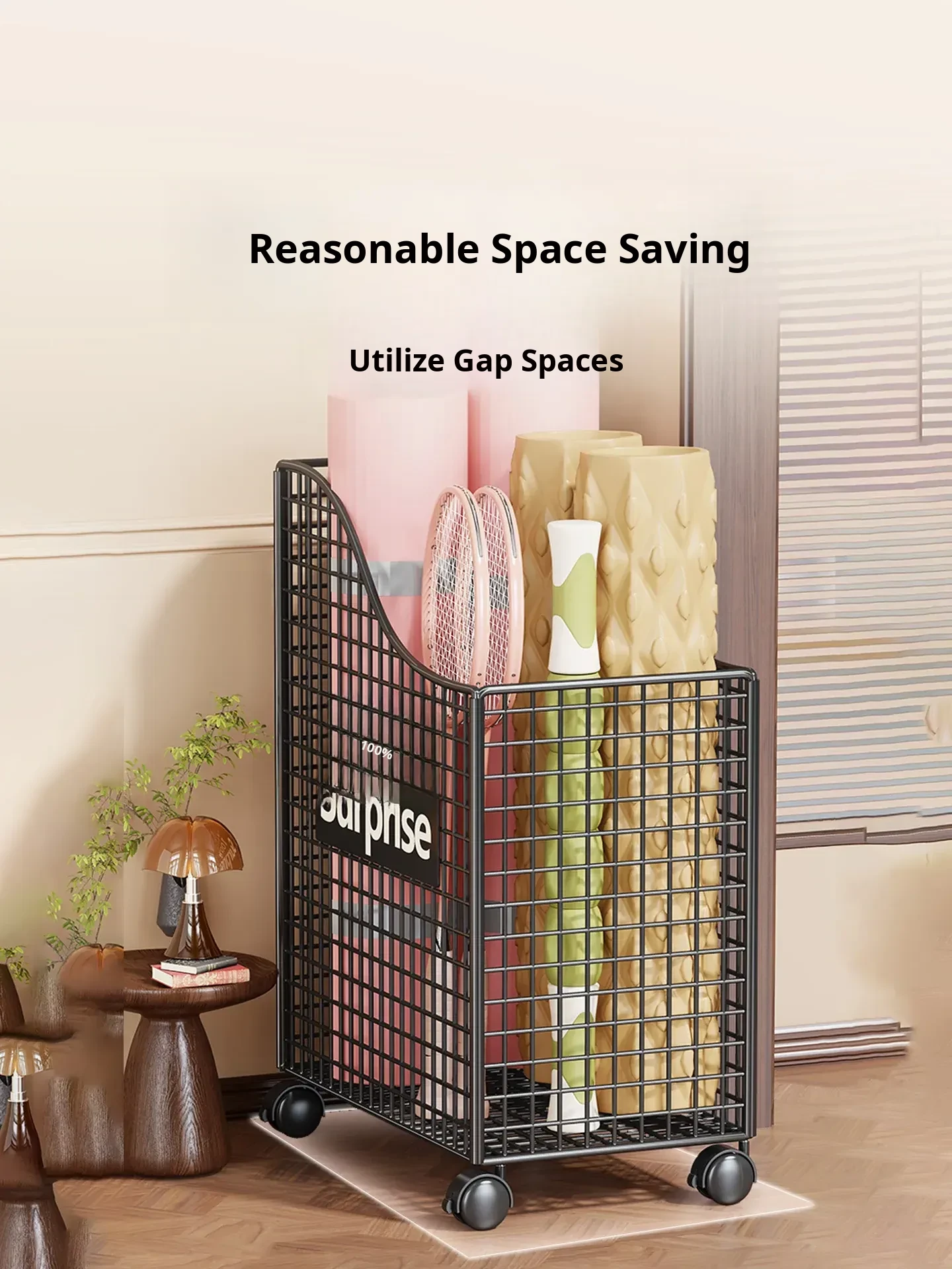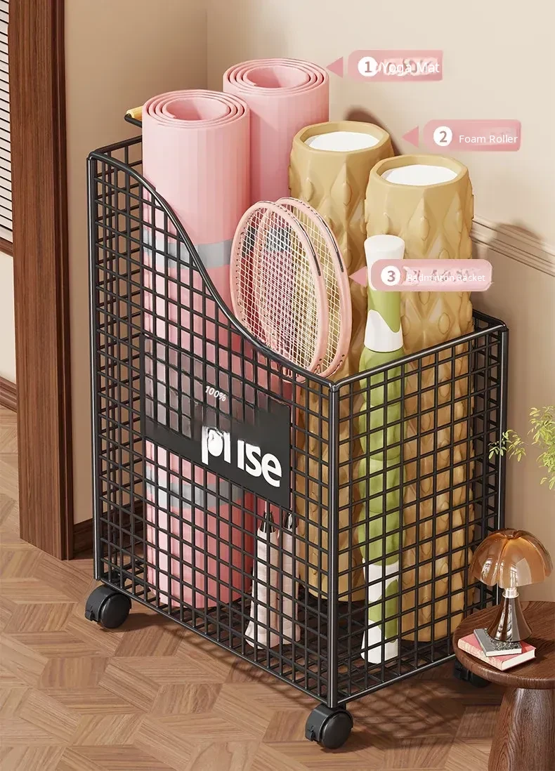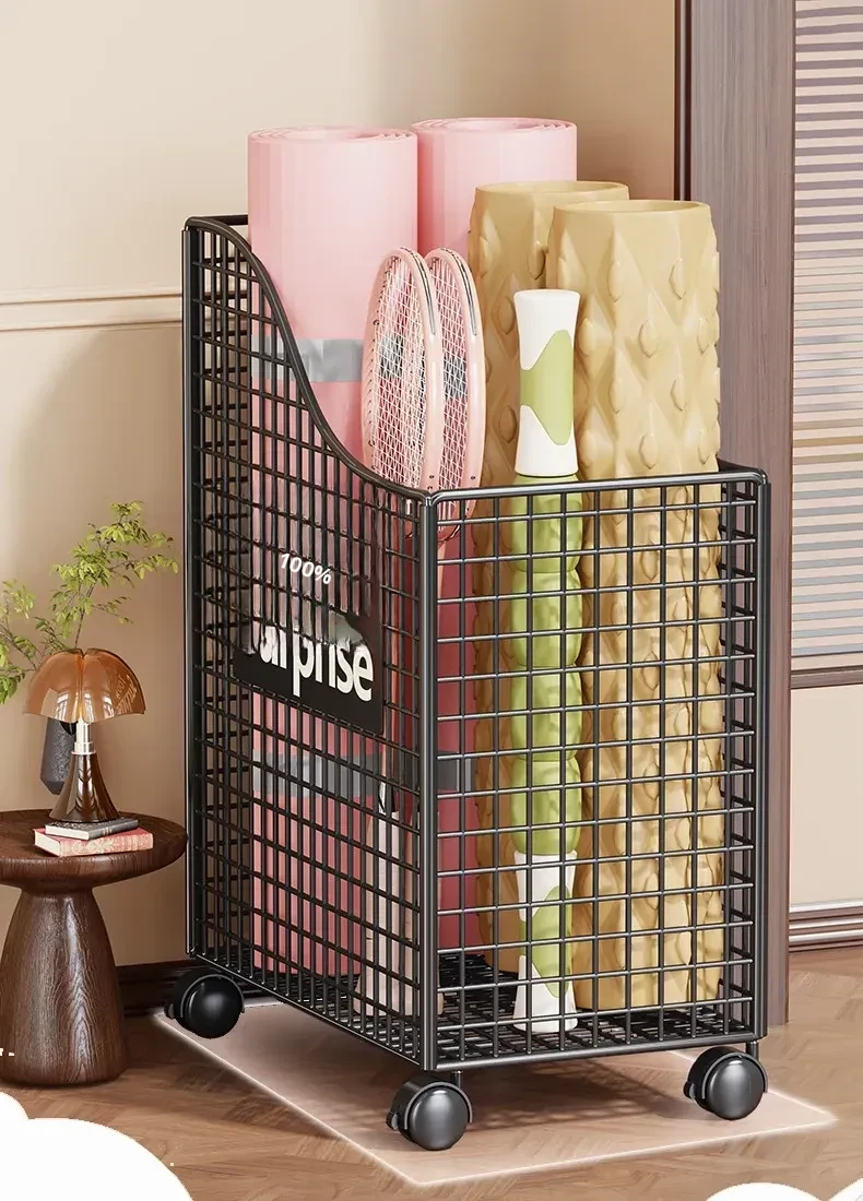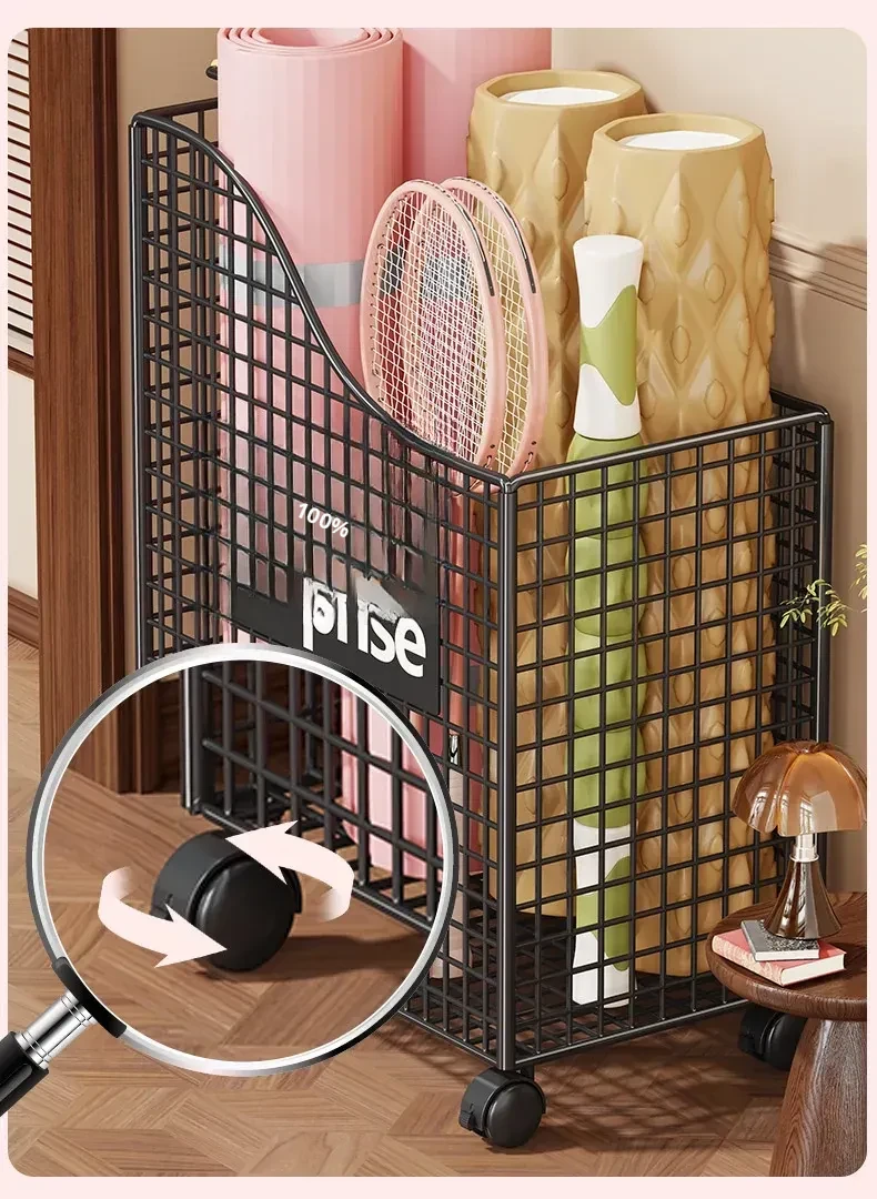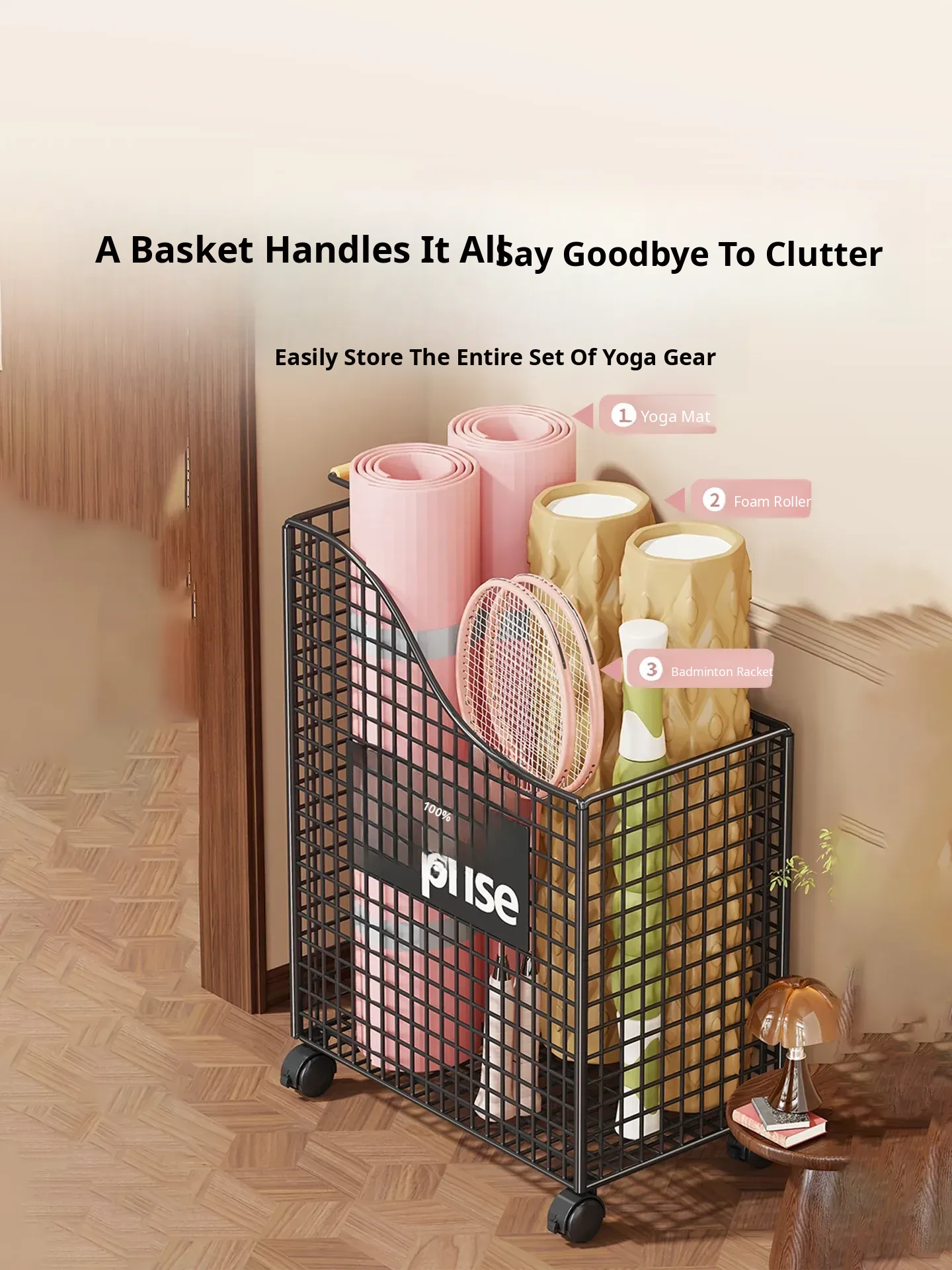 Large Capacity Yoga Mat Storage Basket with Wheels - Portable Fitness Equipment Organizer for Home Use, Ideal for Tight Spaces and Easy Access
