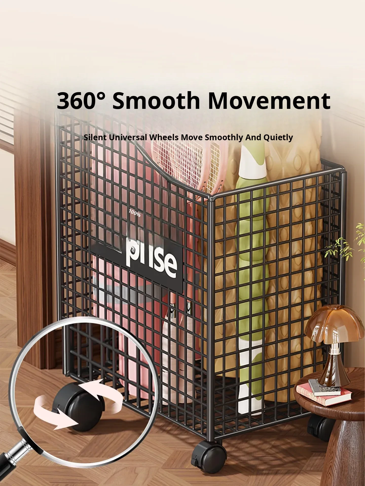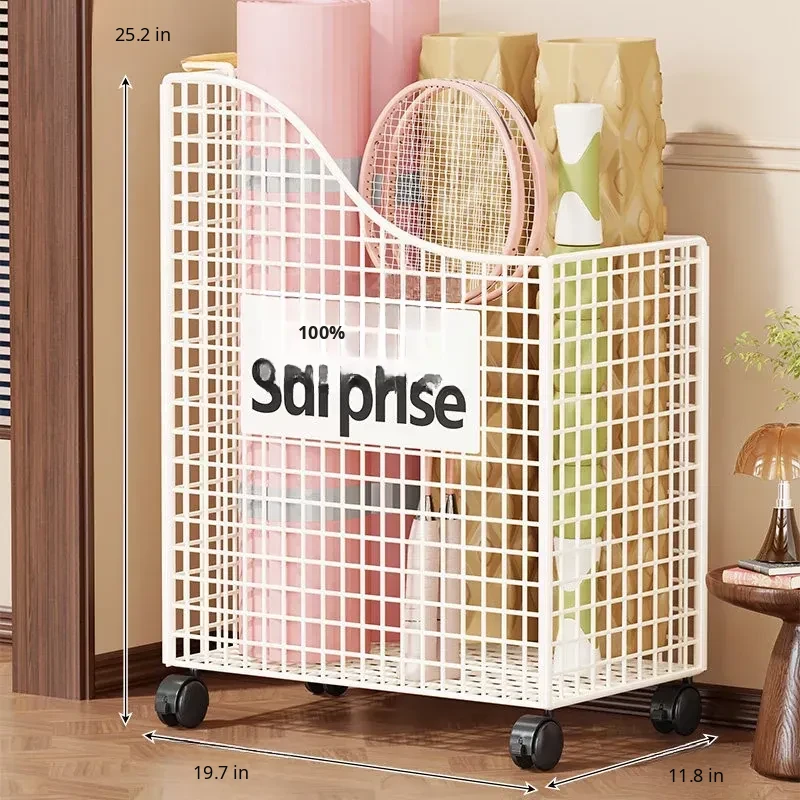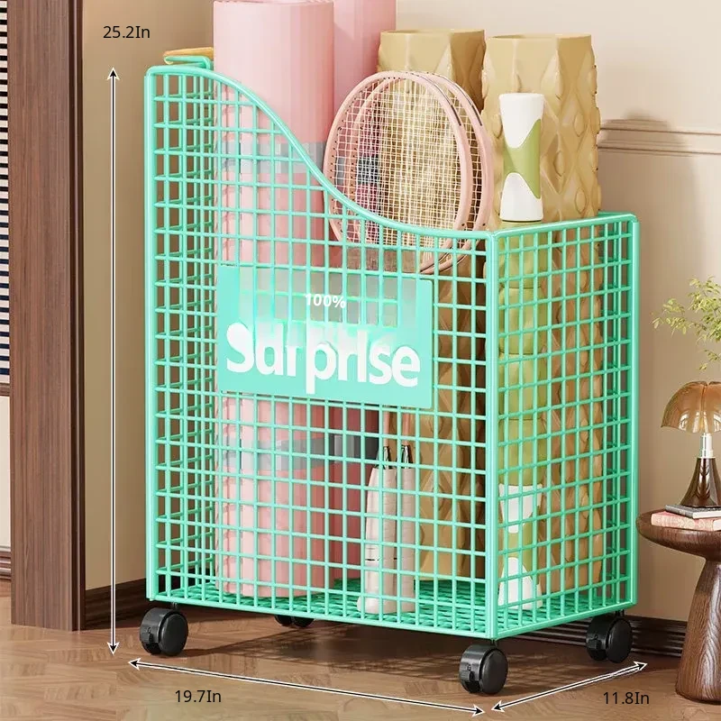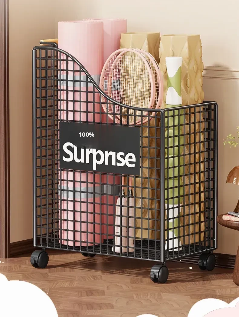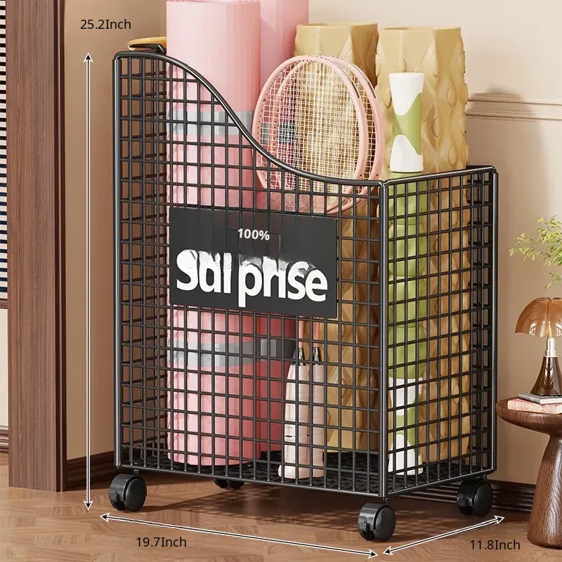 Large Capacity Yoga Mat Storage Basket with Wheels - Portable Fitness Equipment Organizer for Home Use, Ideal for Tight Spaces and Easy Access