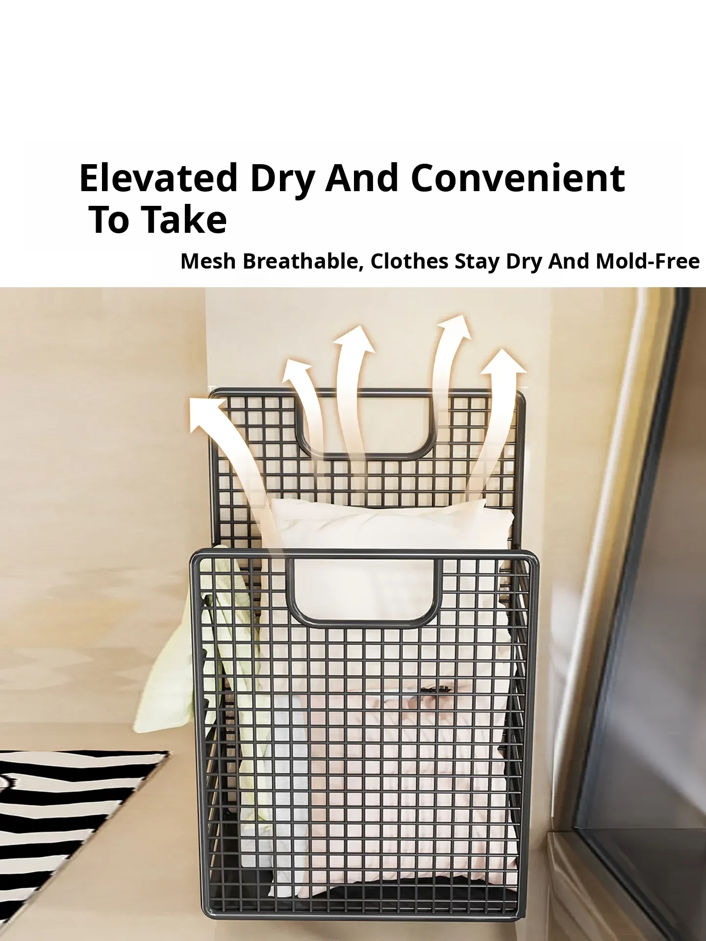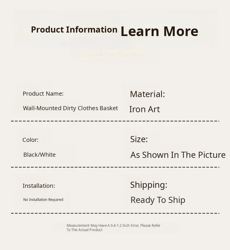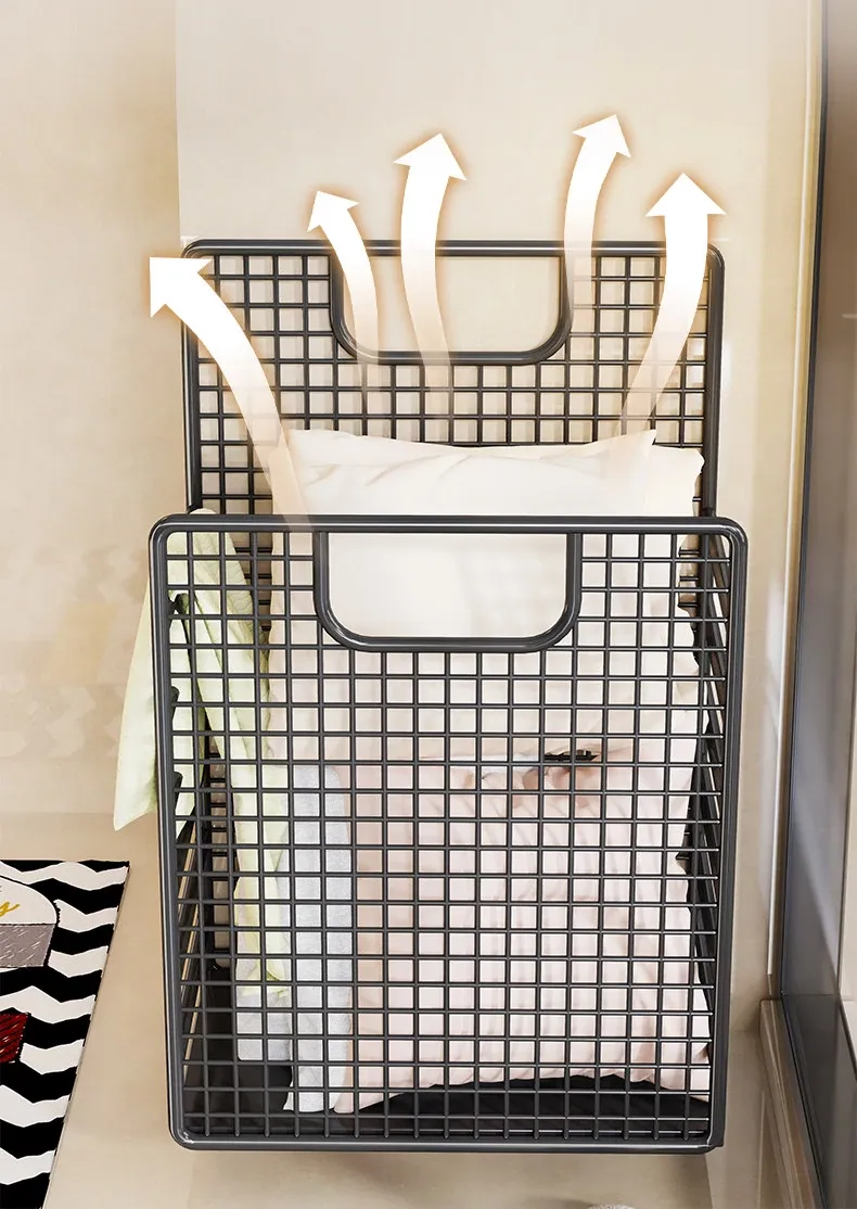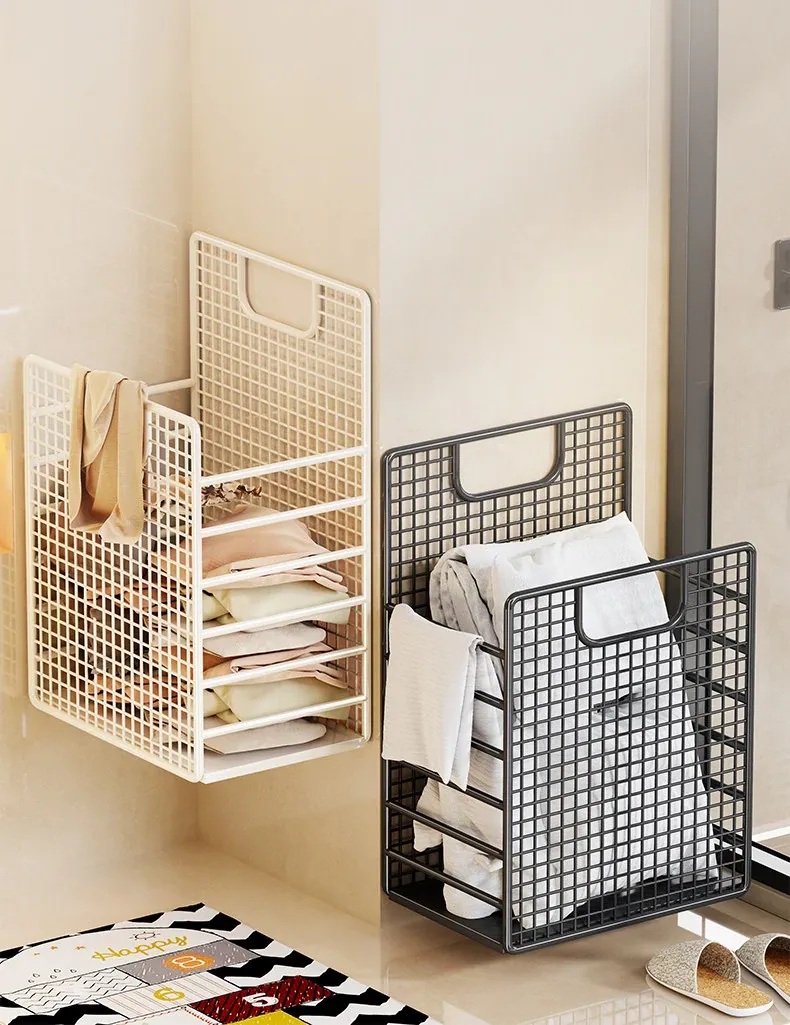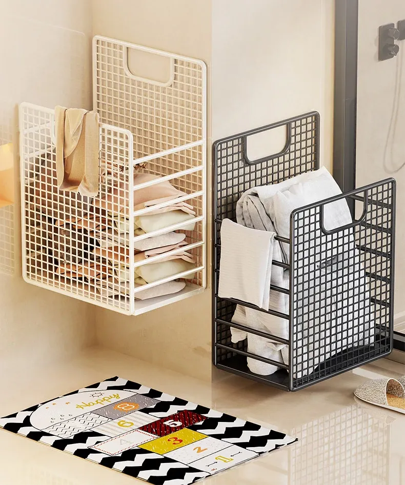 Large Wall-Mounted Laundry Basket - No Drill, Space-Saving Solution for Dirty Clothes Storage in Bathrooms and Laundry Rooms - Keep Your Space Organized and Tidy!