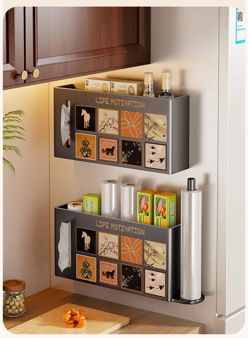Magnetic Kitchen Paper Towel Holder - Wall-Mounted Organizer for Wet Wipes, Refrigerator Roll Paper, and Plastic Wrap Storage - Keep Your Space Neat and Tidy!