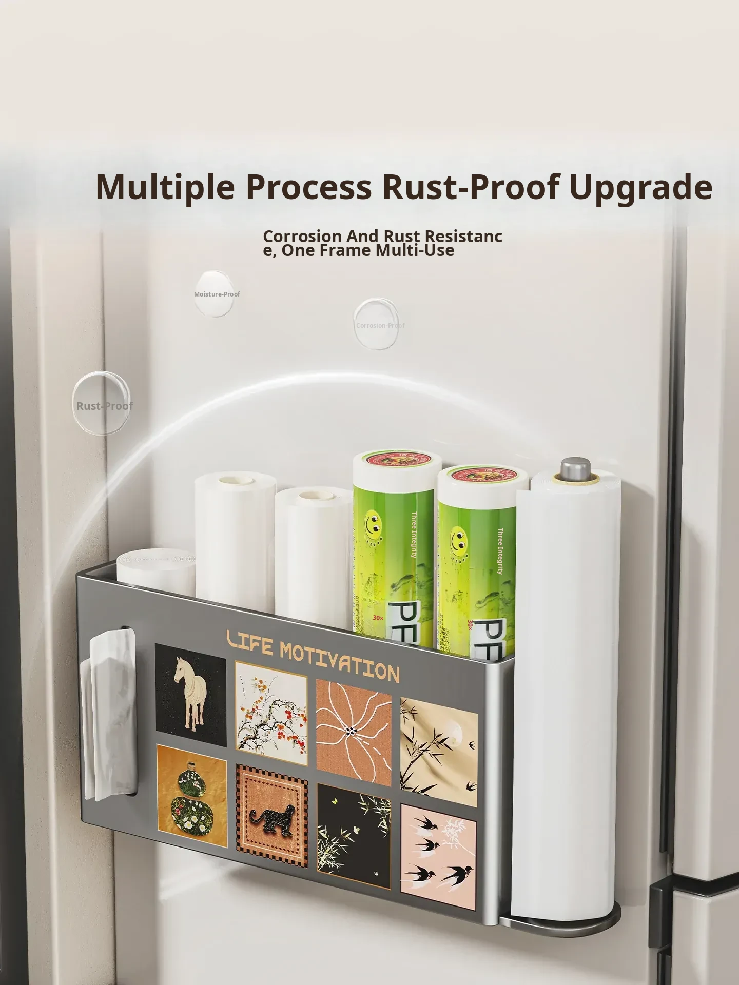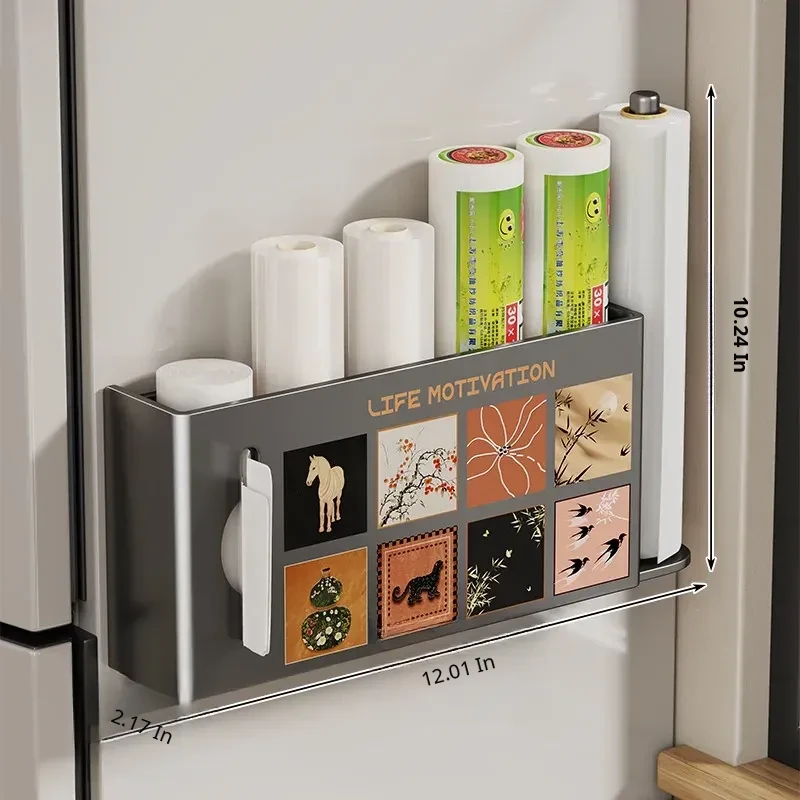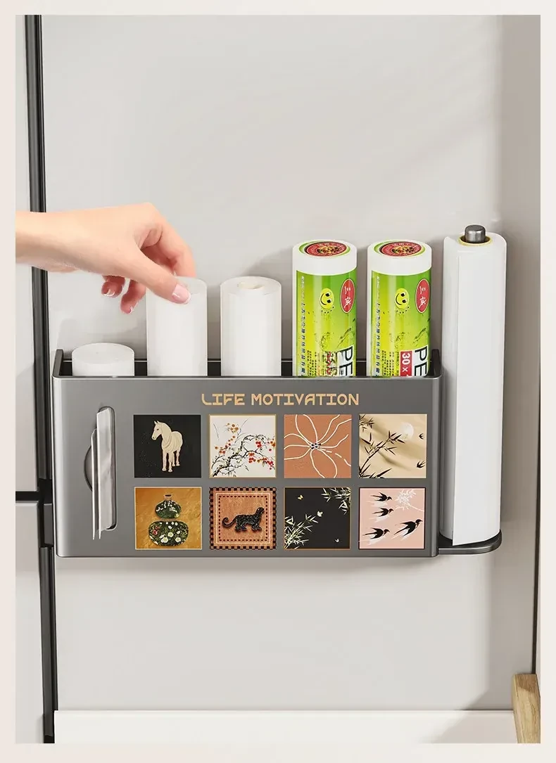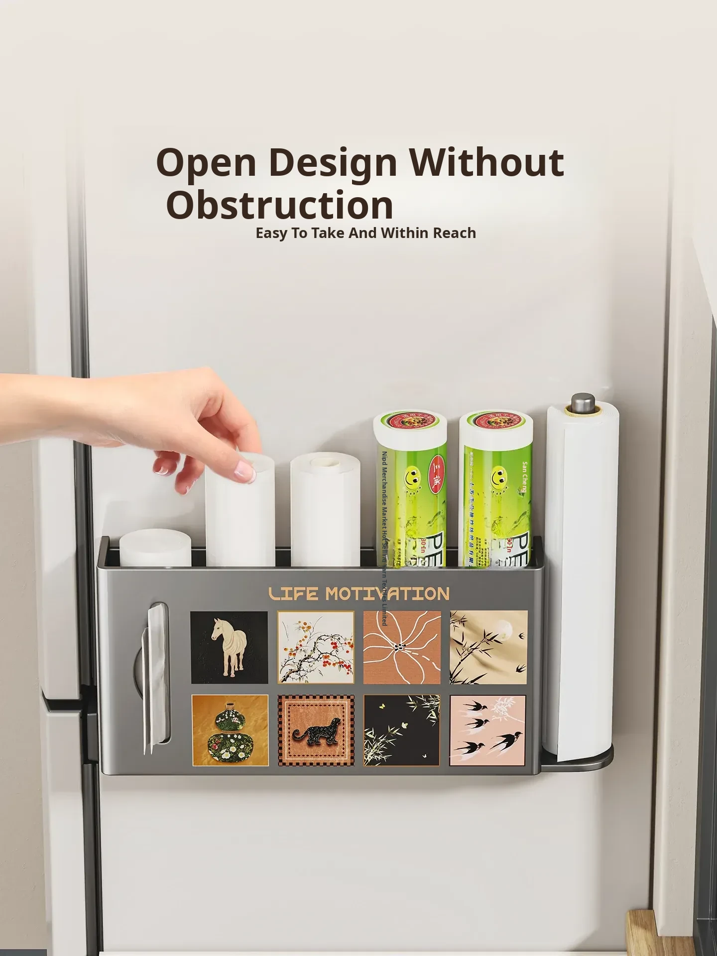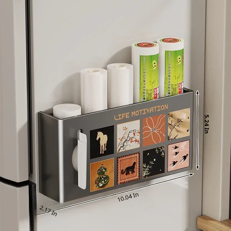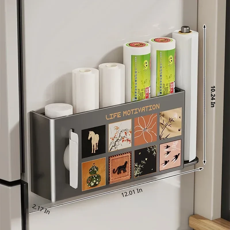 Magnetic Kitchen Storage Rack for Refrigerator - Side Organizer for Fresh Wraps, Seasonings, and Miscellaneous Items - Space-Saving Storage Solution