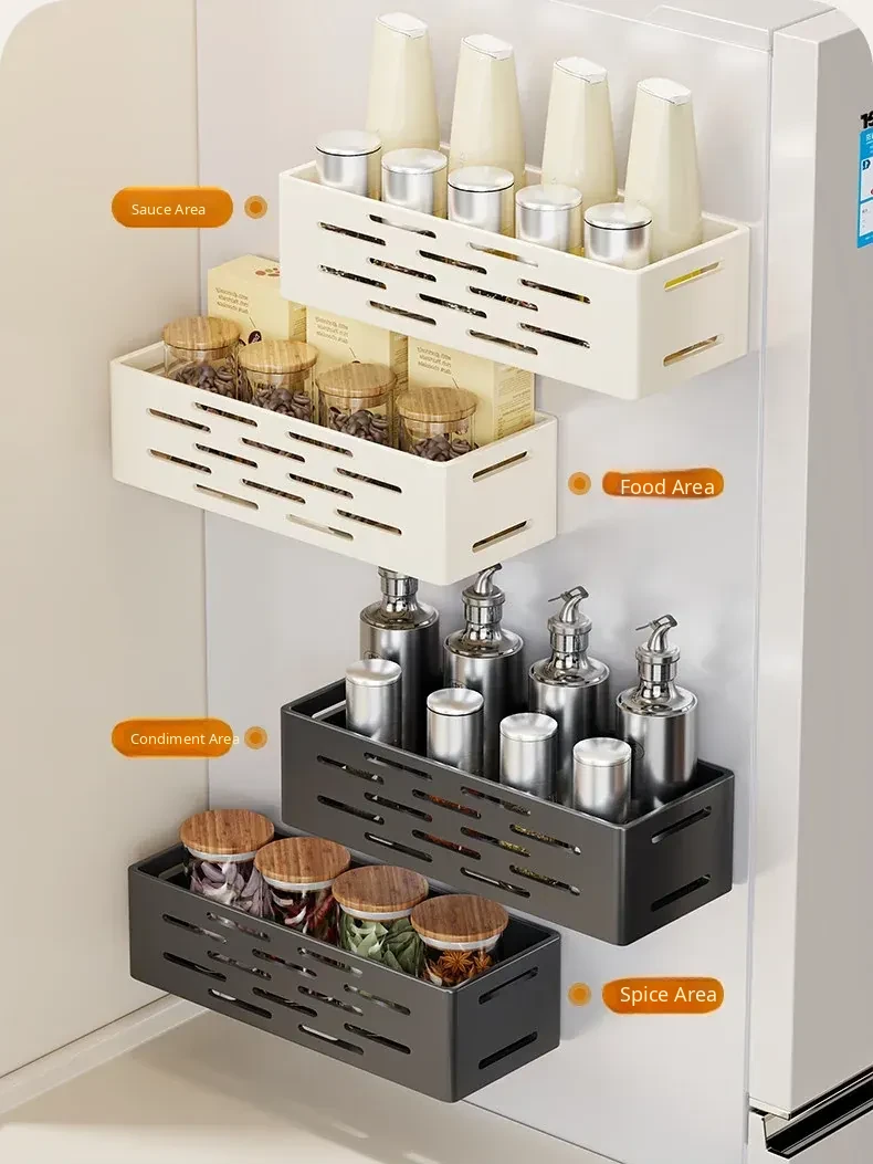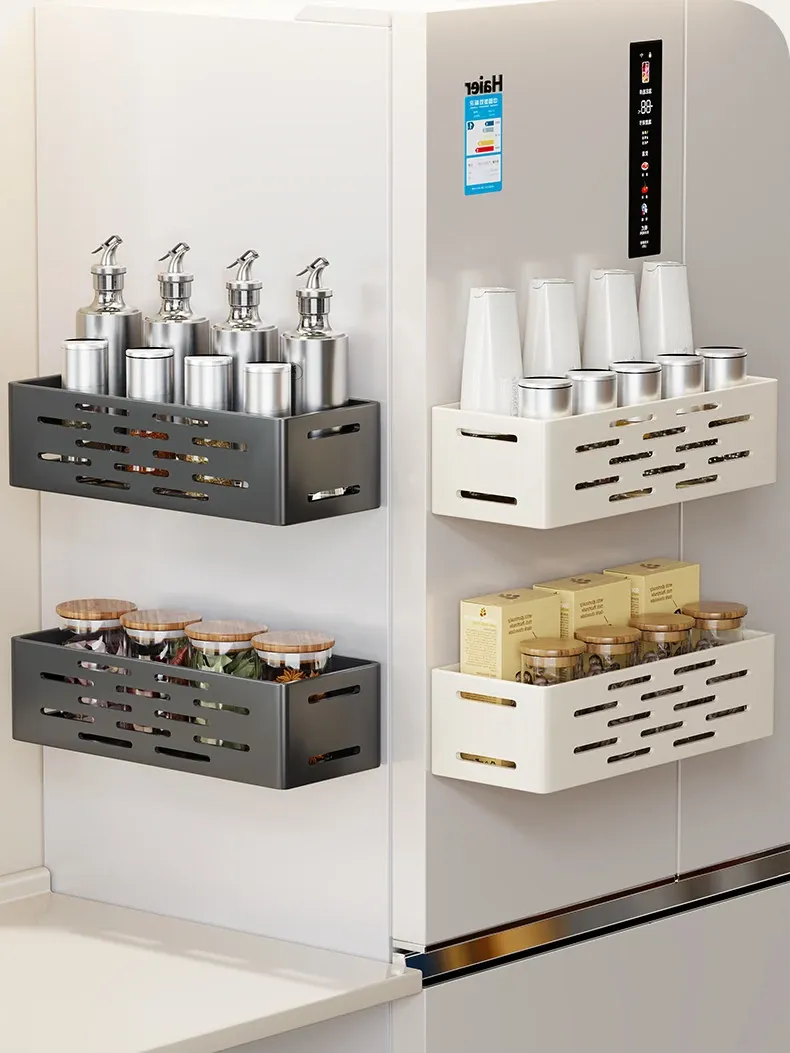 Magnetic Refrigerator Side Storage Rack - Multifunctional, No-Drill Wall-Mounted Spice Organizer & Storage Box for Kitchen Clutter-Free Living!