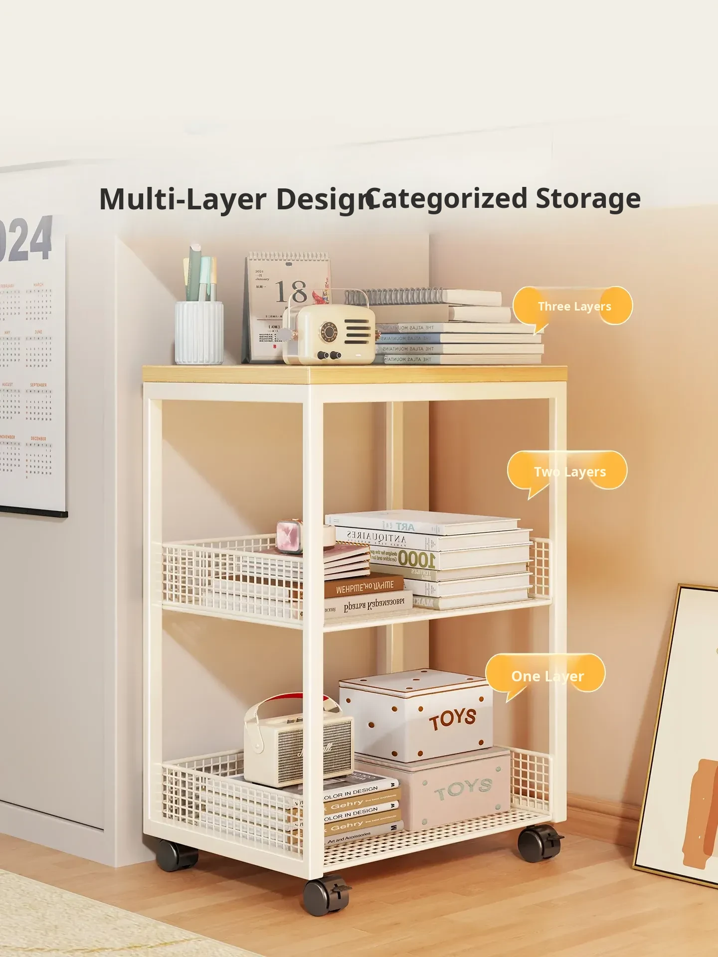 Mobile Under-Desk Bookshelf with Wheels - Versatile Storage Cart for Easy Organization and Clutter-Free Space - Ideal Side Table for Small Items and Essentials