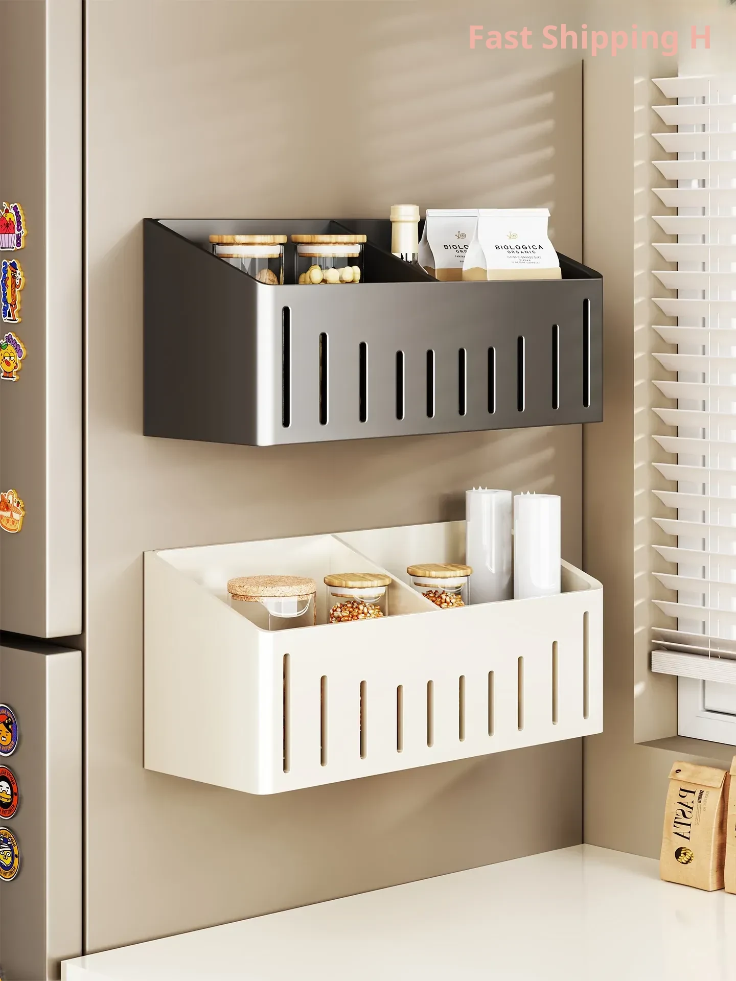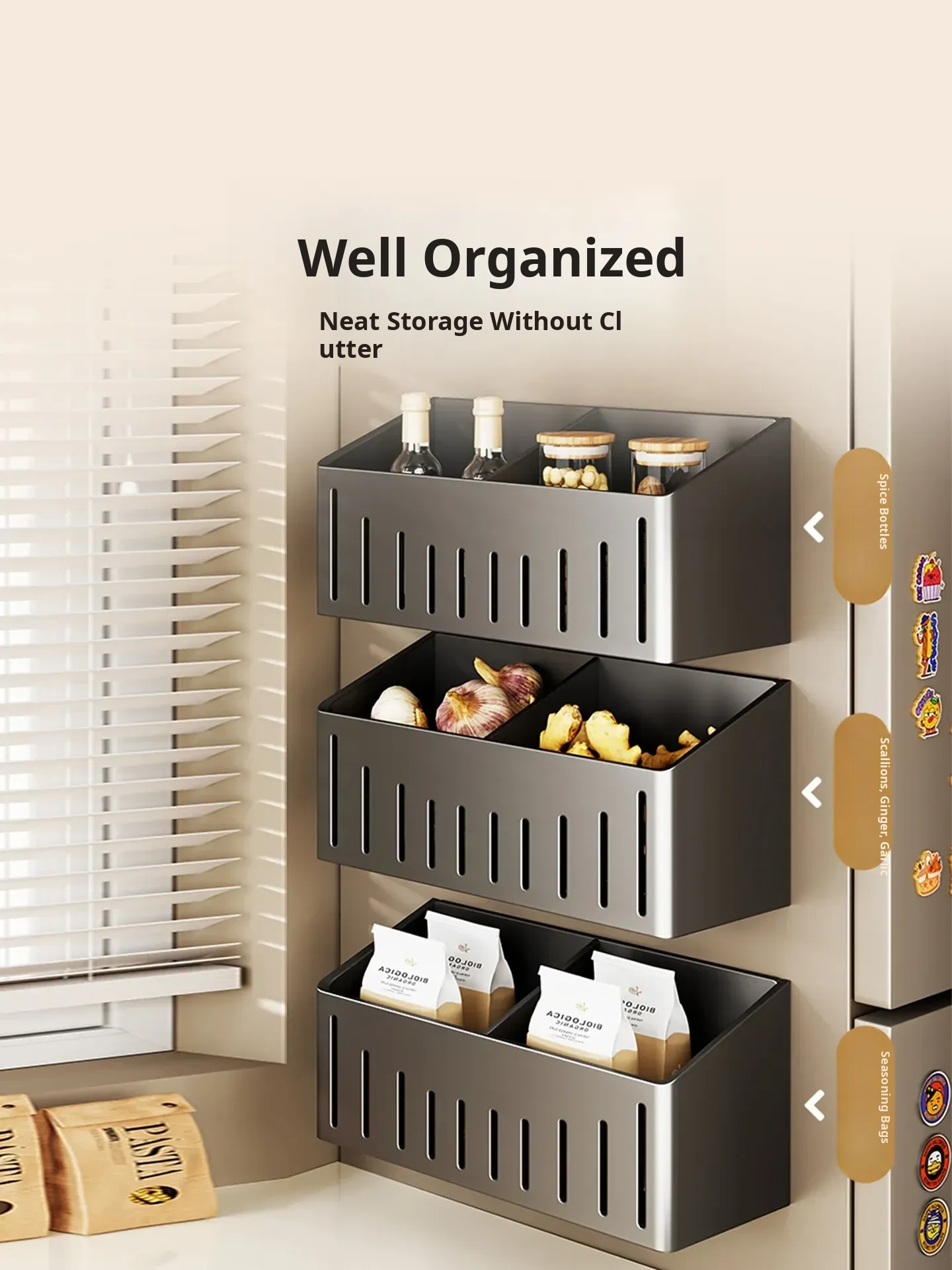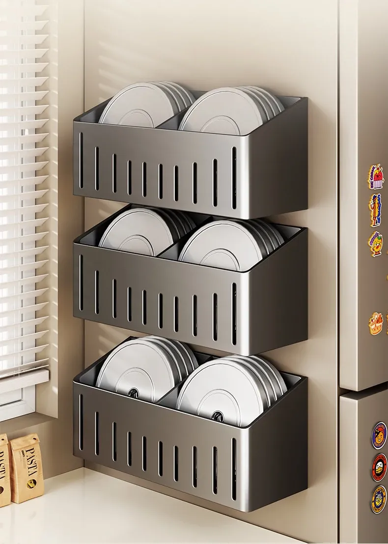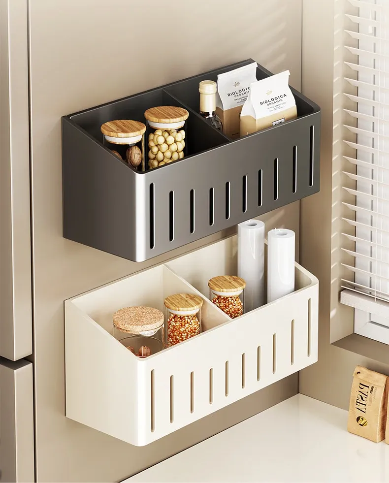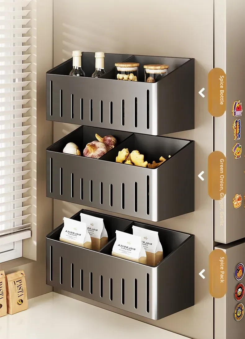 Multifunctional Wall-Mounted Storage Rack for Kitchen - Onion, Ginger, Garlic Organizer, Ideal for Refrigerator Side, Perfect Spice Jar Holder and Organizer