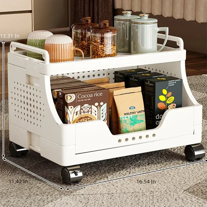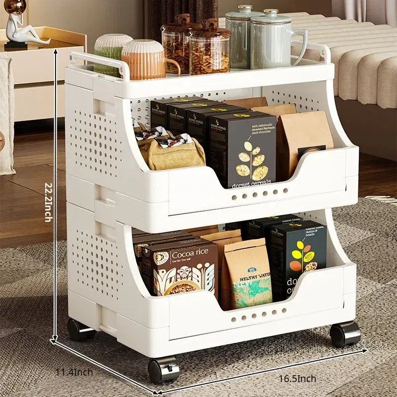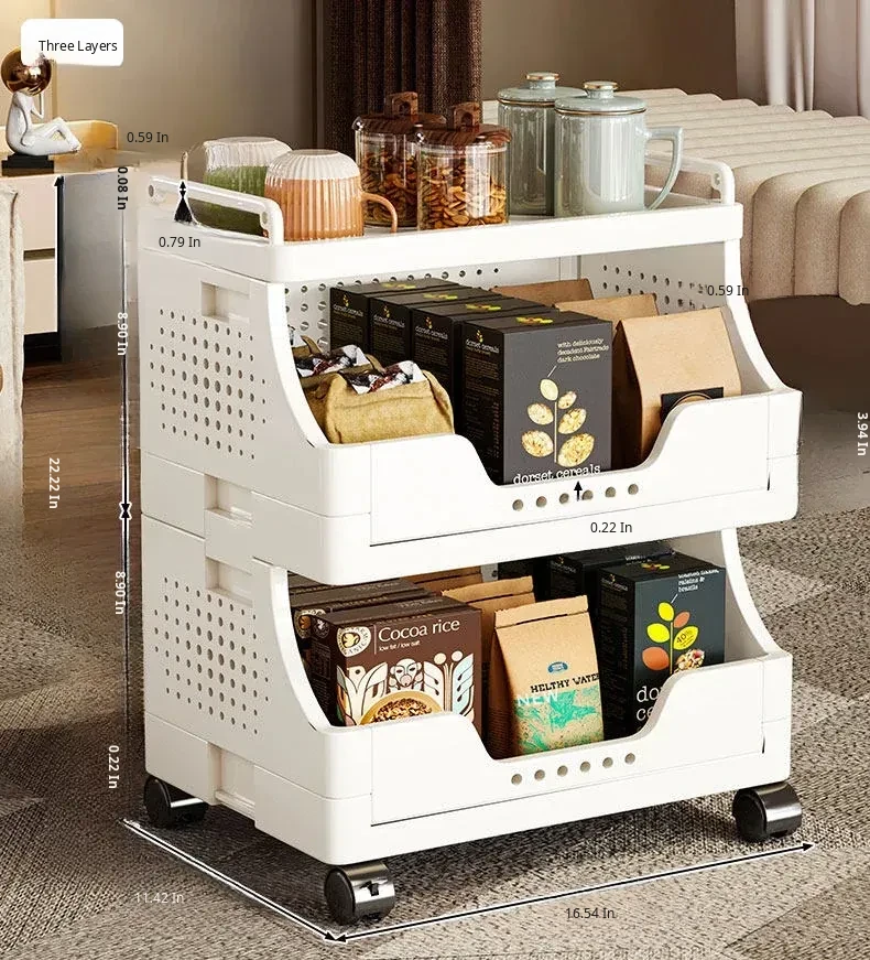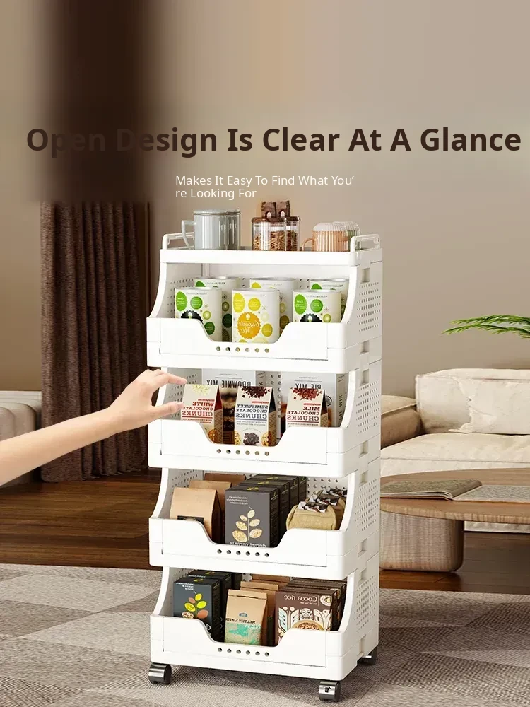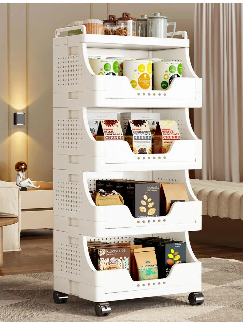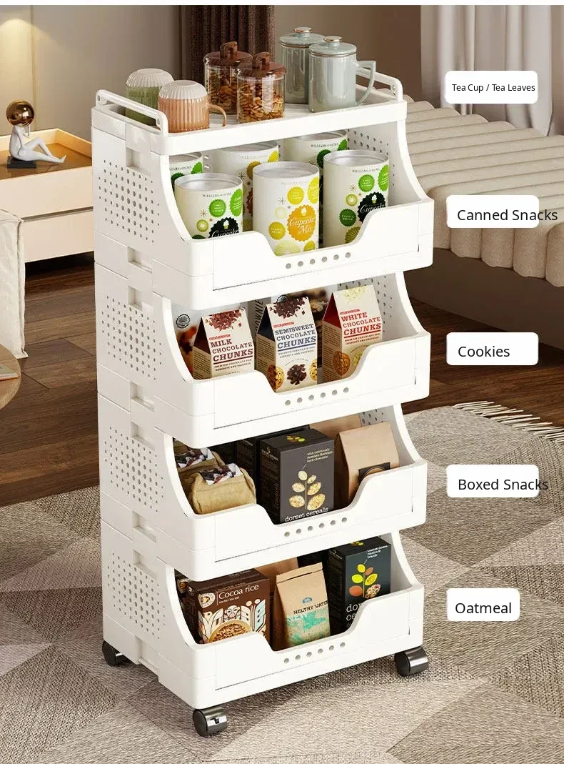 Multi-Layer Rolling Snack Storage Cart for Living Room - Versatile Mobile Organizer Shelf and Bookcase for Easy Floor Organization and Clutter-Free Living