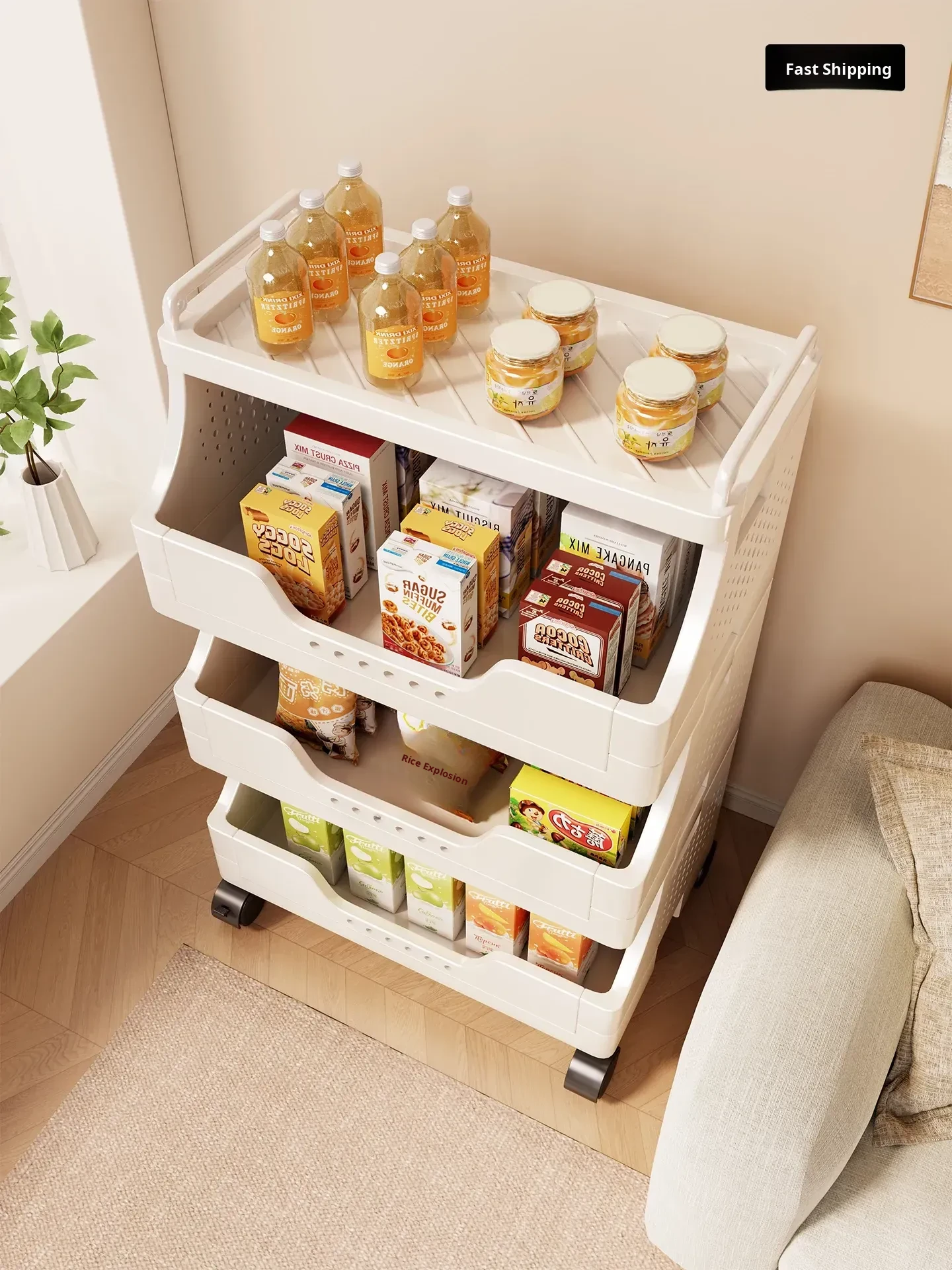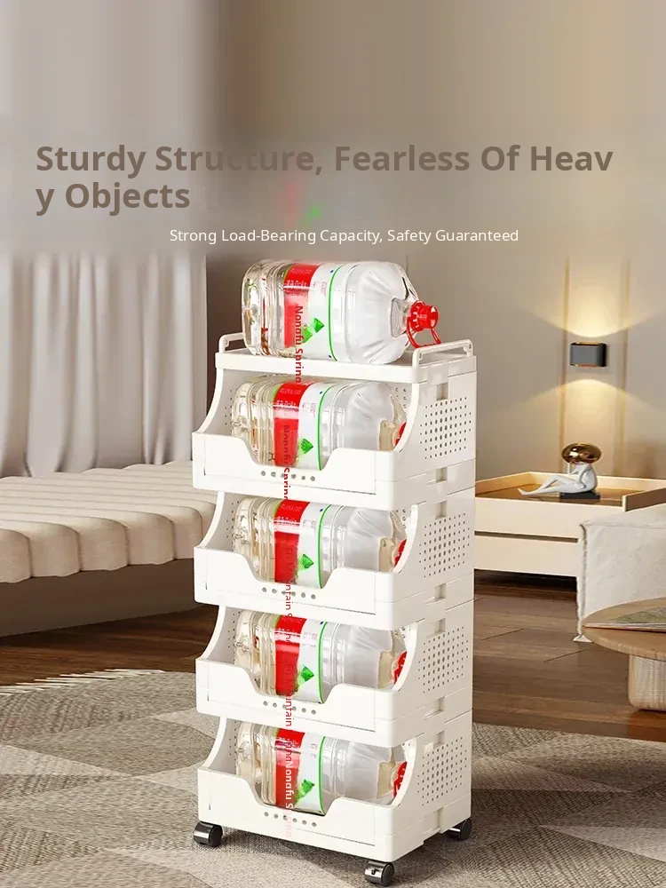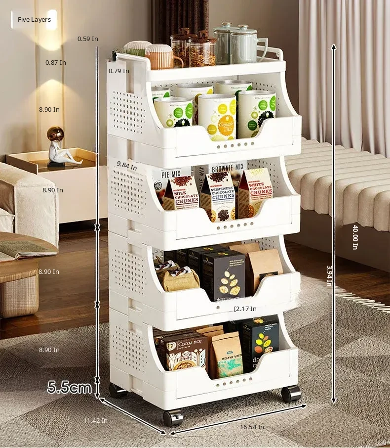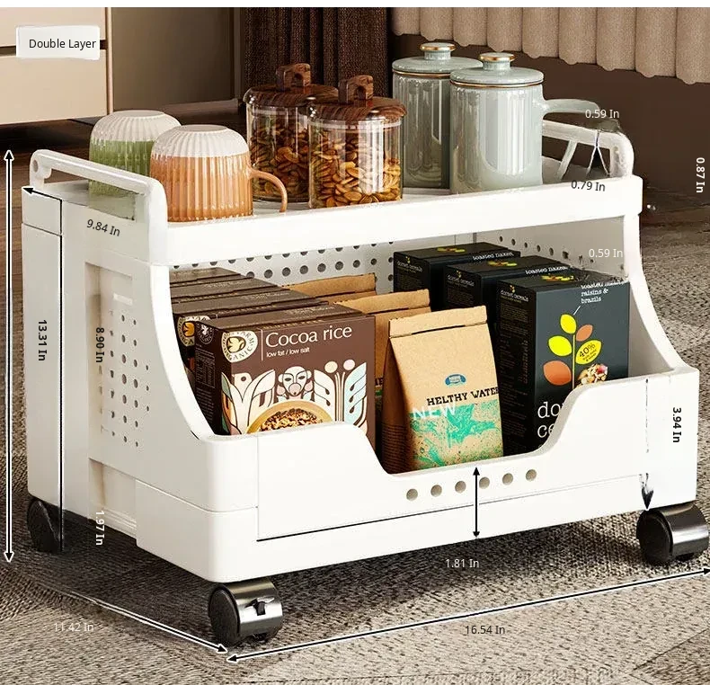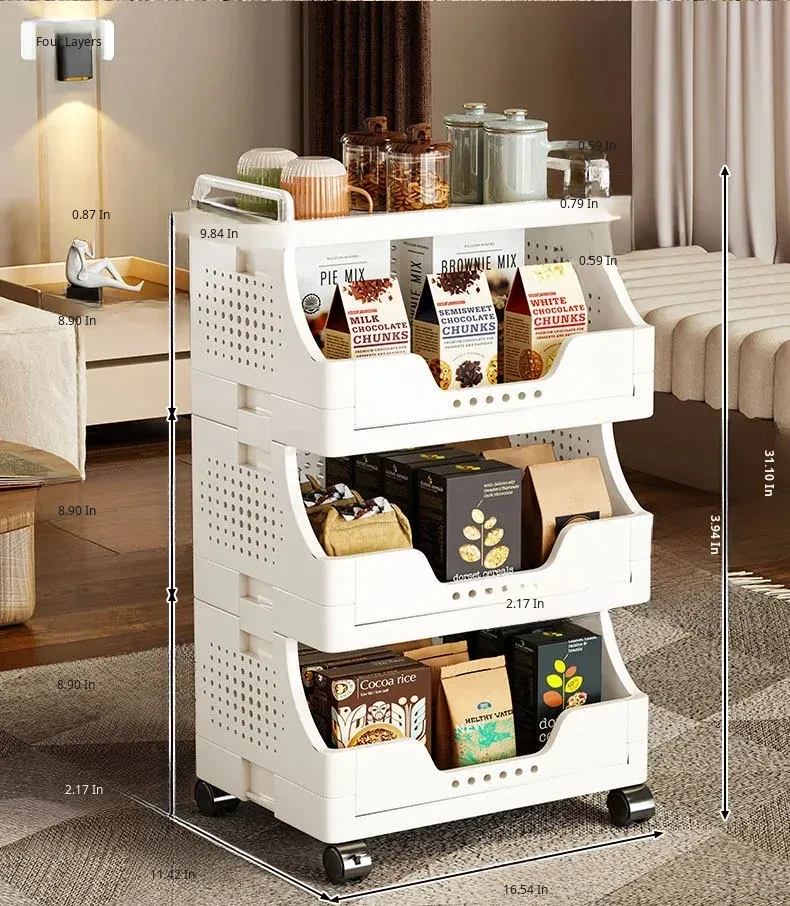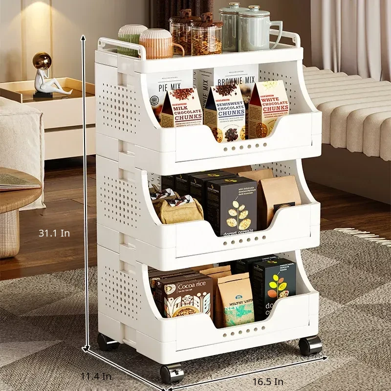 Multi-Layer Rolling Snack Storage Cart for Living Room - Versatile Mobile Organizer Shelf and Bookcase for Easy Floor Organization and Clutter-Free Living
