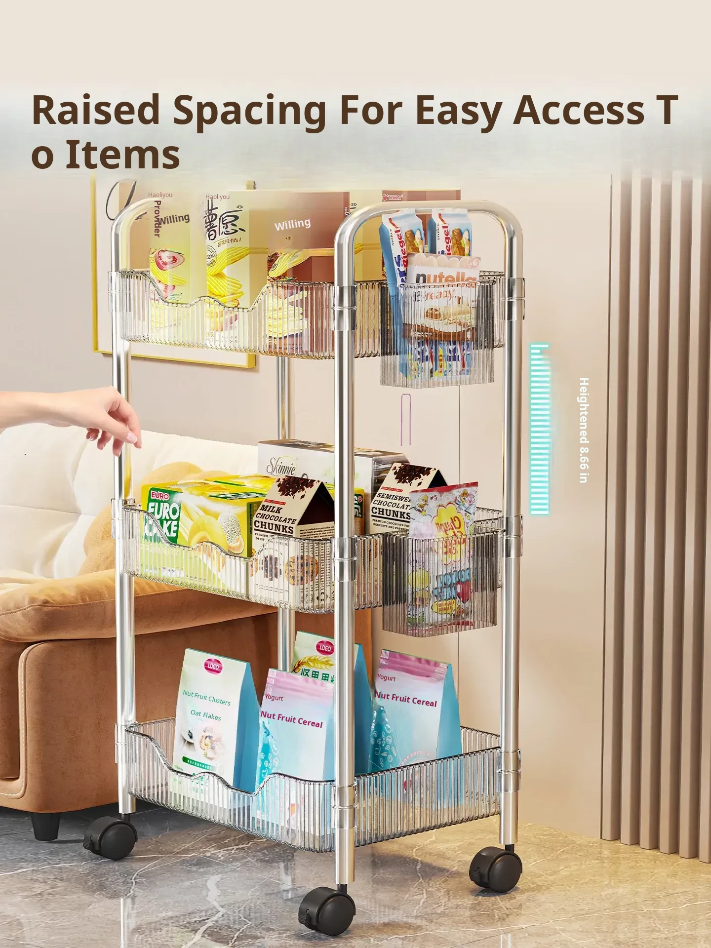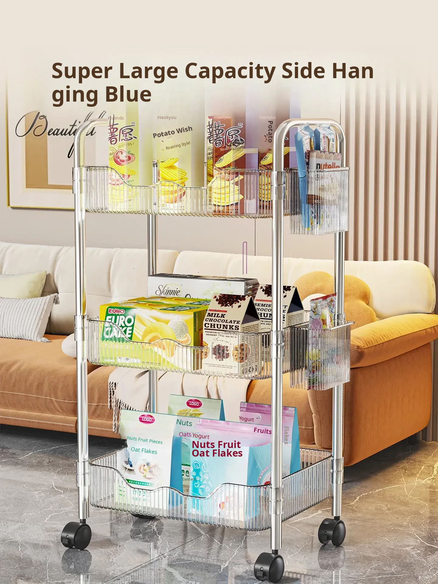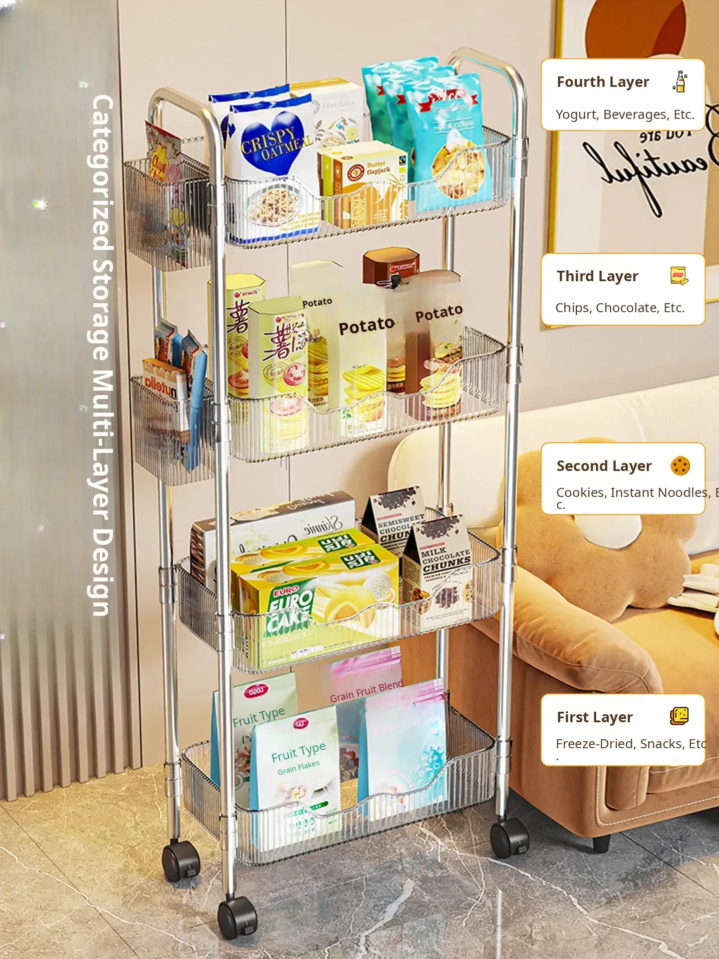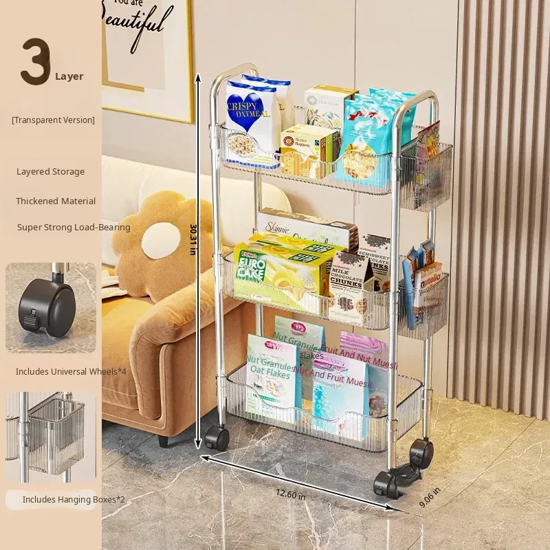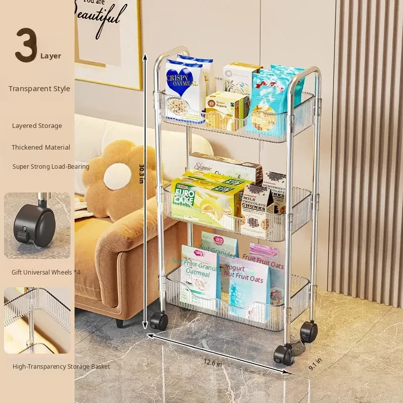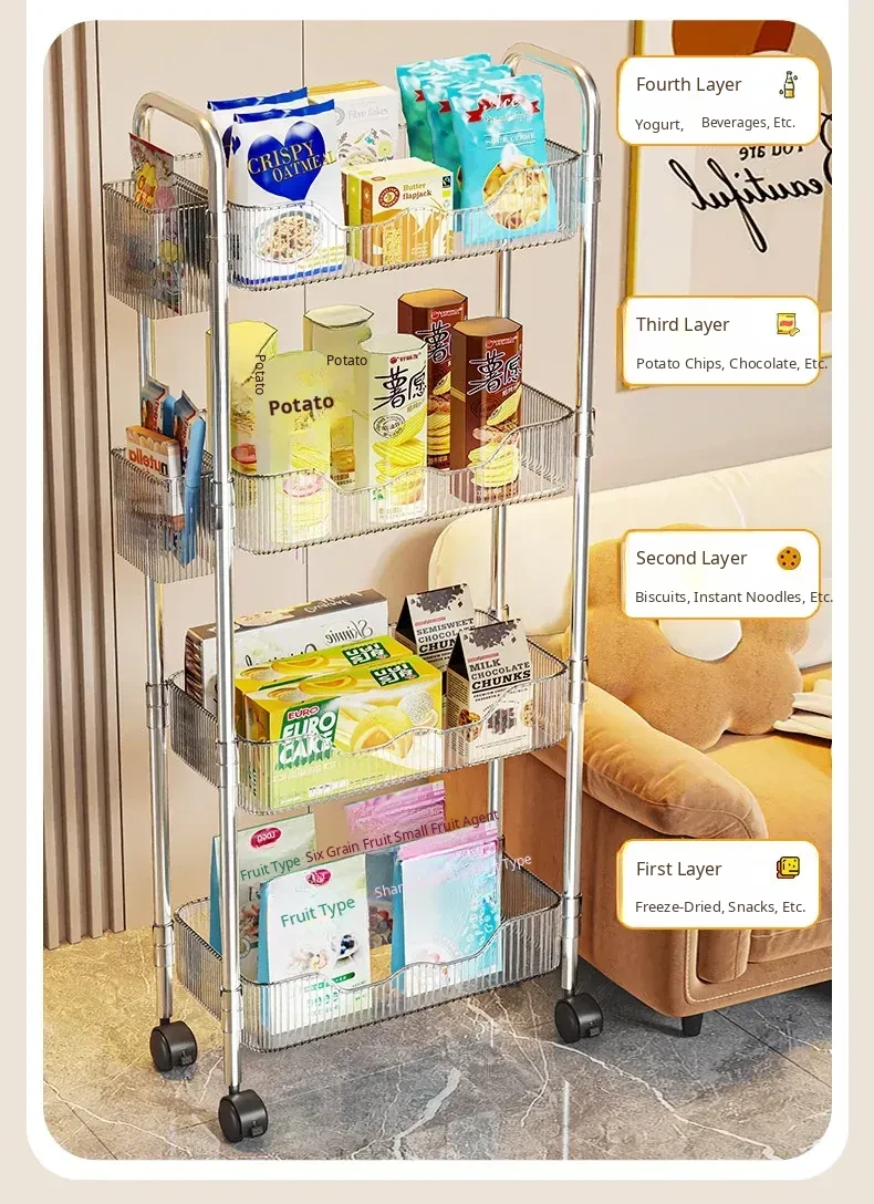 Multi-Layer Snack Cart Storage Rack - Perfect for Student Dorms and Home Use, Acrylic Organizer Shelf for Living Room - Stylish and Functional Storage Solution