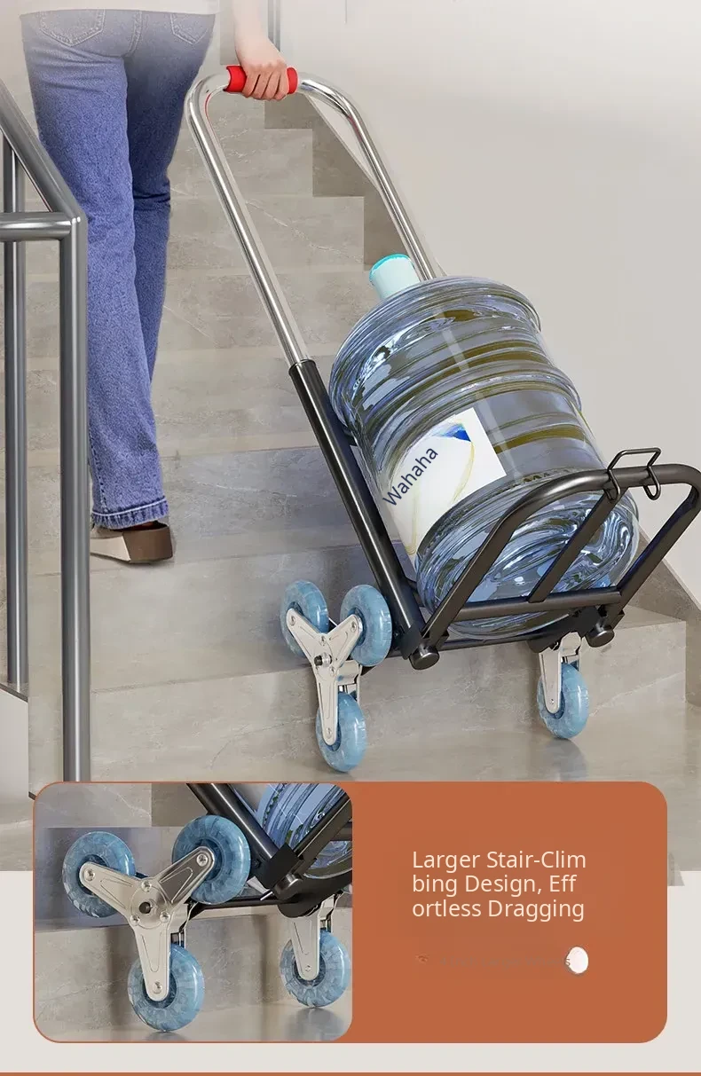 Portable Folding Water Cart for Home – Stair Climbing Hand-Pulled Trolley for Bottled Water Transport – Effortless Moving Solution for Easy Carrying and Convenience