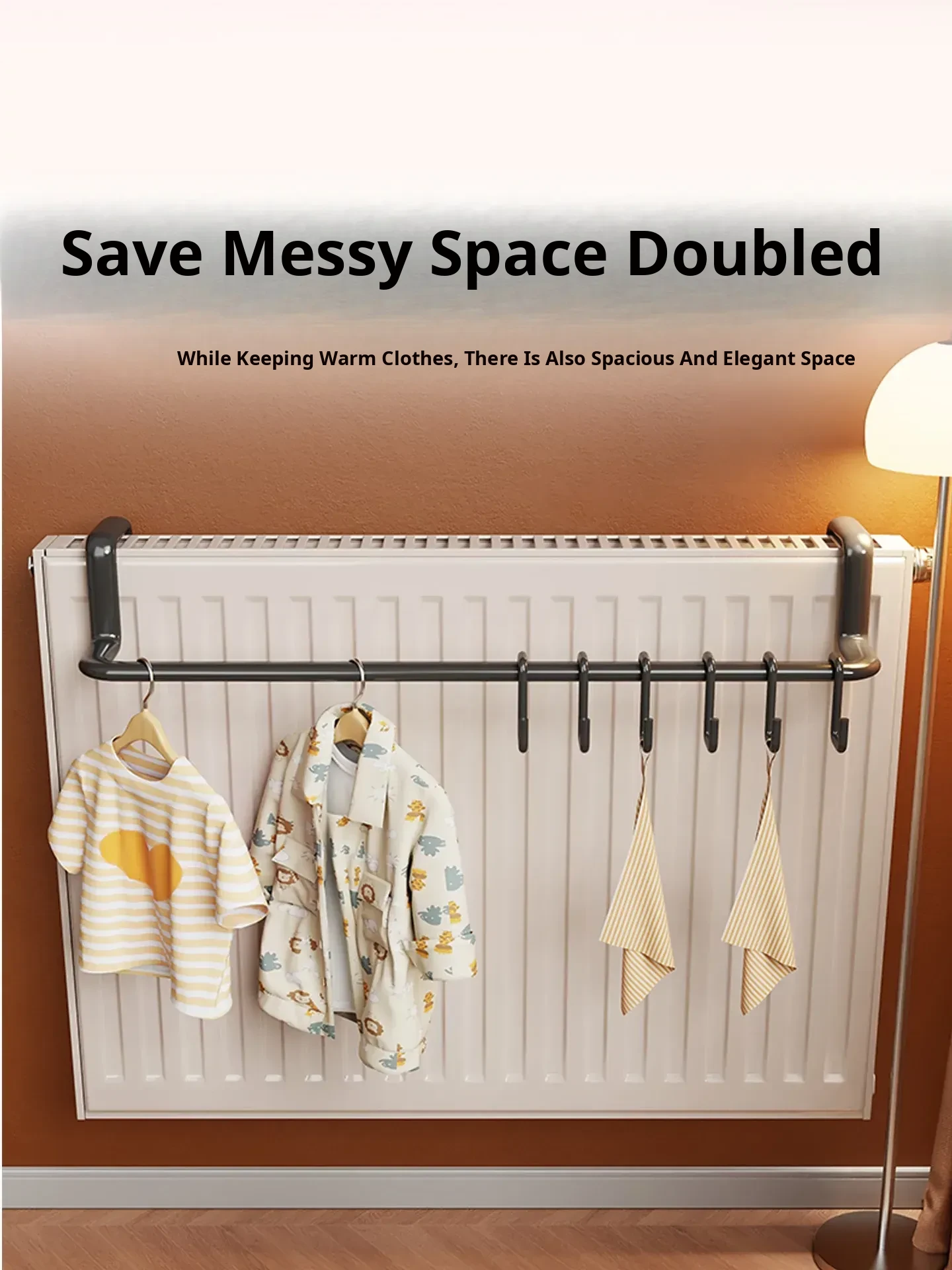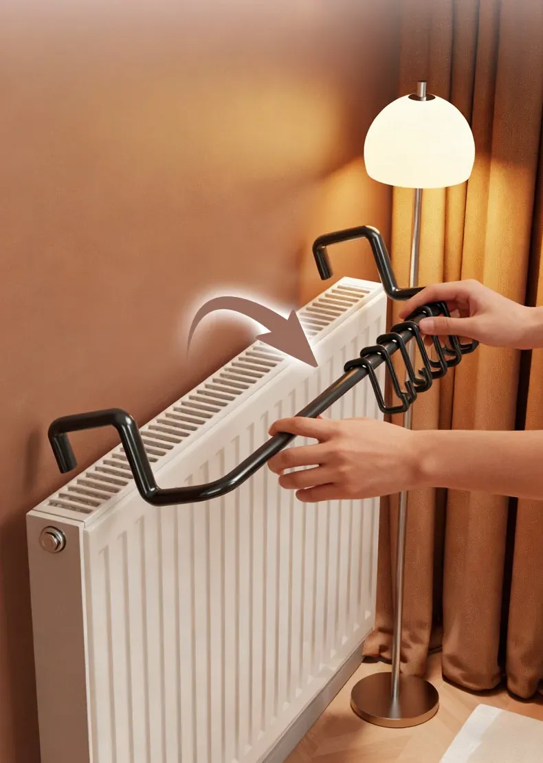 Radiator Clothes Drying Rack with Hooks - Home Organizer and Drying Solution for Efficient Laundry Storage and Air-Drying. Perfect for Small Spaces!