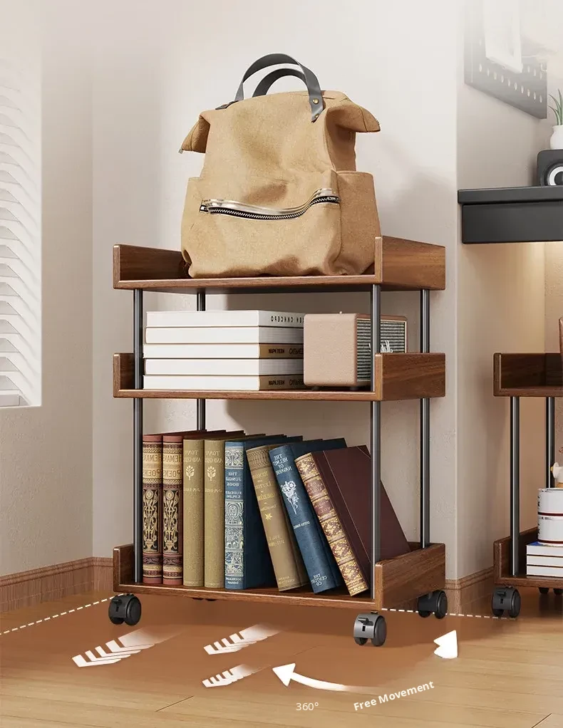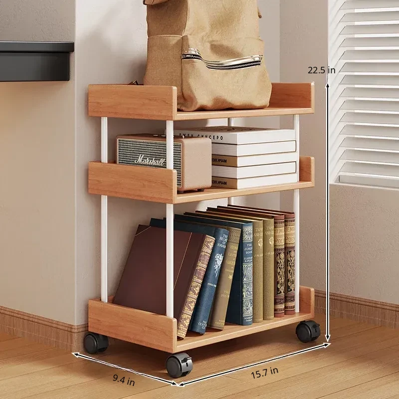 Solid Wood Bookshelf Rolling Cart - Versatile Storage Solution for Books Under Desk or Next to Table - Perfect for Organizing and Displaying Your Favorite Reads!