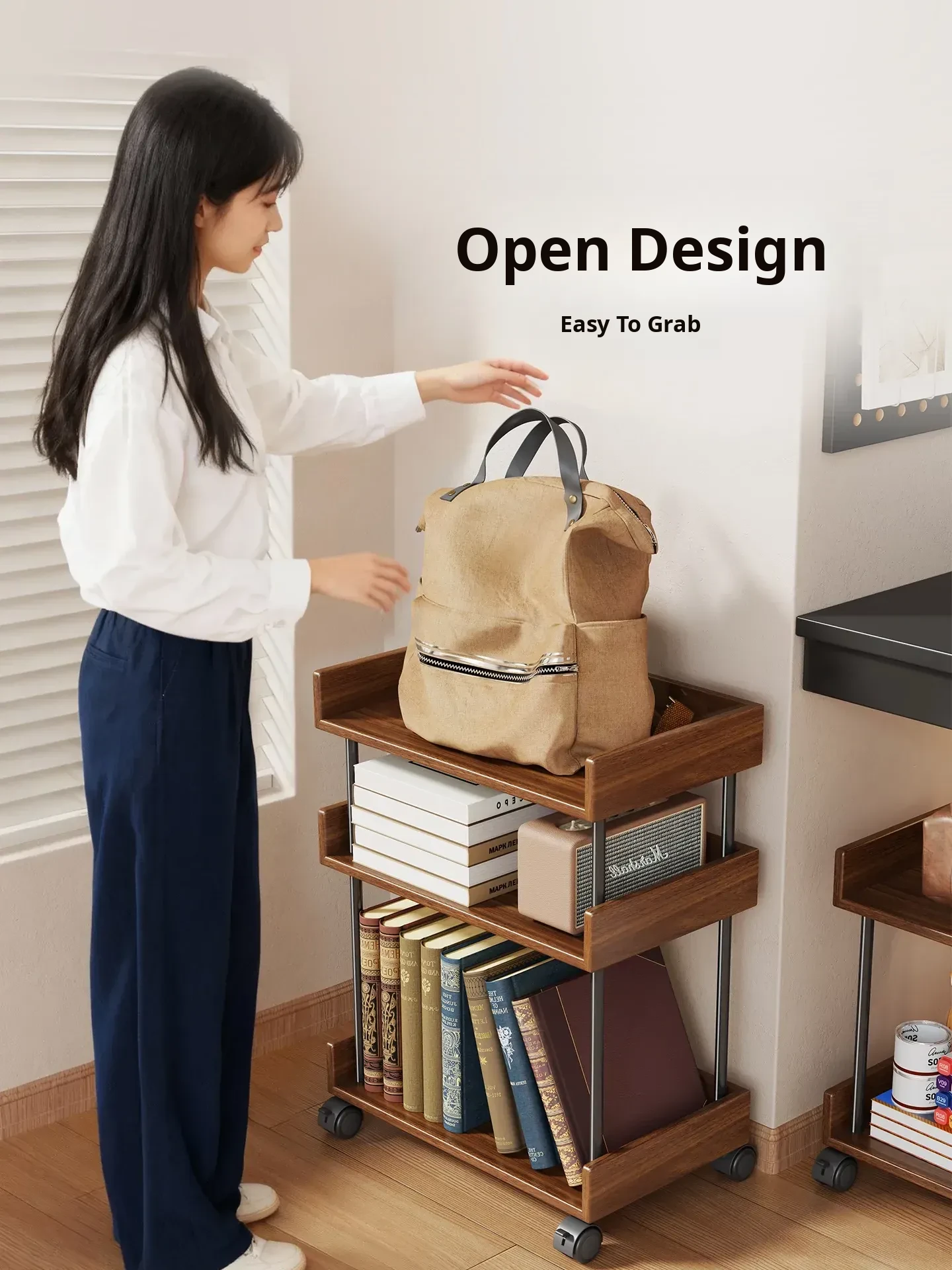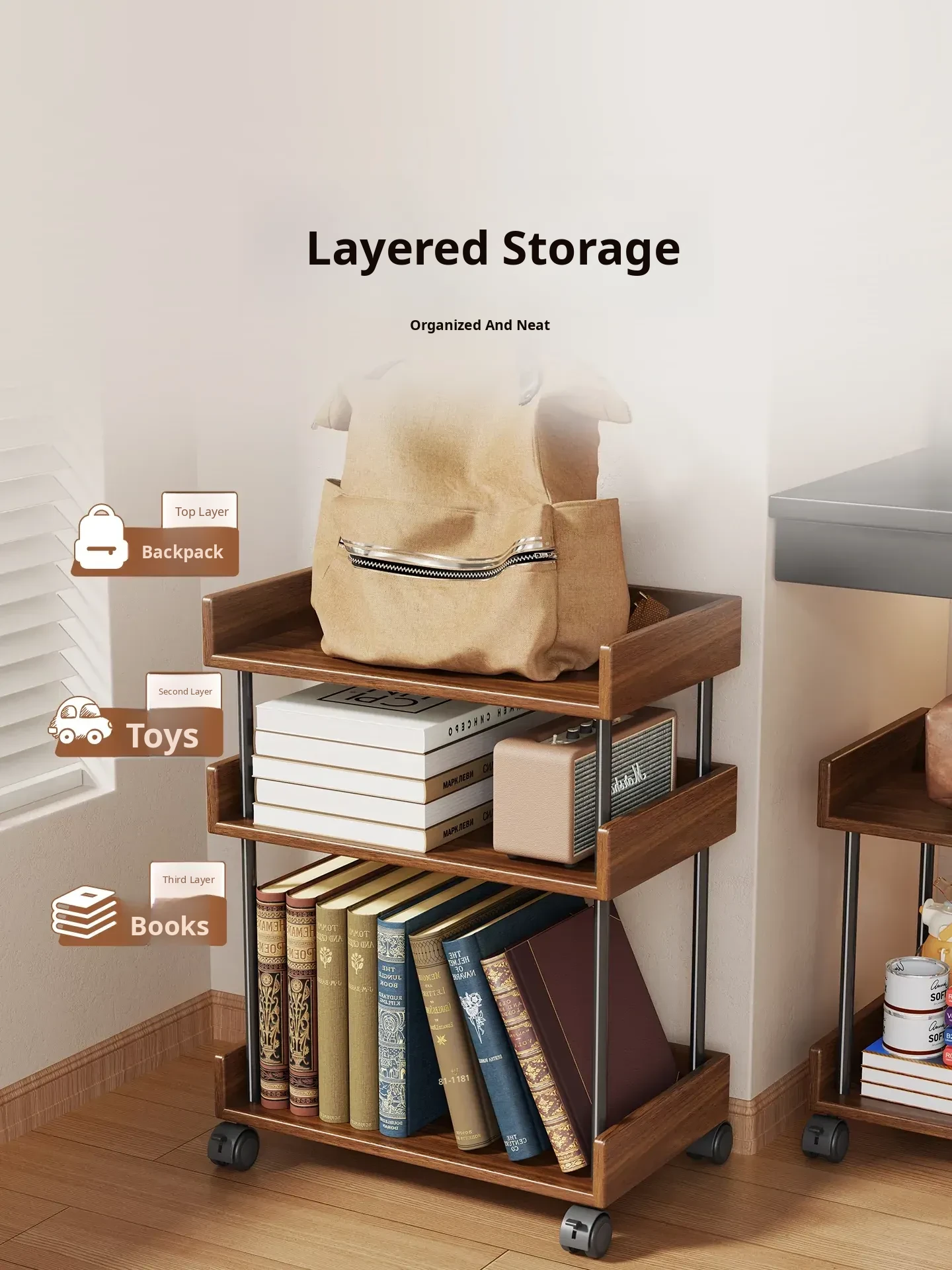Walnut Color with Wheels (Three Layers) [Imported Solid Wood]