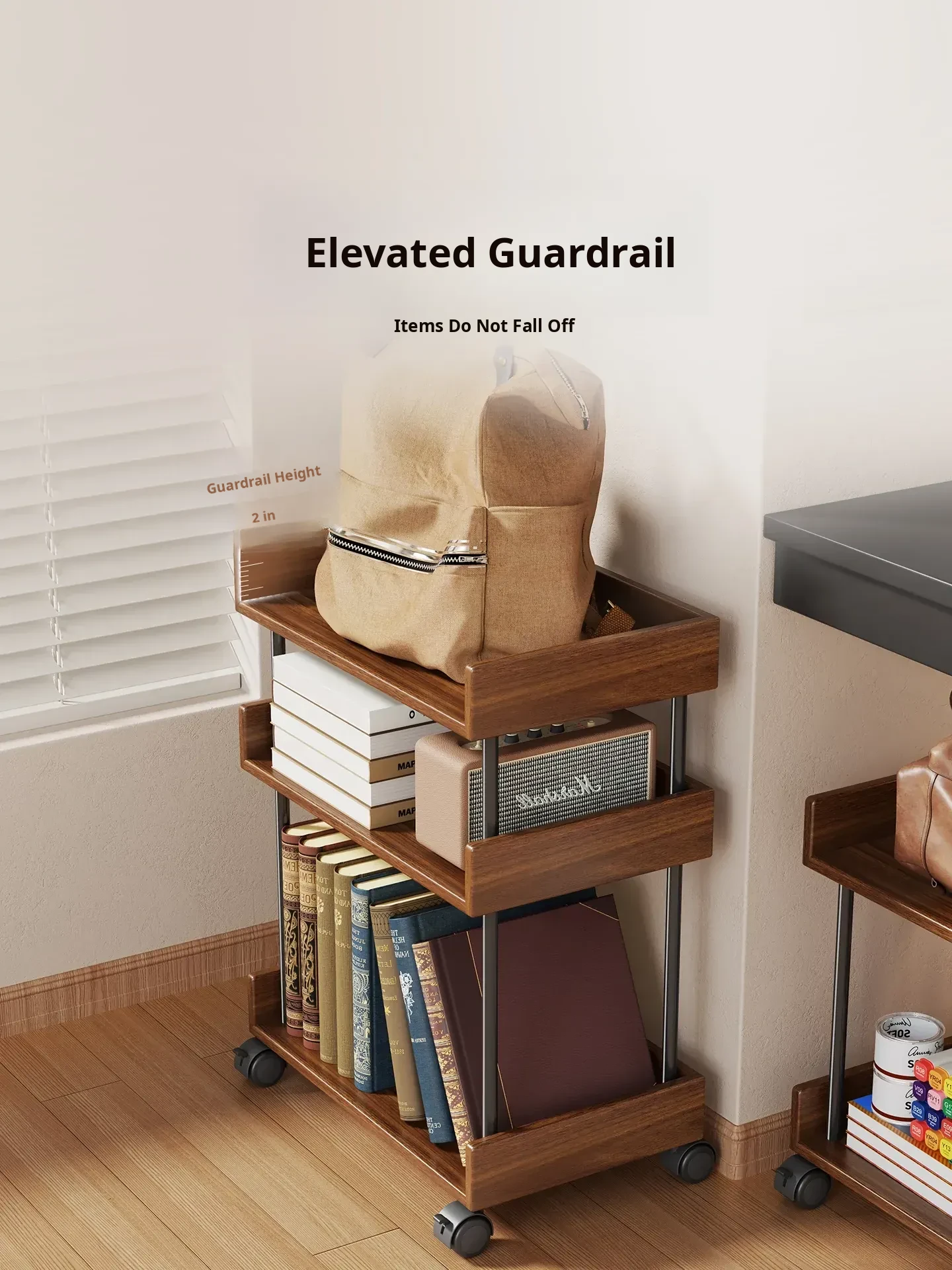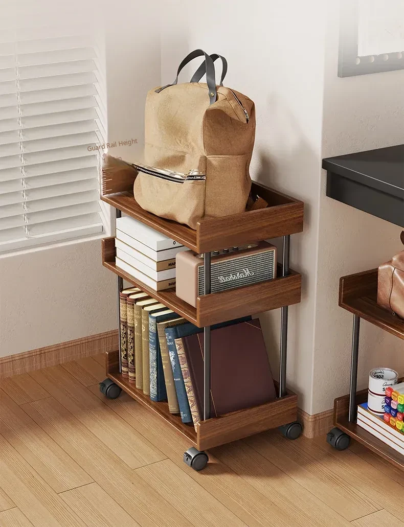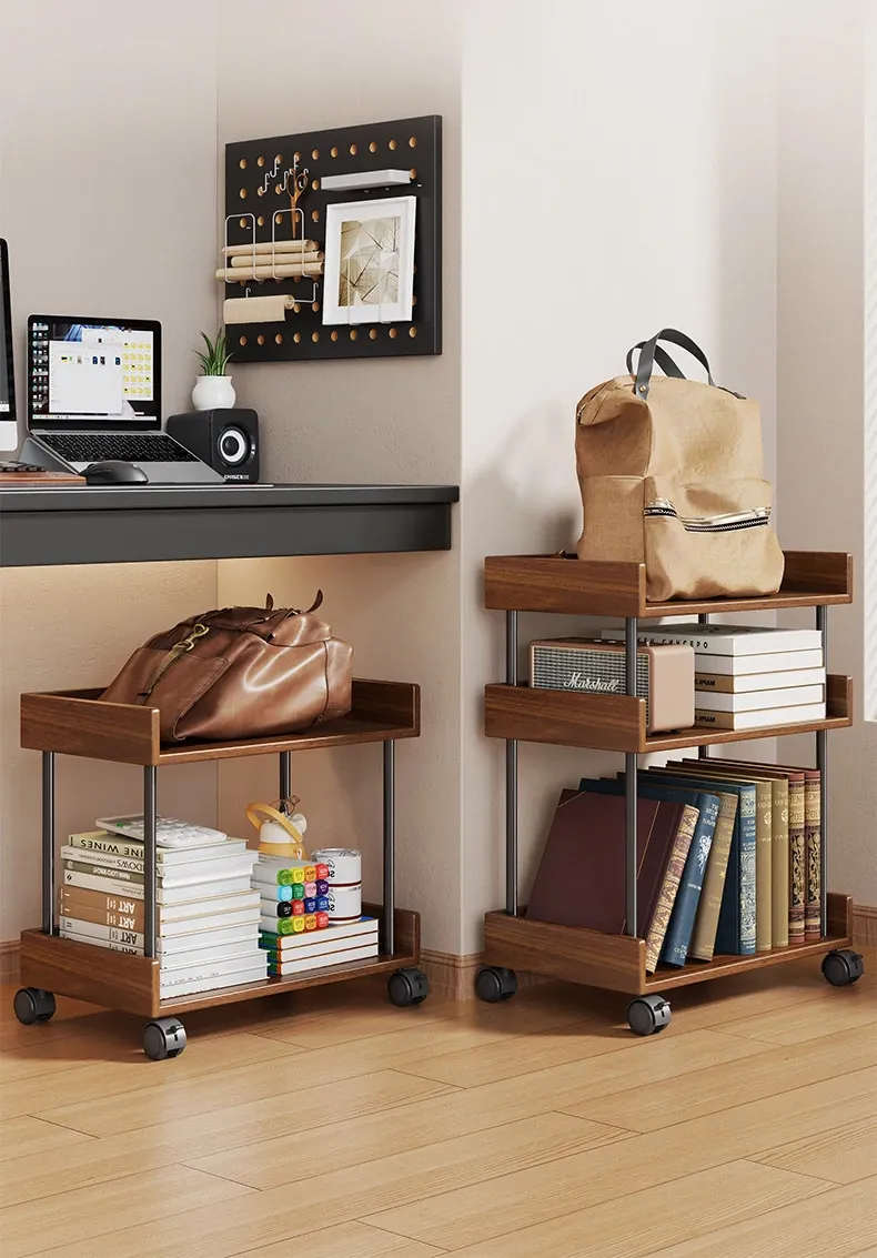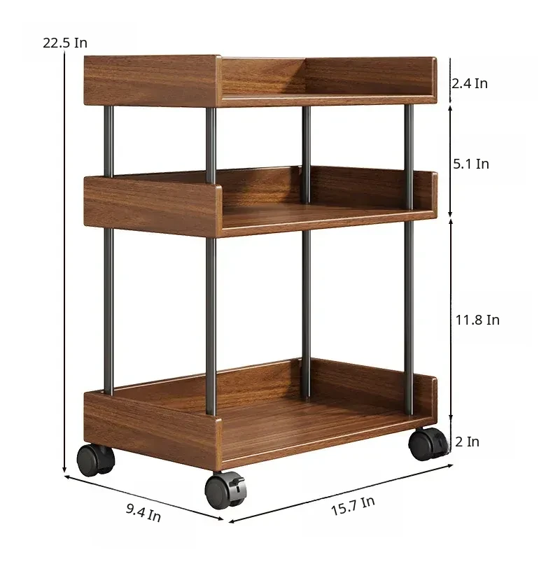 Walnut Color with Wheels (Two Layers) [Imported Solid Wood]