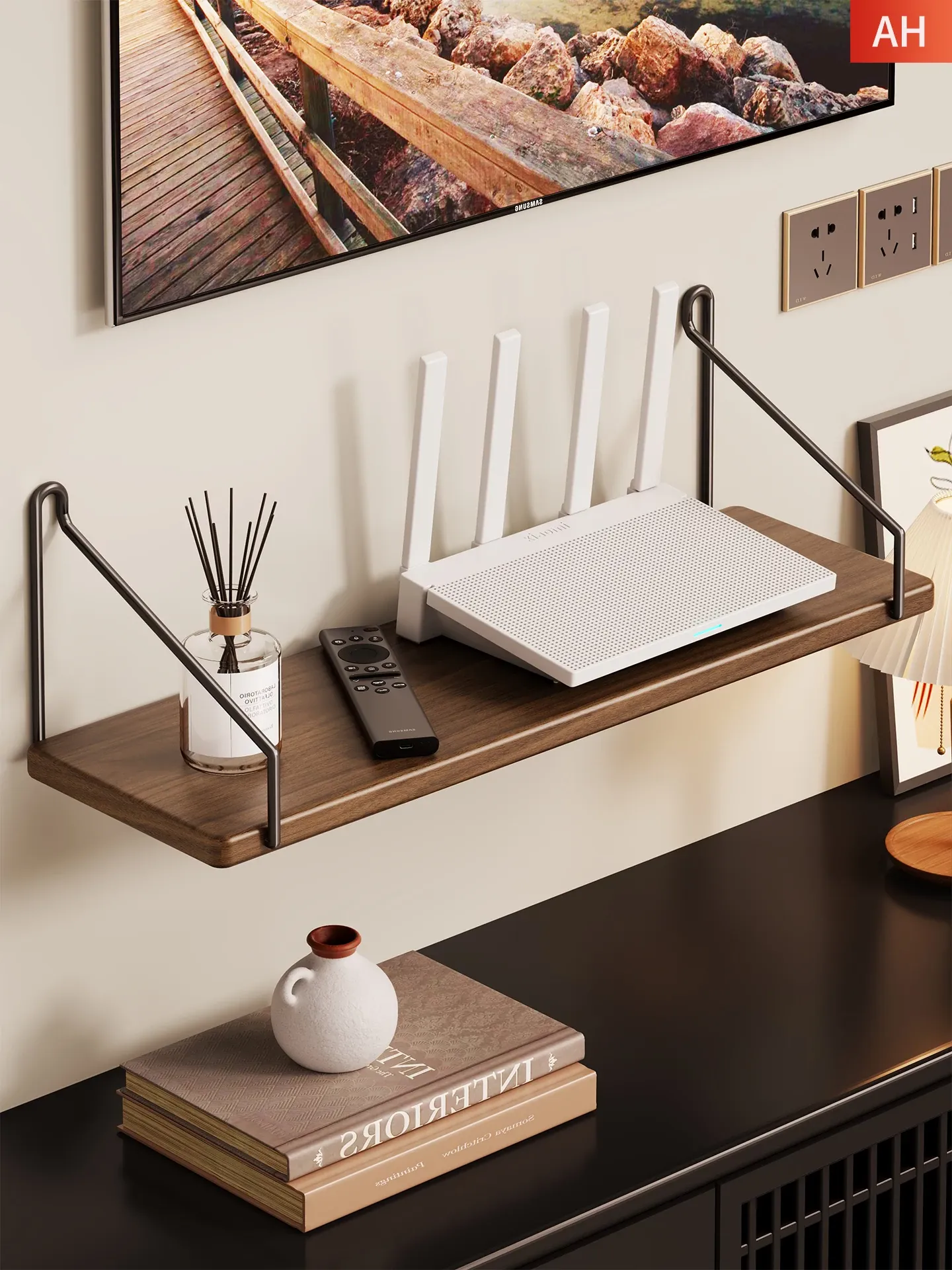 Solid Wood Router Stand - Under TV Storage Shelf for Set-Top Box with Top Storage Box and Support Rack - Stylish and Functional Organizer for Your Living Room