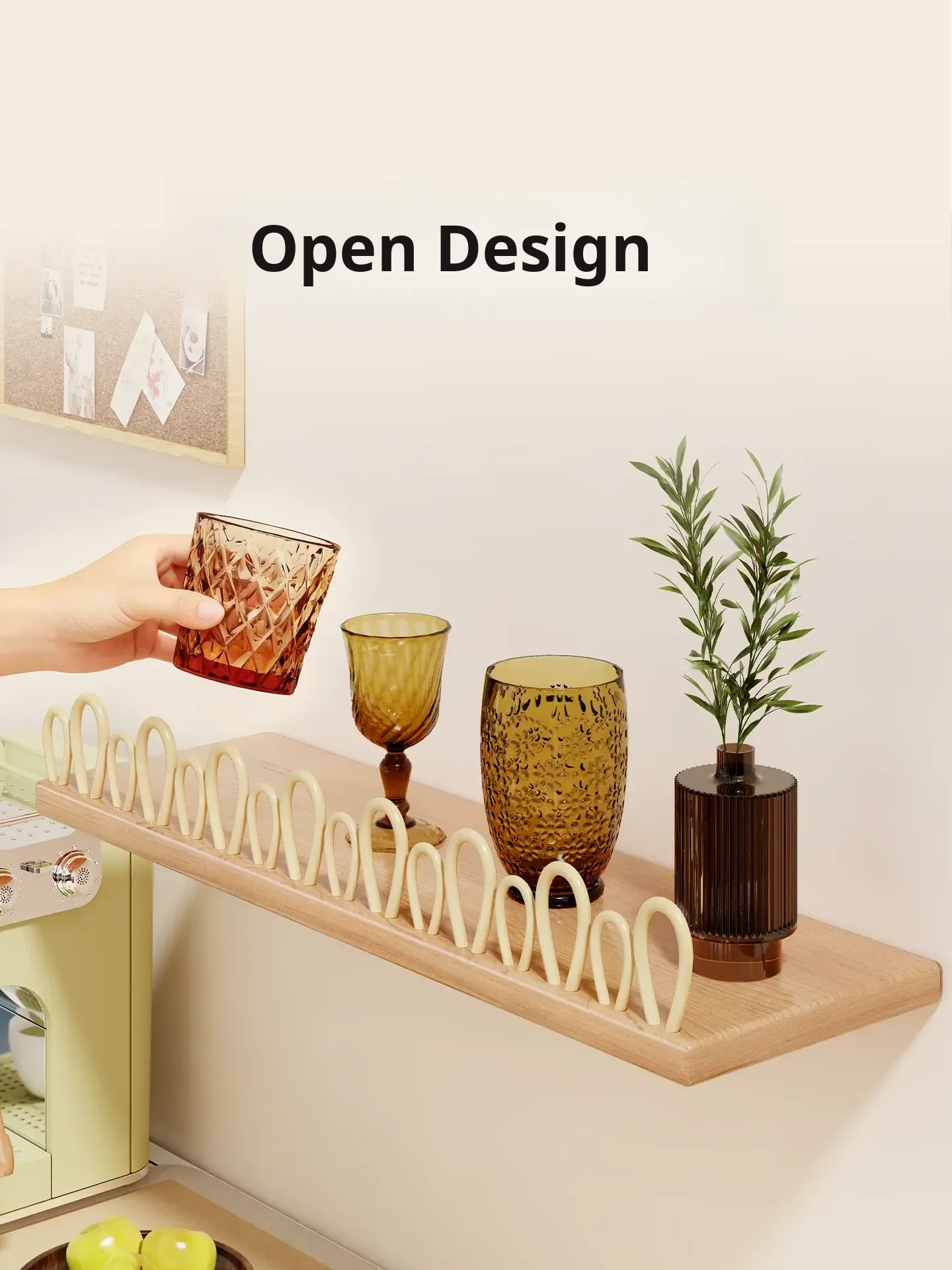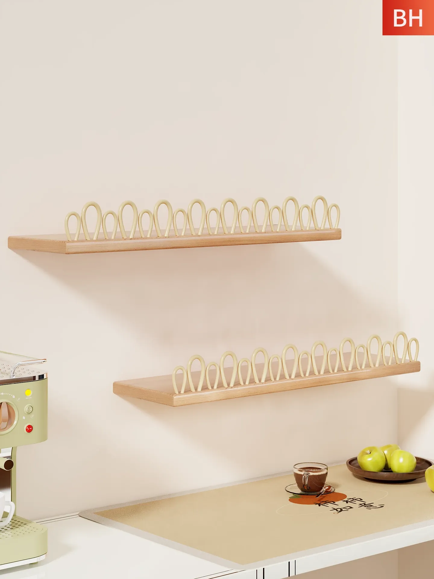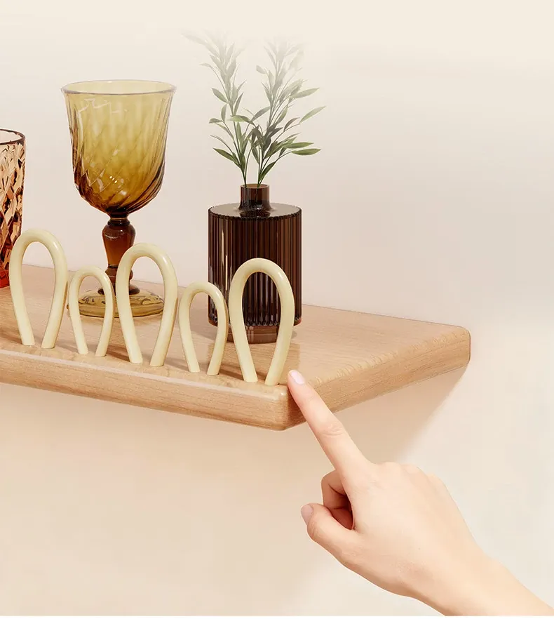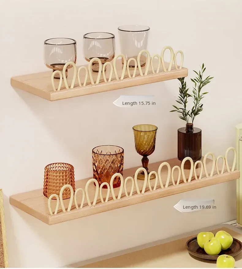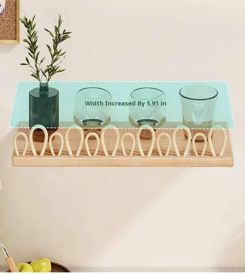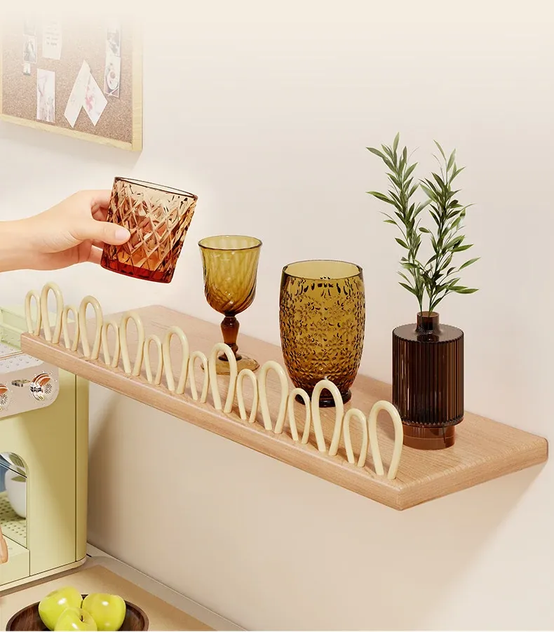 Solid Wood Wall-Mounted Cup Holder - Stylish Tea Cup Drying Rack & Kitchen Organizer for Efficient Space Saving and Elegant Decor