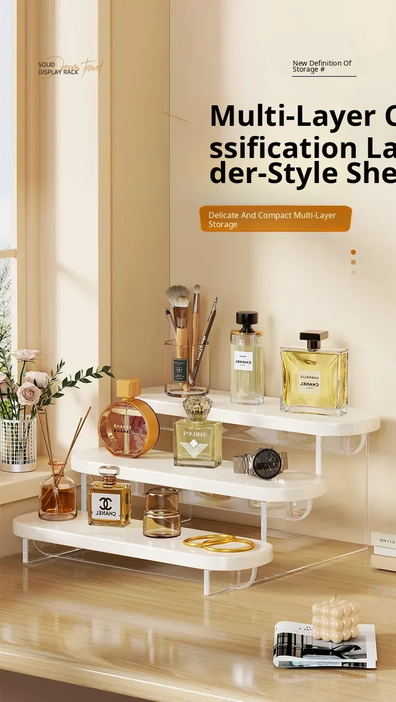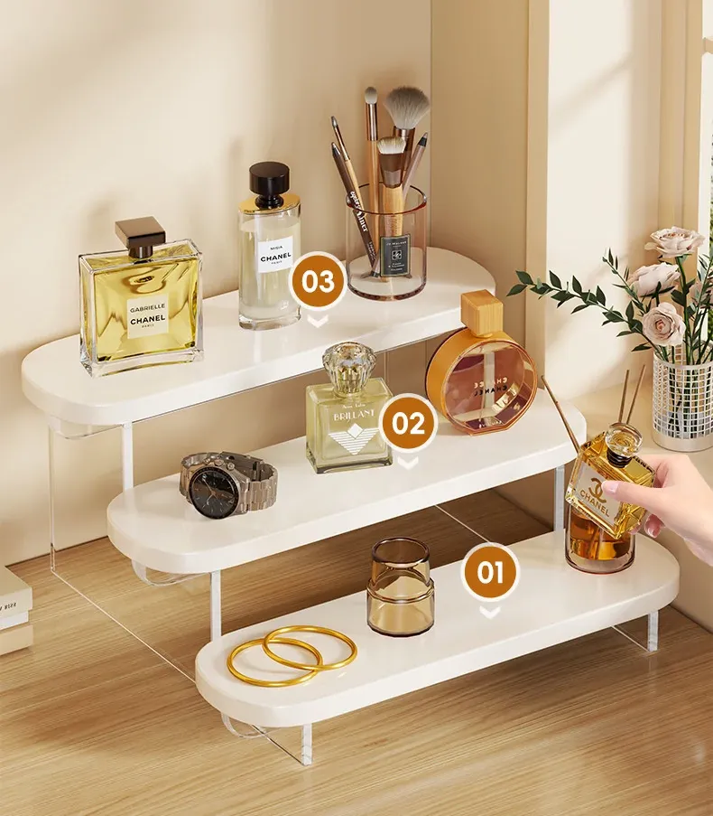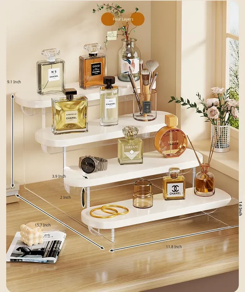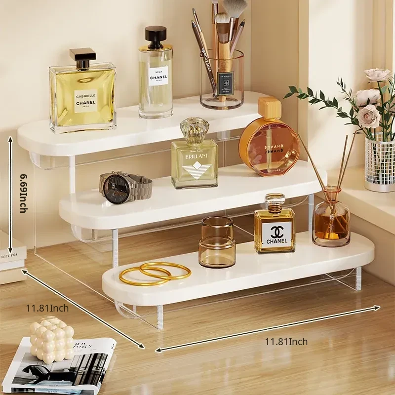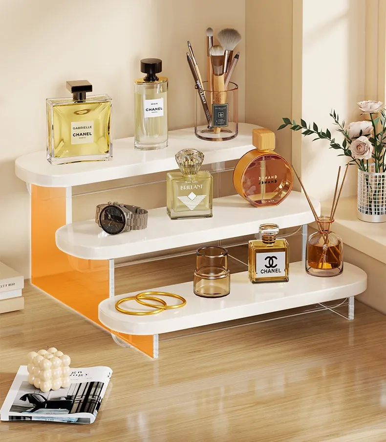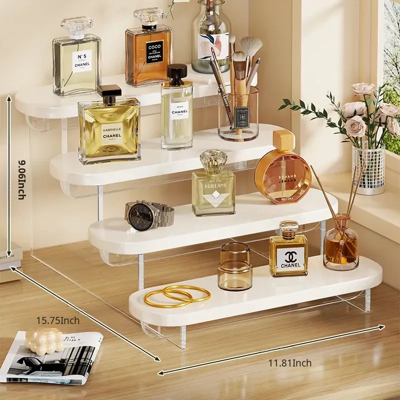 Stylish Acrylic Step Perfume Display Stand - Elegant Makeup Organizer for Vanity, Perfect for Skincare Products and Cosmetics Storage