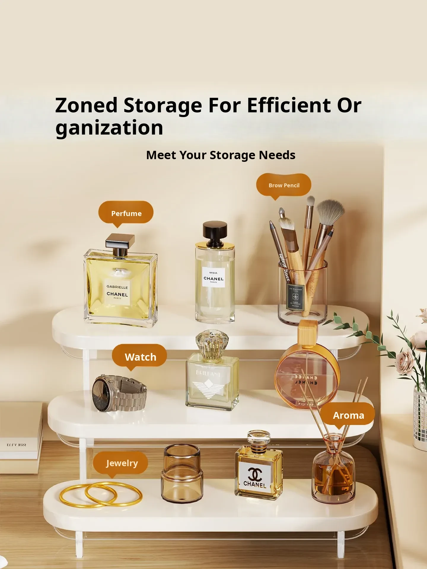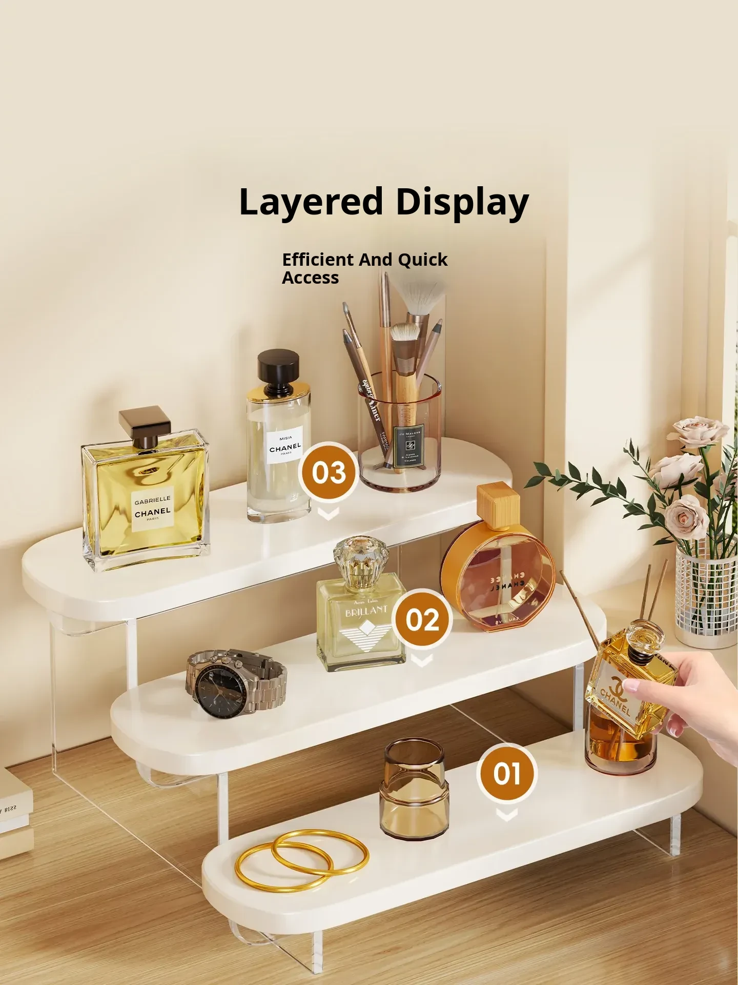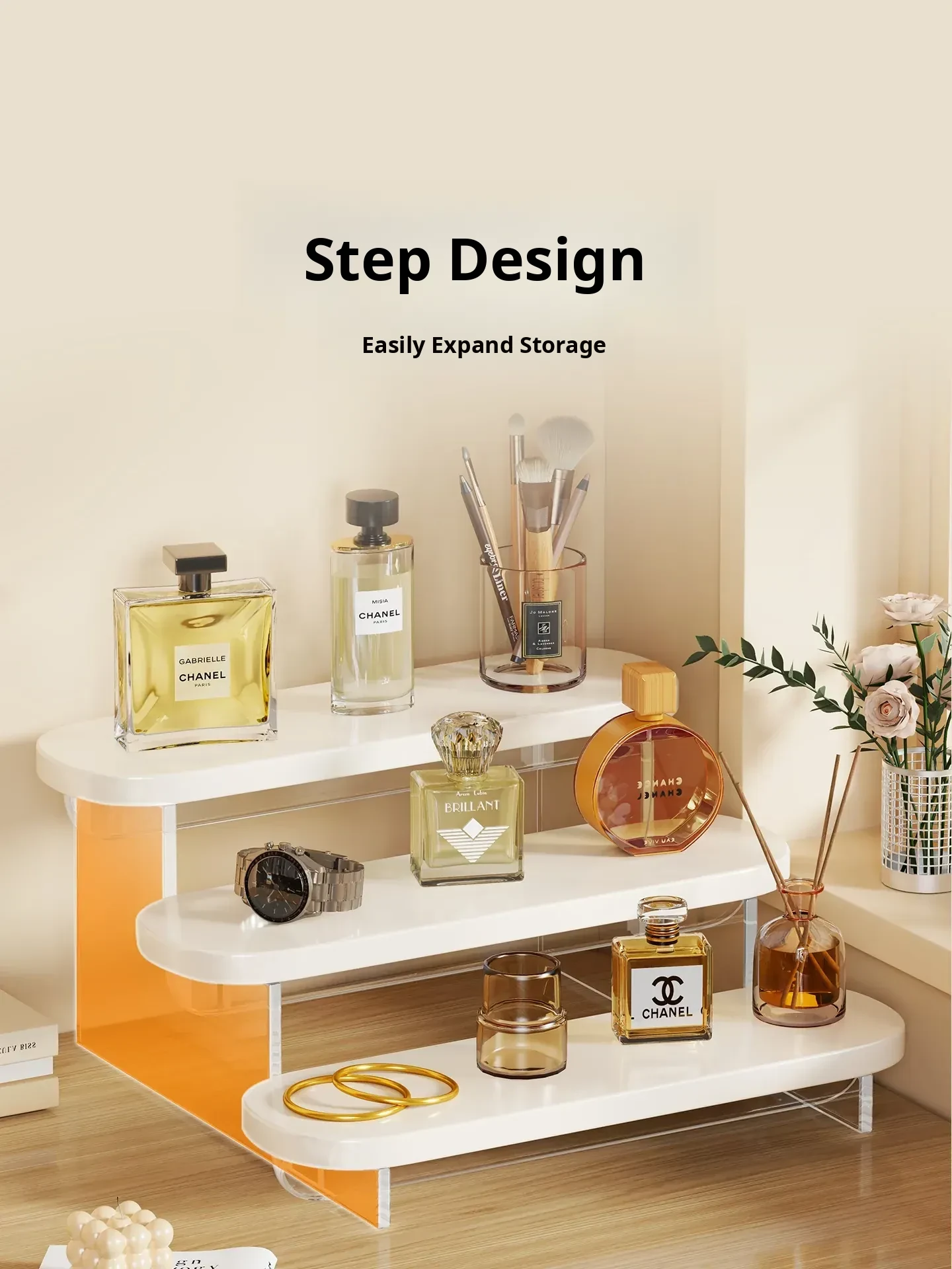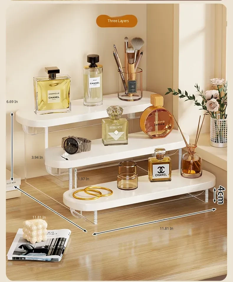 Stylish Acrylic Step Perfume Display Stand - Elegant Makeup Organizer for Vanity, Perfect for Skincare Products and Cosmetics Storage