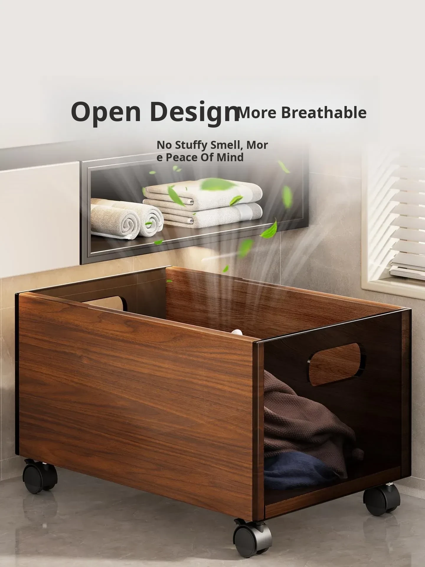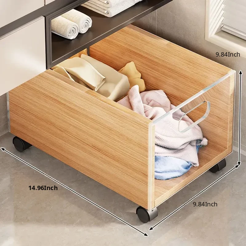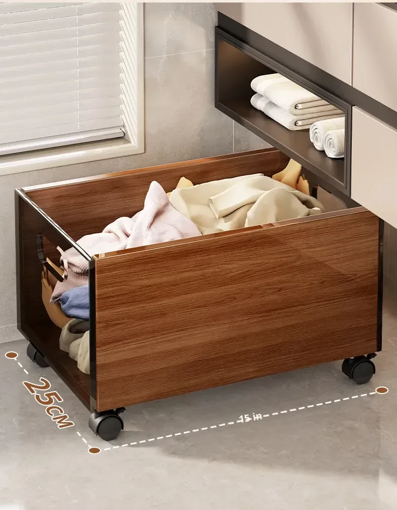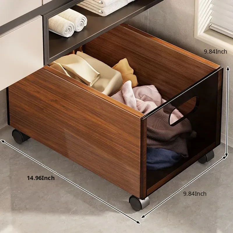 Stylish Bathroom Cabinet Under-Shelf Organizer with Movable Laundry Basket - Perfect for Tidy Storage Under Sink and Vanity!