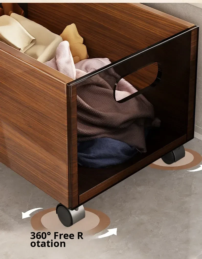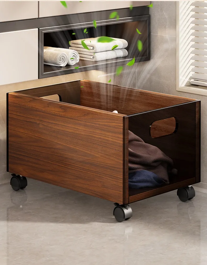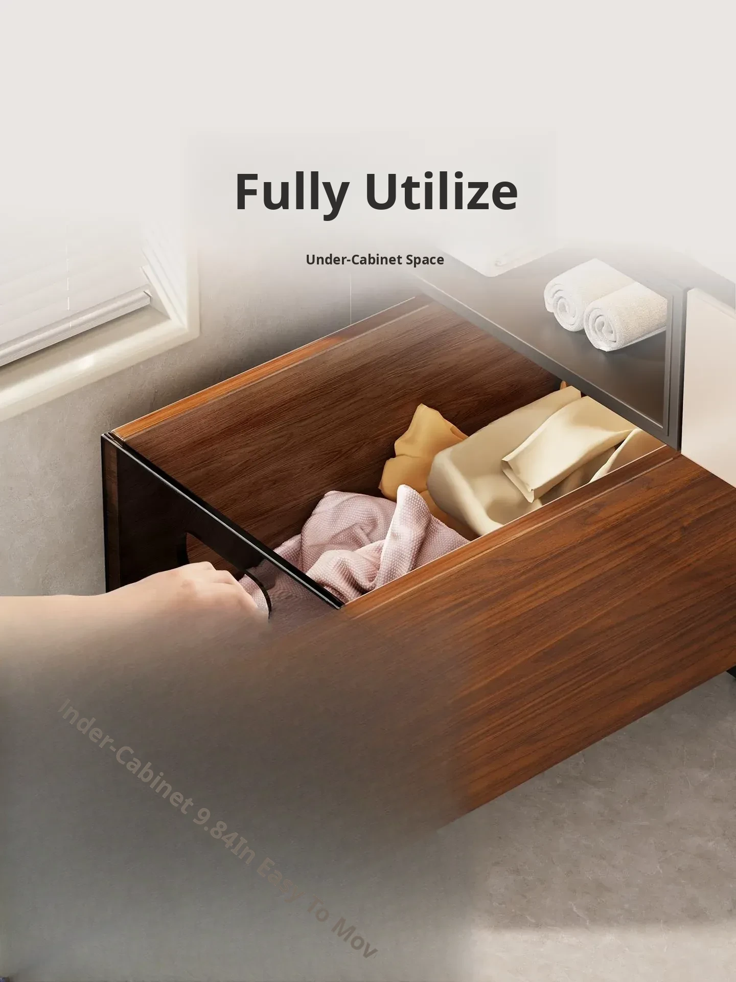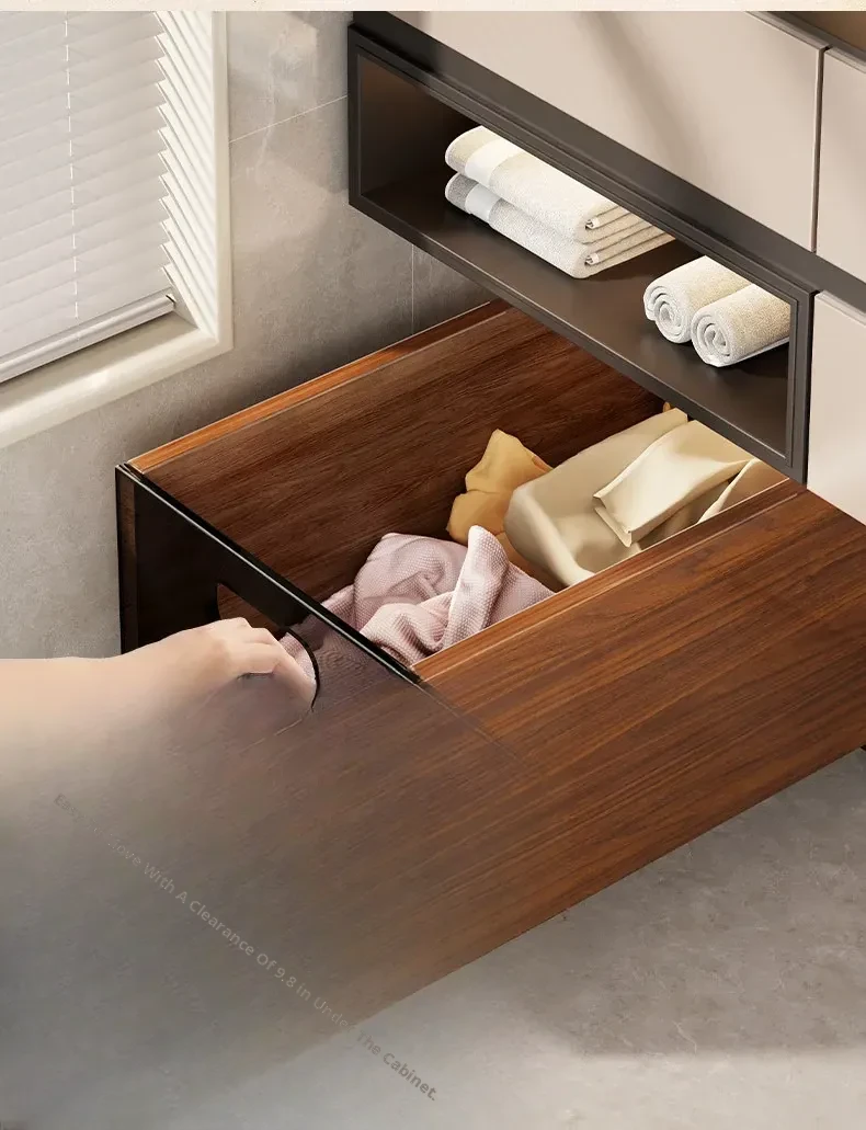 Stylish Bathroom Cabinet Under-Shelf Organizer with Movable Laundry Basket - Perfect for Tidy Storage Under Sink and Vanity!