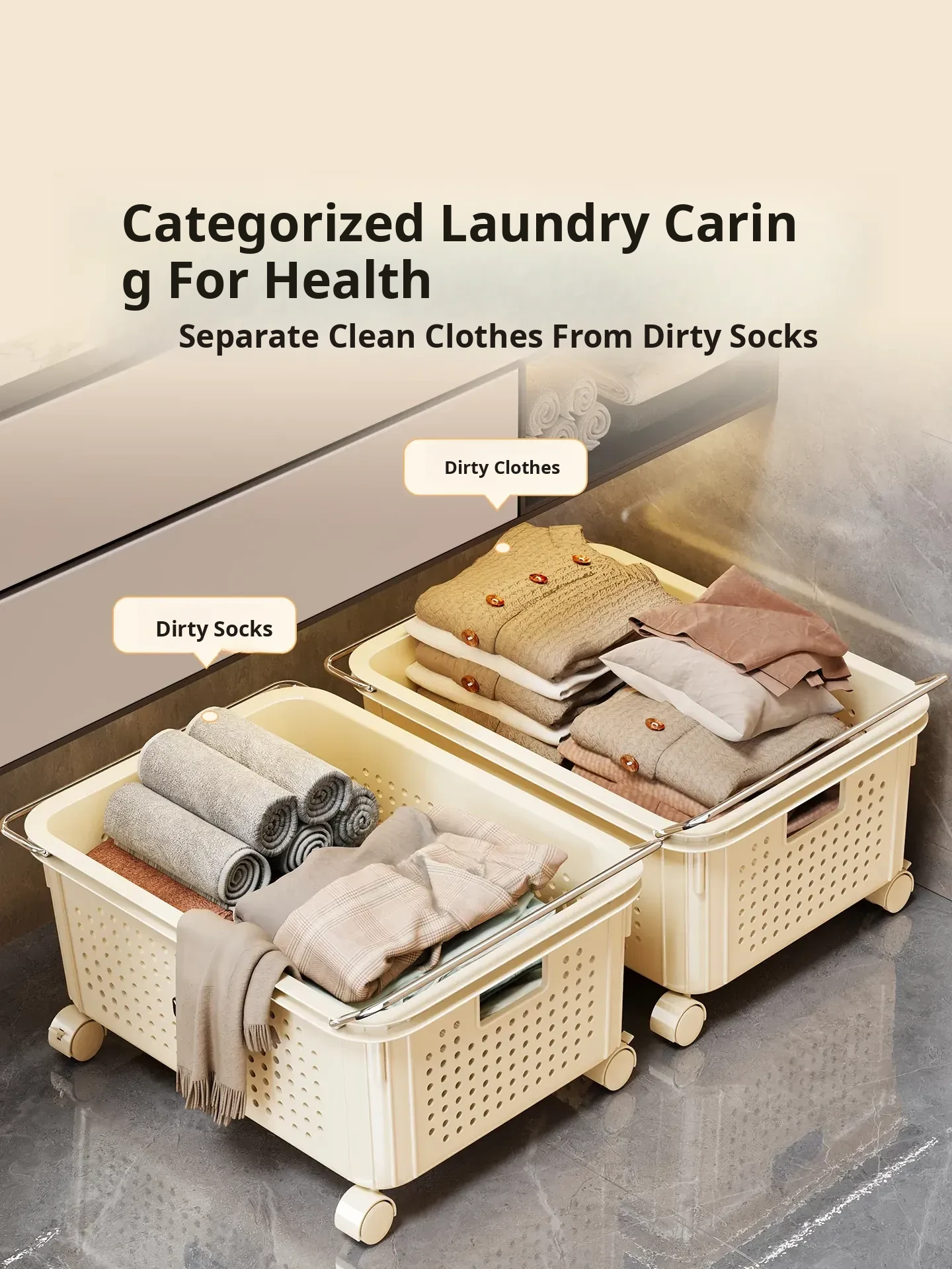 Stylish Bathroom Laundry Basket with Wheels - Elegant Home Storage Solution for Dirty Clothes, Perfect for Your Bathroom and Laundry Room!