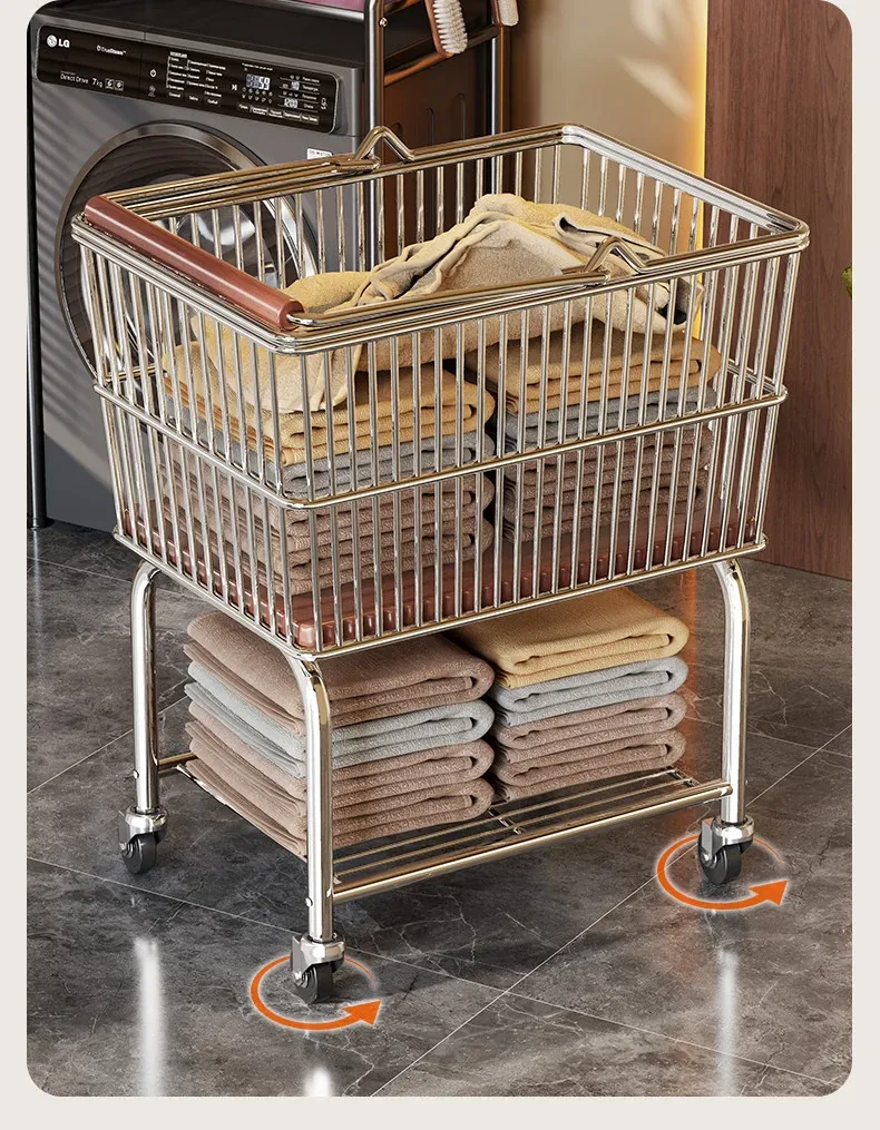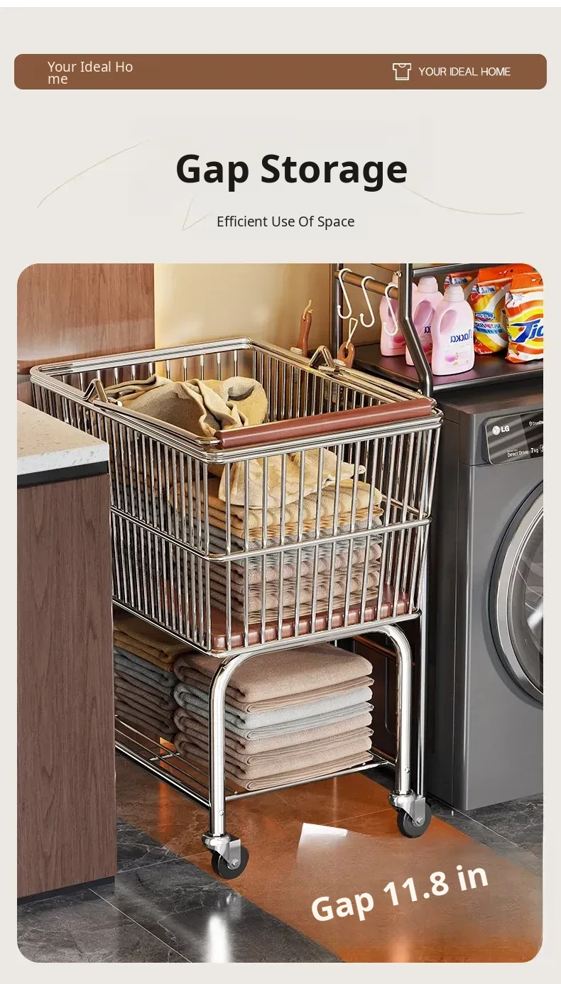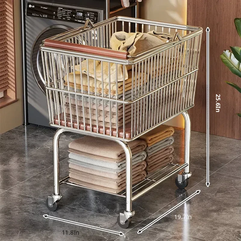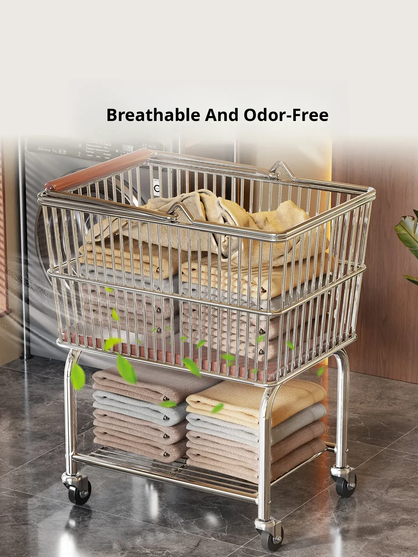 Stylish Portable Laundry Basket Cart - Chic and Functional Storage for Dirty Clothes in Bathroom or Laundry Room - Perfect for Home Organization