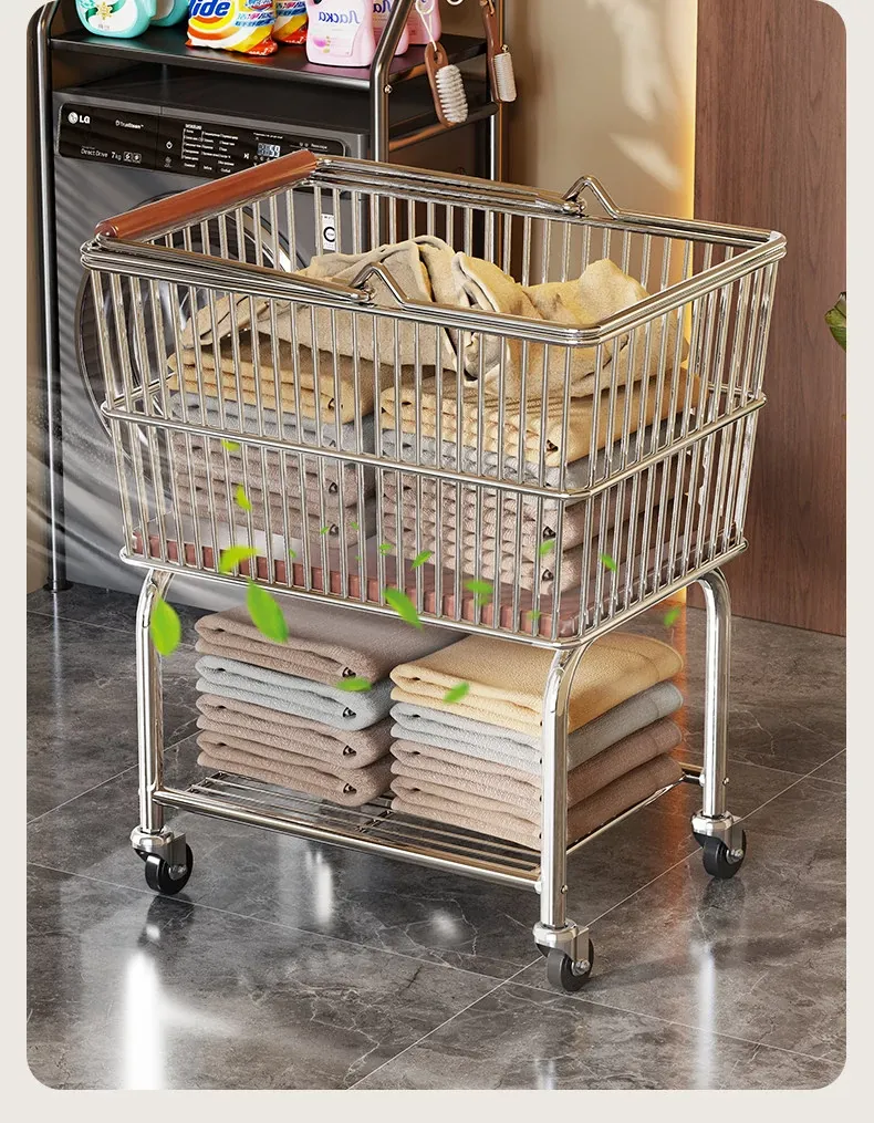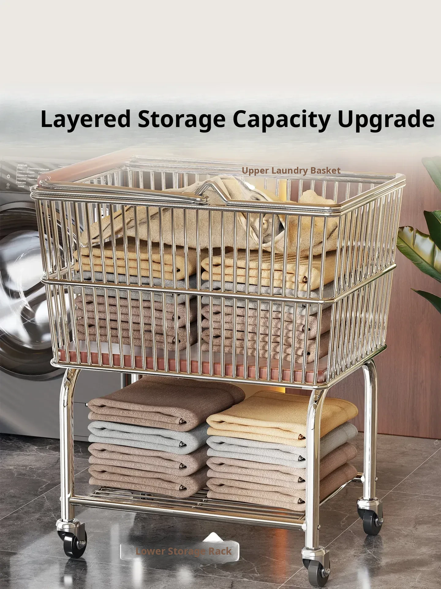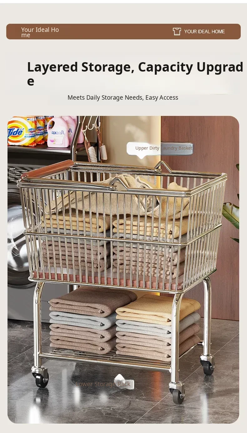 Stylish Portable Laundry Basket Cart - Chic and Functional Storage for Dirty Clothes in Bathroom or Laundry Room - Perfect for Home Organization