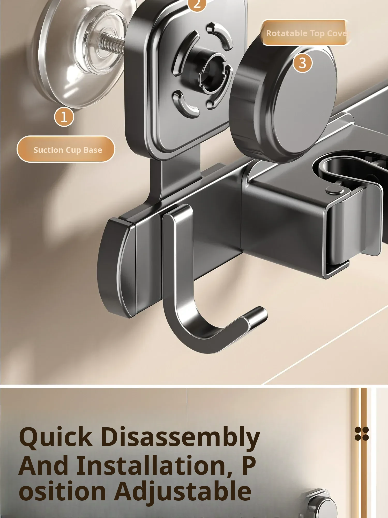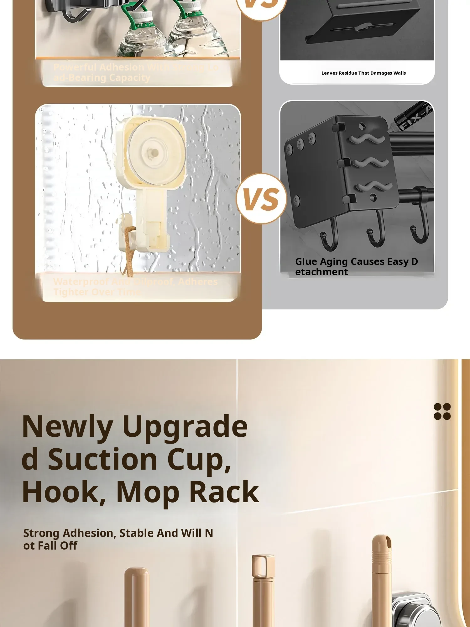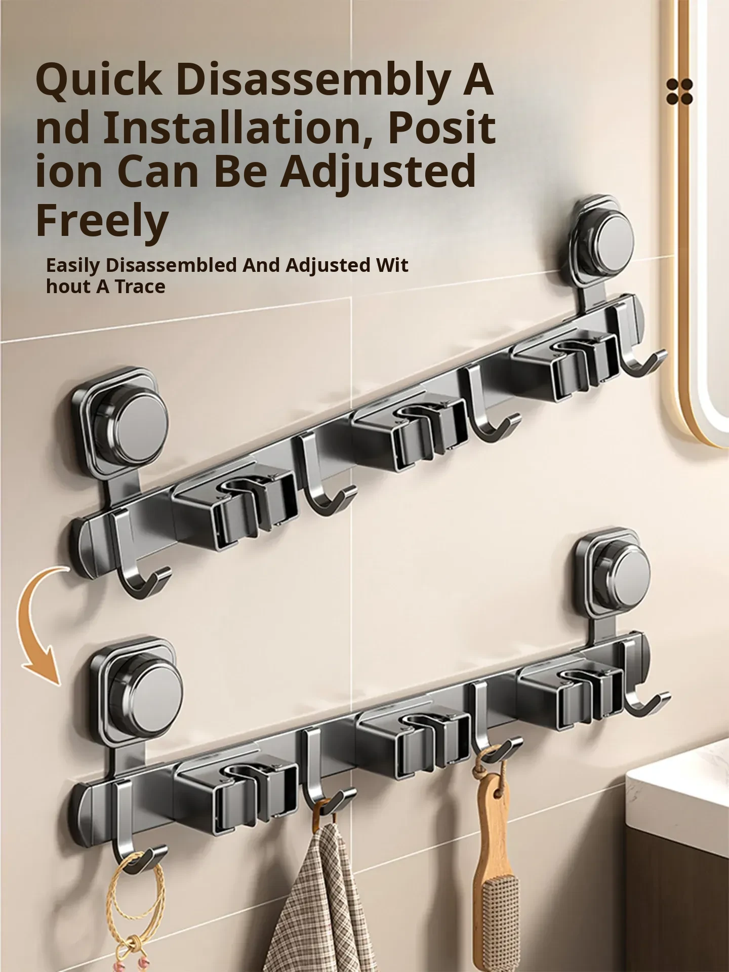 Suction Cup Mop Hook - Wall-Mounted, No Drilling Required Home Storage Rack for Bathroom & Toilet, Space-Saving Organizer Clip, Perfect for Keeping Your Space Tidy!