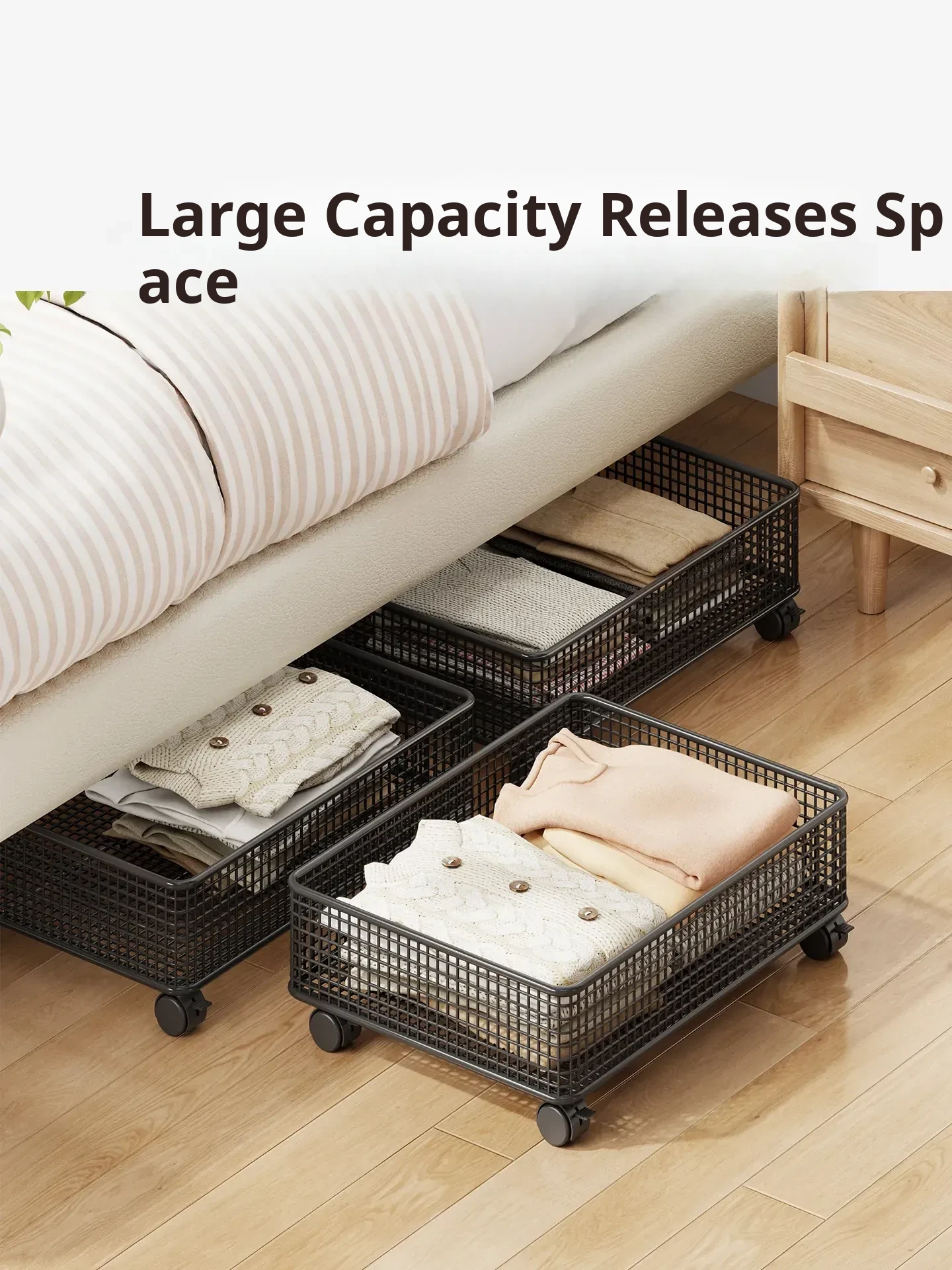 Under-Bed Storage Box with Wheels - Large Capacity Flat Pull-Out Drawer for Clothes, Perfect for Organizing Your Space!