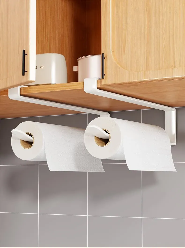 Under-Cabinet Kitchen Paper Towel Holder – Versatile Hanging Rack for Roll Paper, Oil Absorbent Paper, Cling Film, and Cloths – Maximize Your Space and Keep Your Kitchen Organized!
