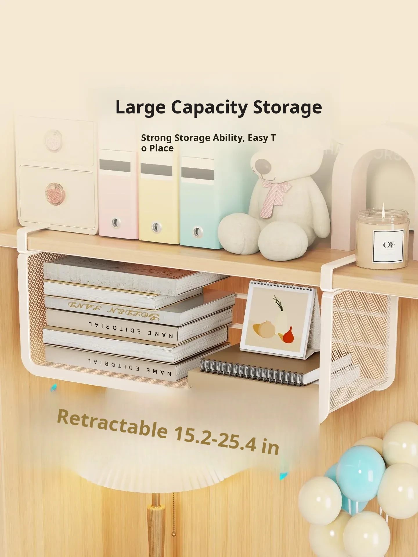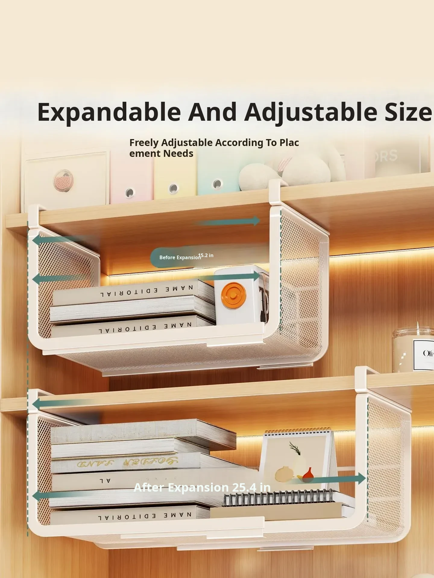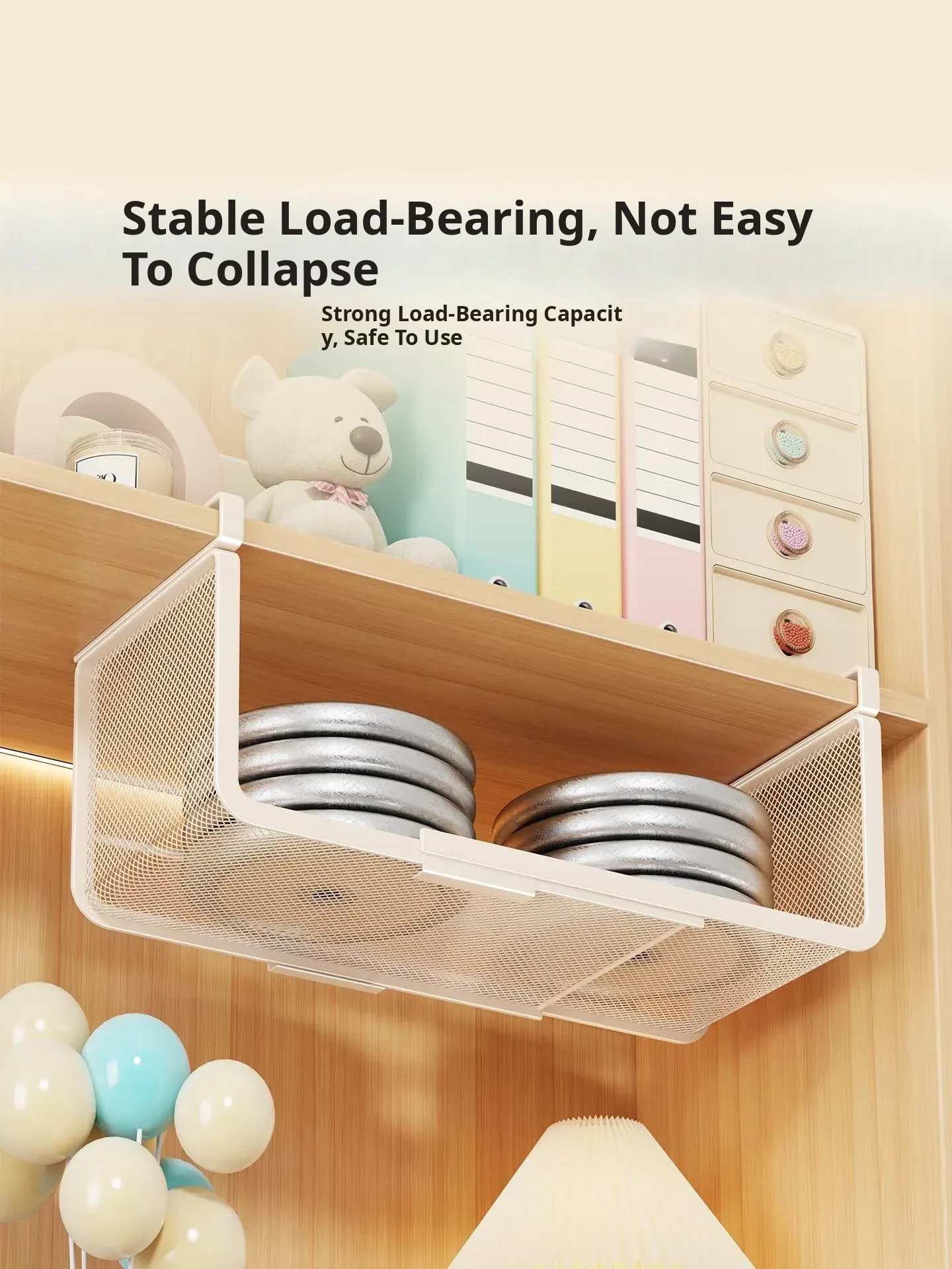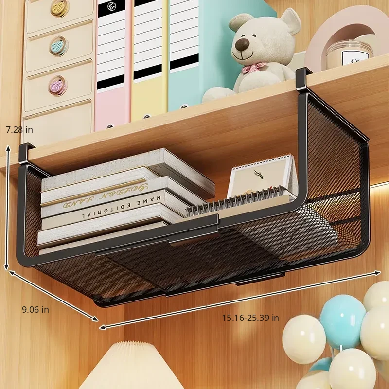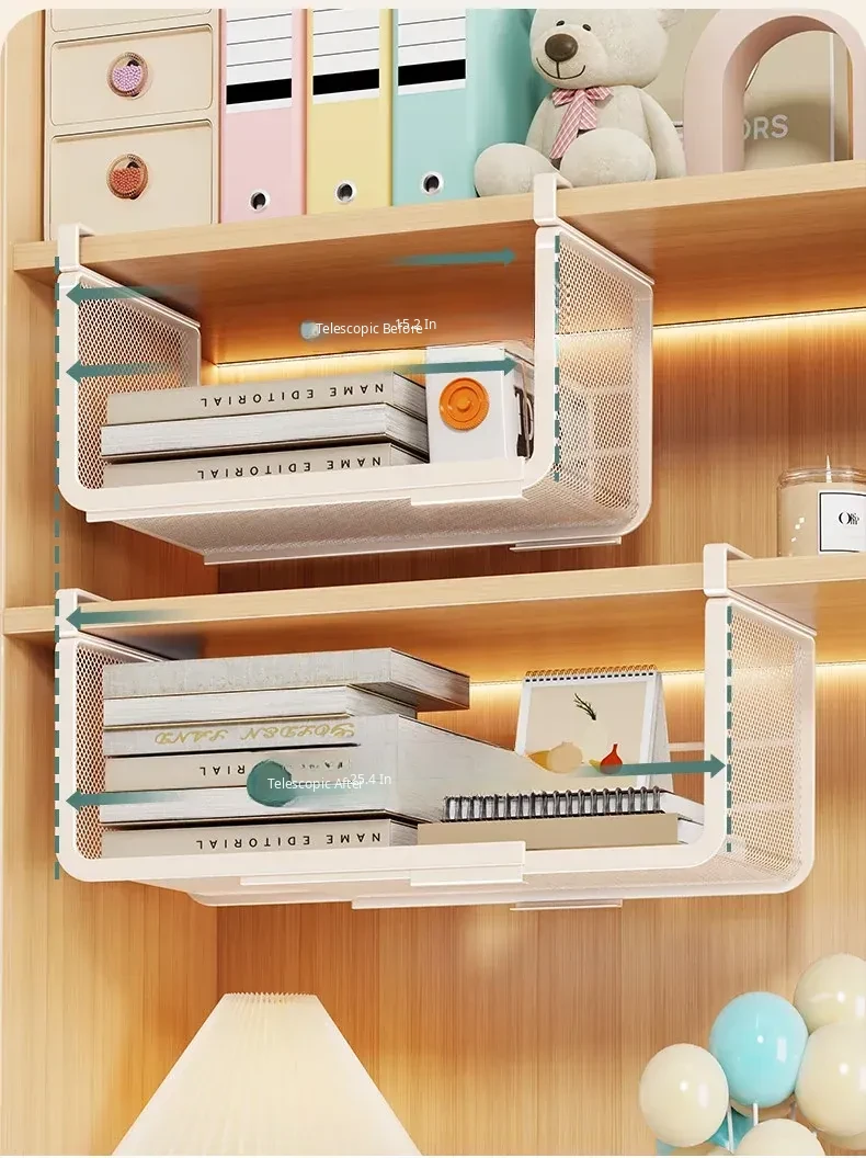 Under-Desk Storage Rack: Versatile Hanging Basket for Dorms, Multi-Layer Shelving for Bookcases and Cabinets, Desktop Hanging Organizer - The Ultimate Space-Saving Solution!