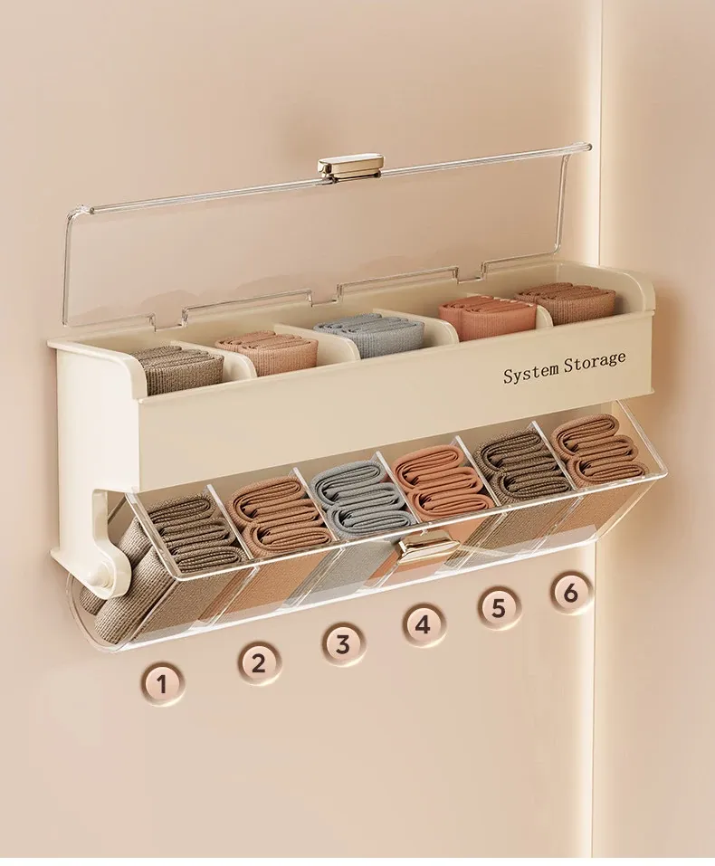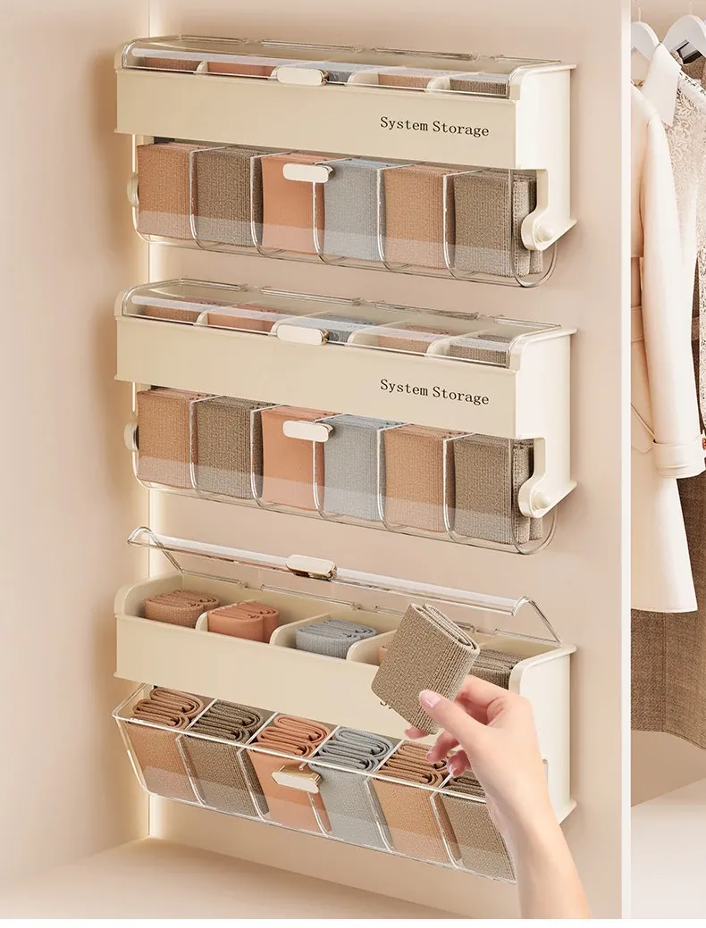 Underwear Organizer Box with Lid - Wall-Mounted Storage for Socks, Bras, and Lingerie - Essential Home Organizer for Closet and Drawer Space Saving