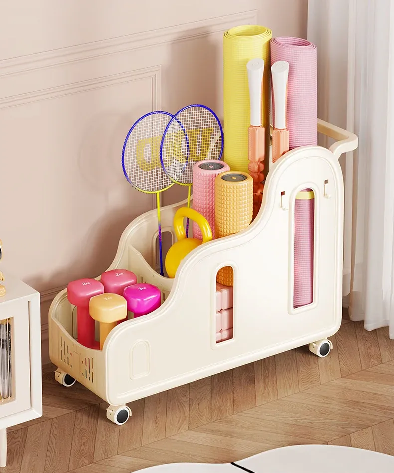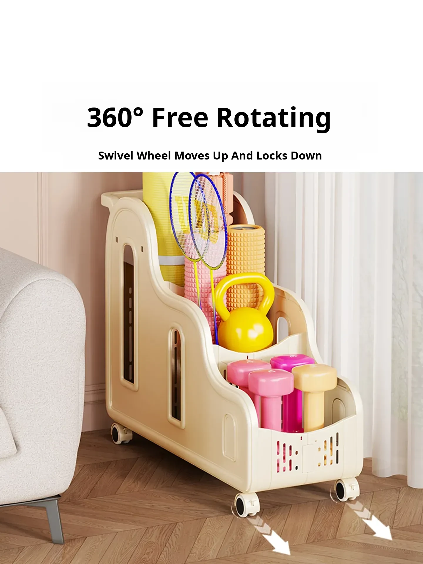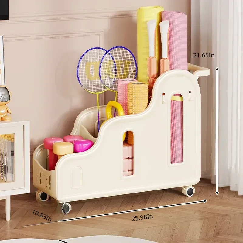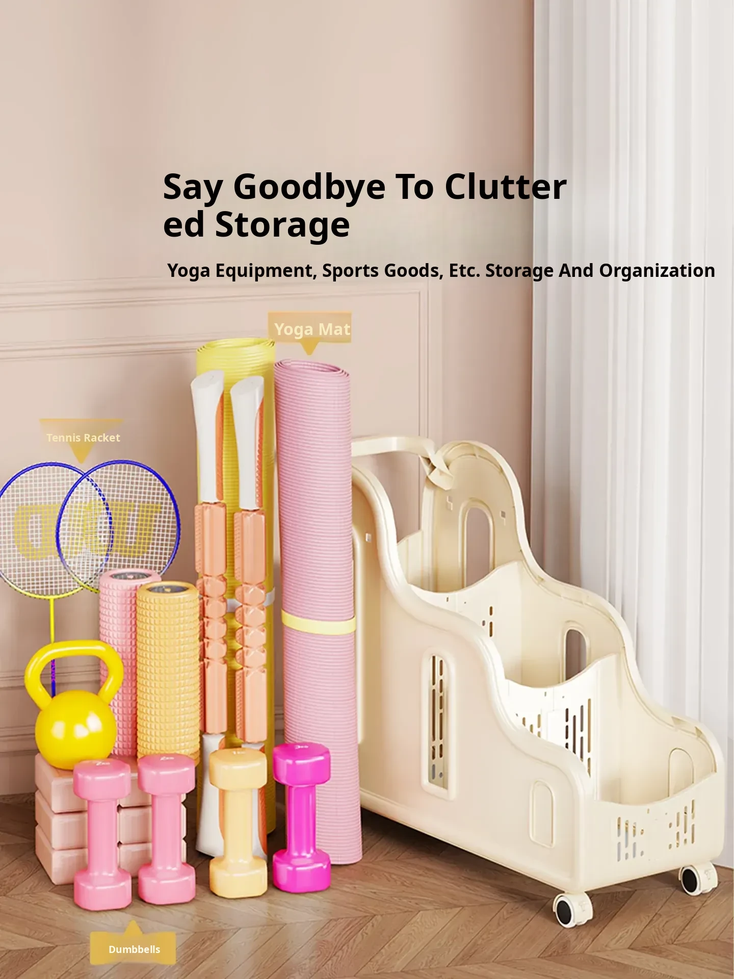 Versatile Home Gym Storage Cart - Mobile Organizer for Yoga Mats, Basketball Gear, and Fitness Accessories – Keep Your Workout Space Neat and Tidy!