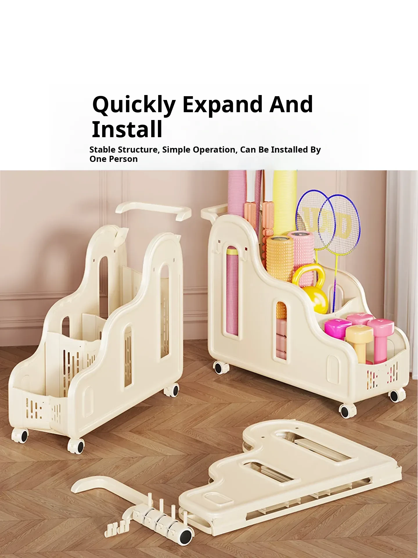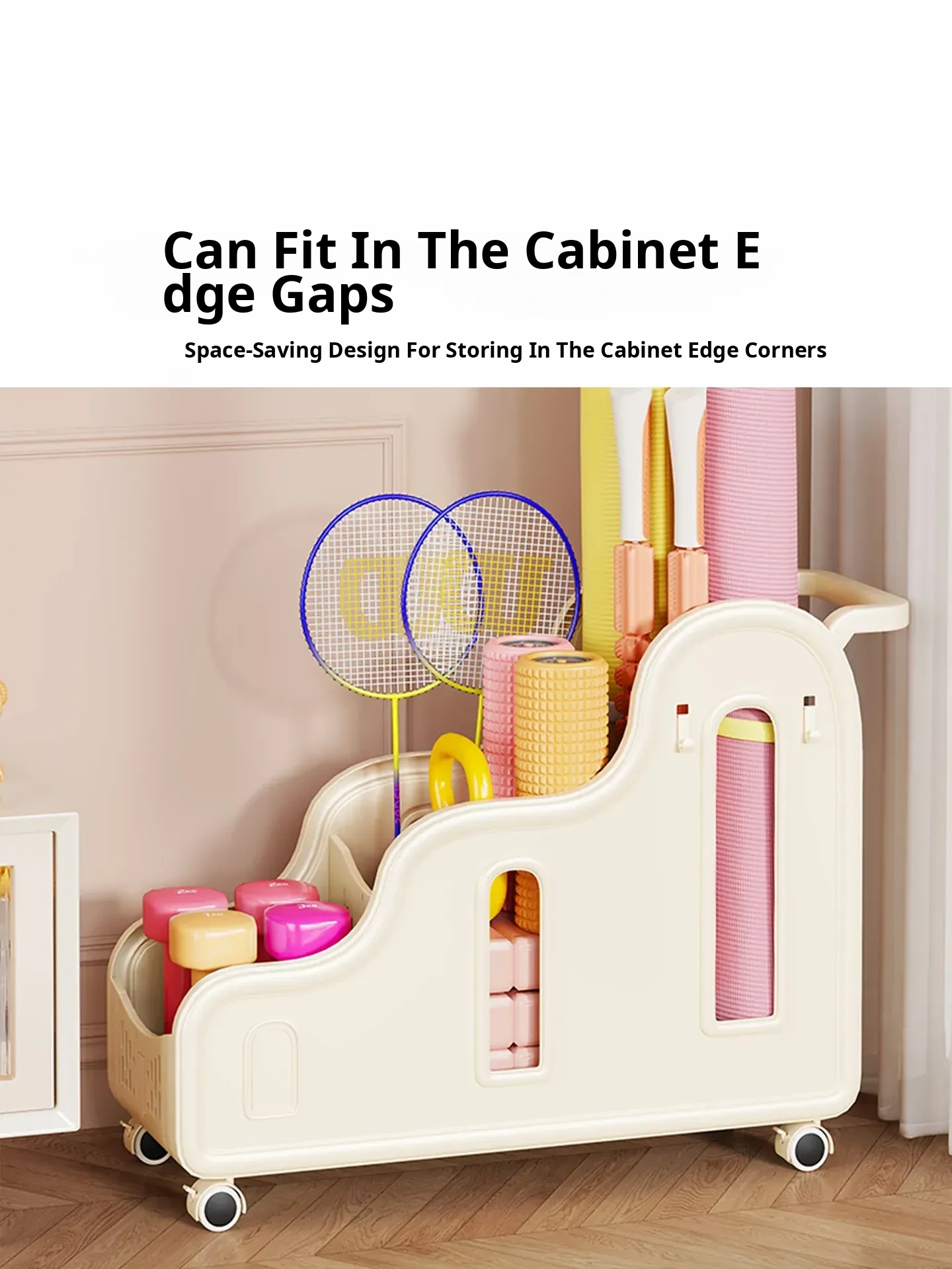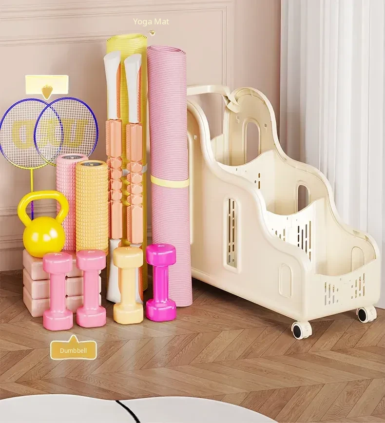 Versatile Home Gym Storage Cart - Mobile Organizer for Yoga Mats, Basketball Gear, and Fitness Accessories – Keep Your Workout Space Neat and Tidy!