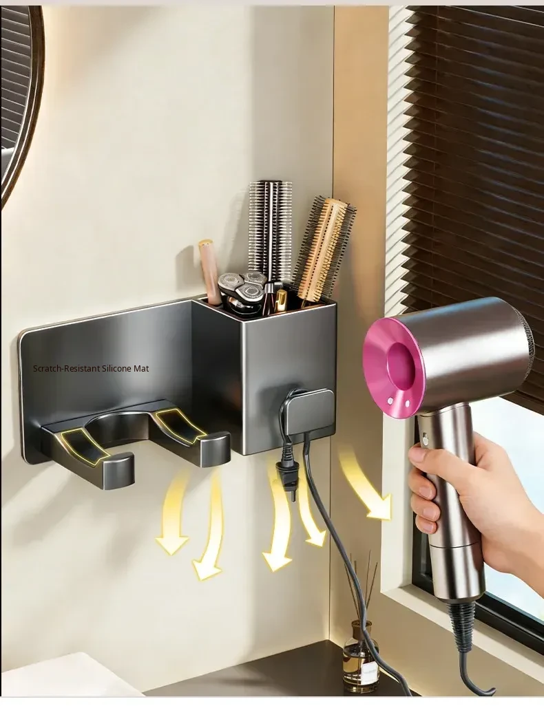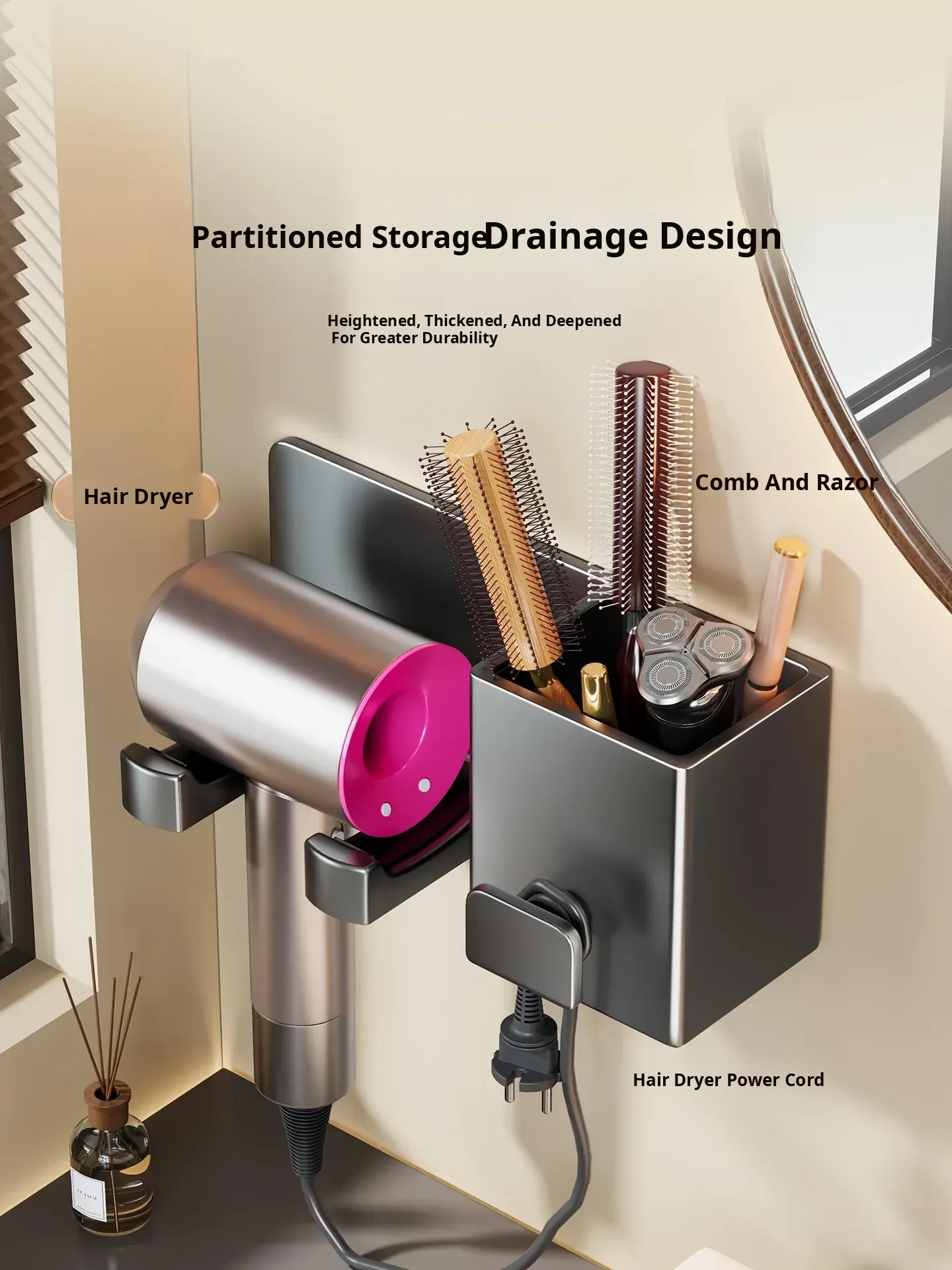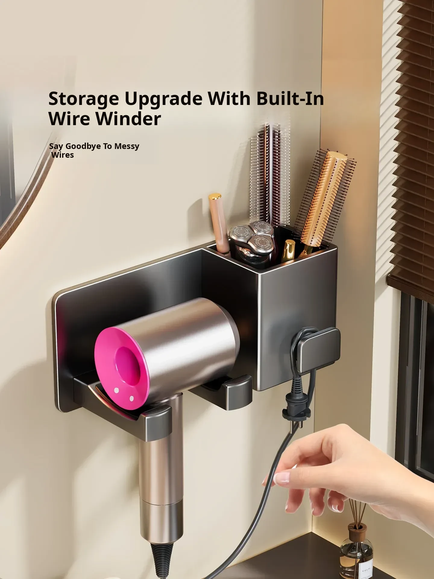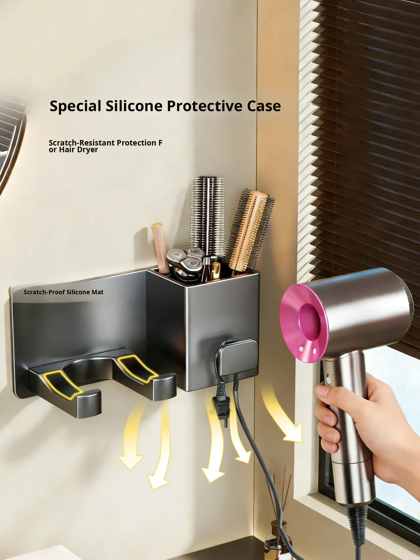 Wall-Mounted Hair Dryer Holder - No Drill Bathroom Organizer for Easy Storage and Stylish Display, Perfect for Keeping Your Space Tidy and Clutter-Free!
