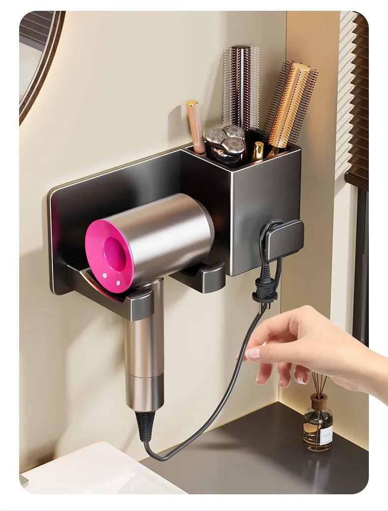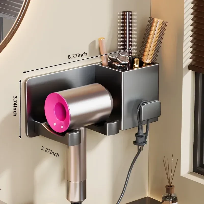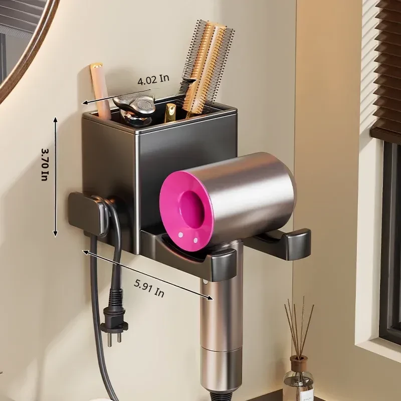 【 ❤ Hot Picks ❤ Gunmetal Gray Hair Dryer Holder with Storage Compartment