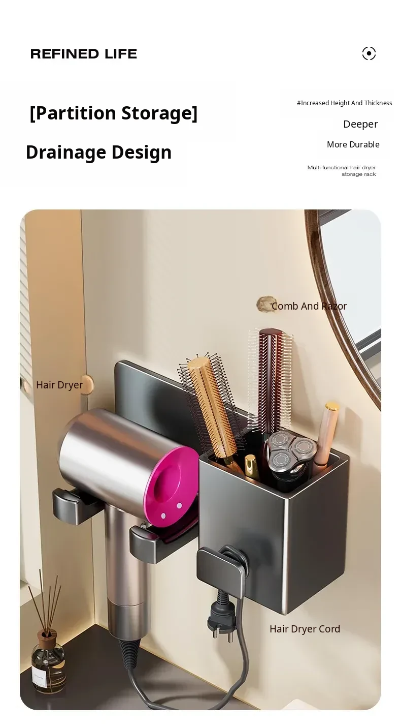 【❤Hot Picks❤】Pearl White-Hair Dryer Rack + Storage Compartment