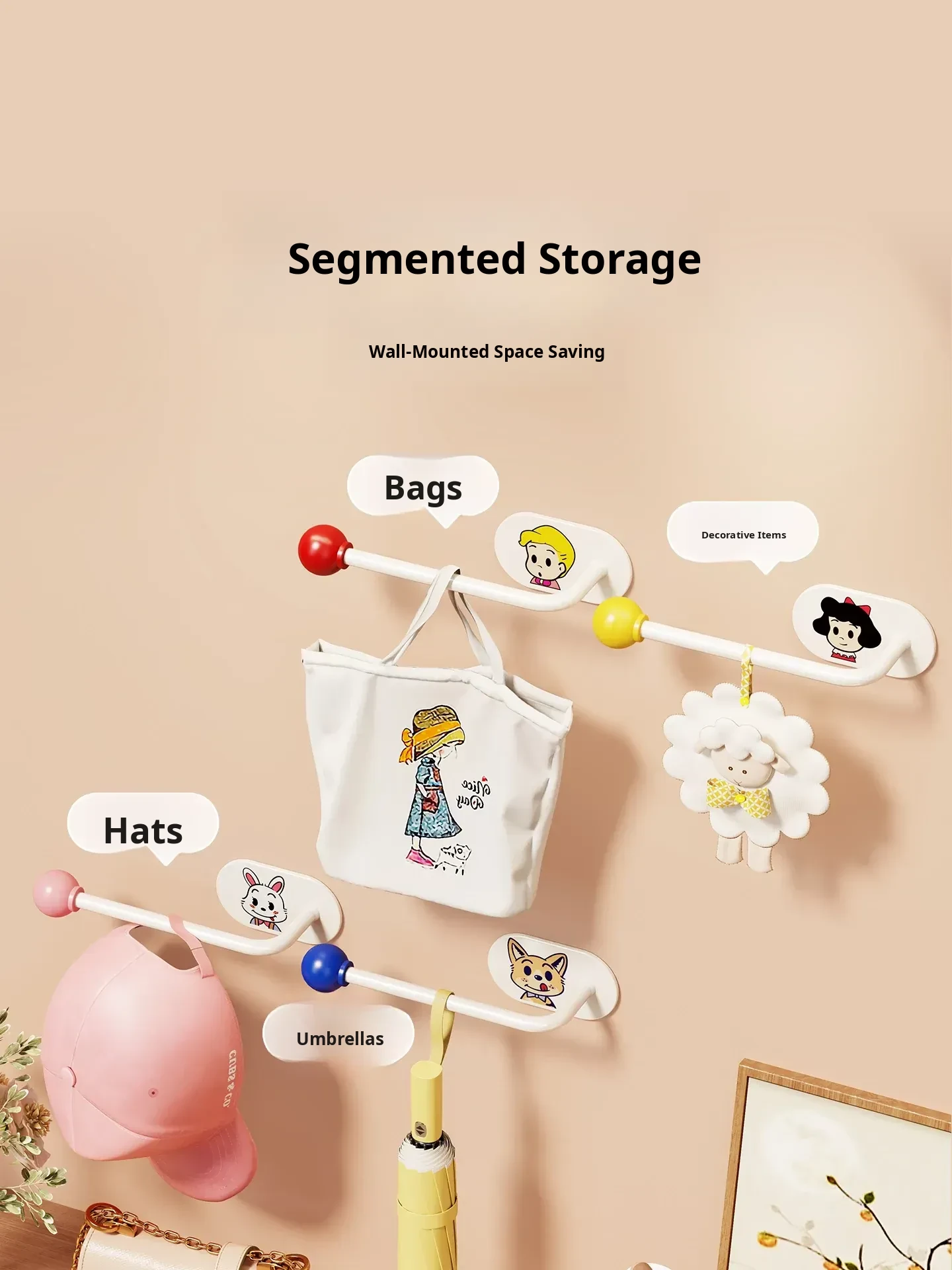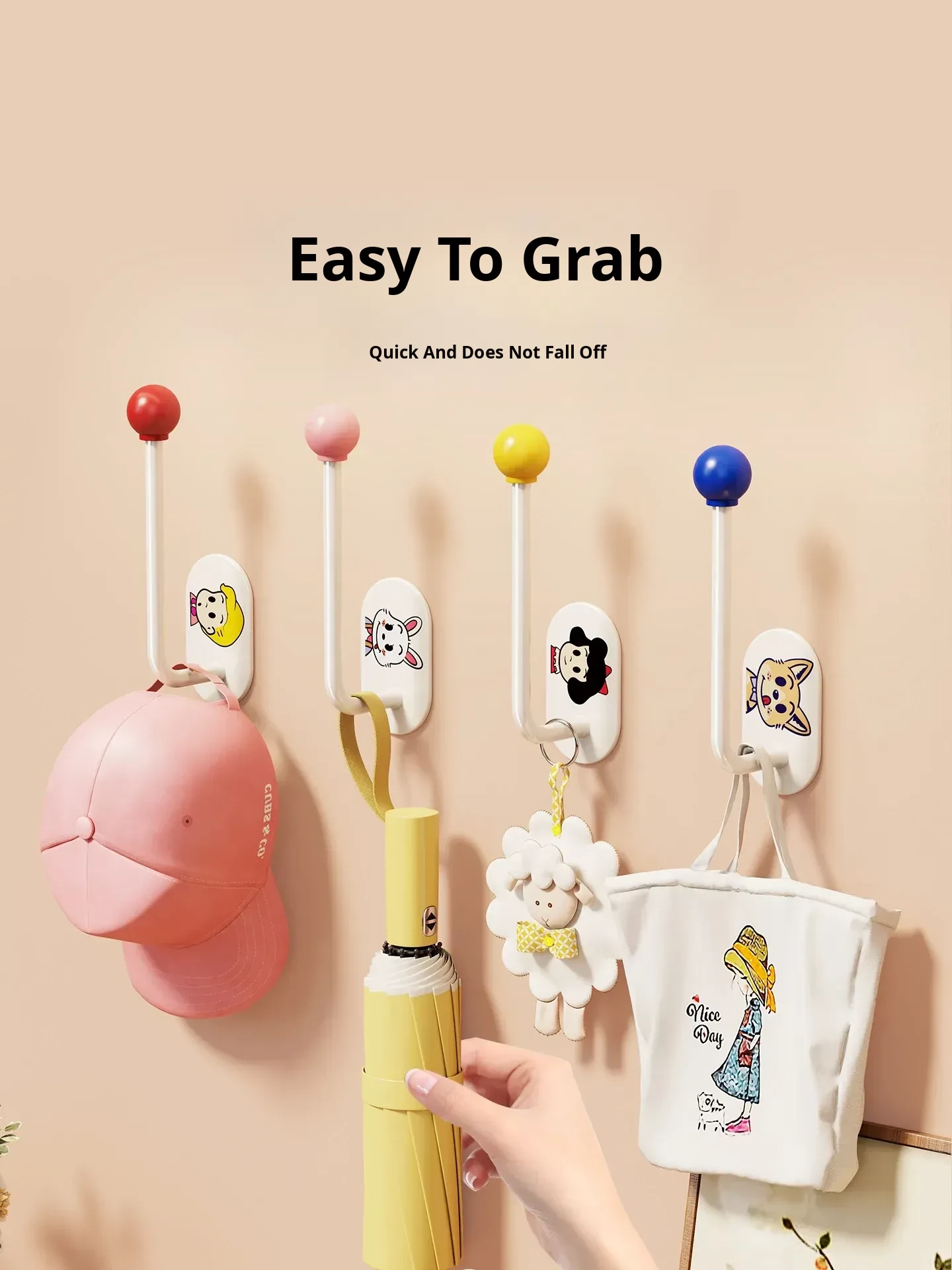 Wall-Mounted Hair Tie Organizer - No Drill Hooks for Bathroom, Perfect for Storing Hair Accessories, Shower Balls, and Clips - Space-Saving Solution for a Tidy Vanity!