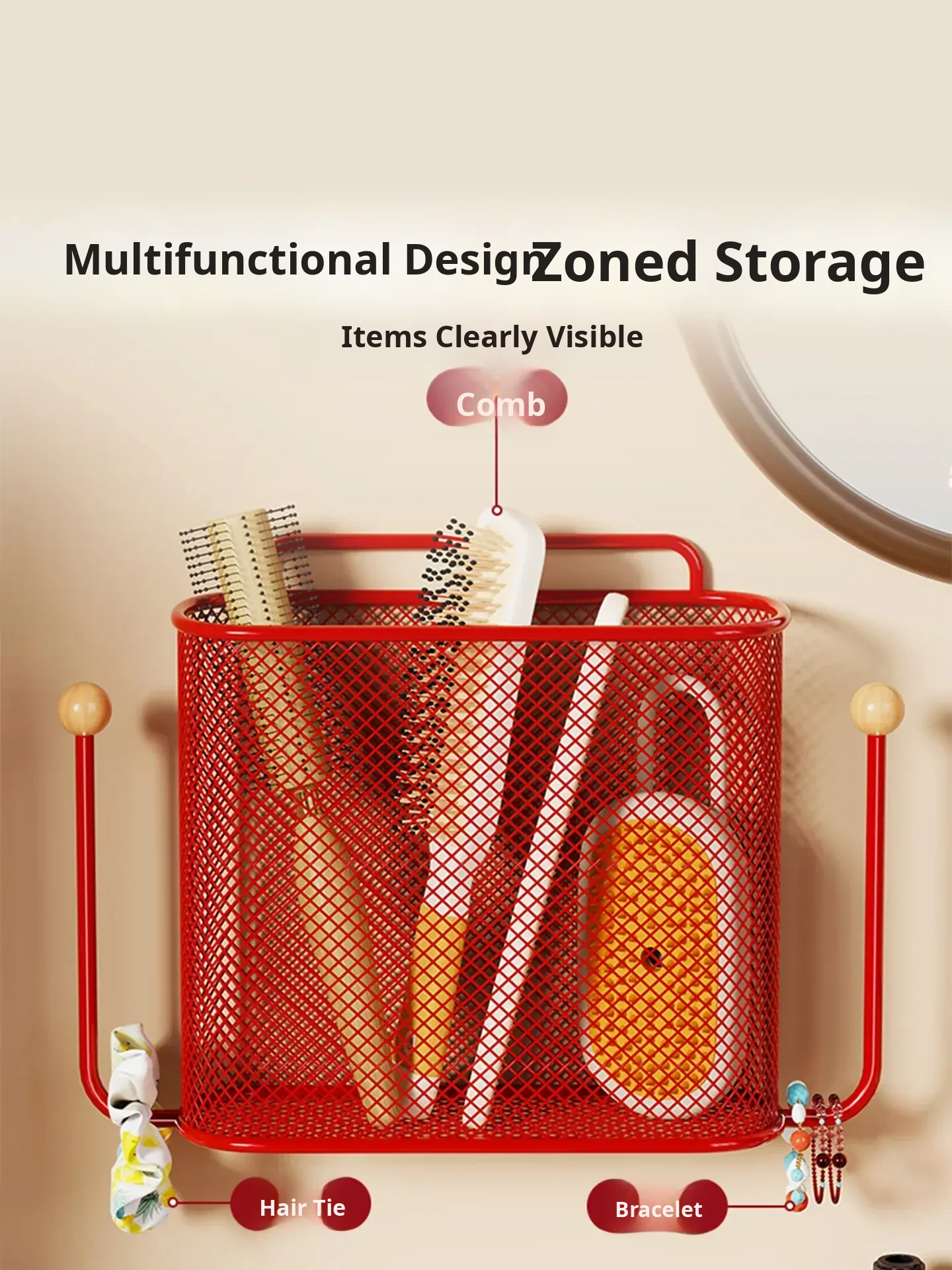 Wall-Mounted Hair Tie Organizer - No-Drill Headband Storage Rack with Hooks for Accessories - Stylish Bathroom Solution for Hair Bands and Scrunchies