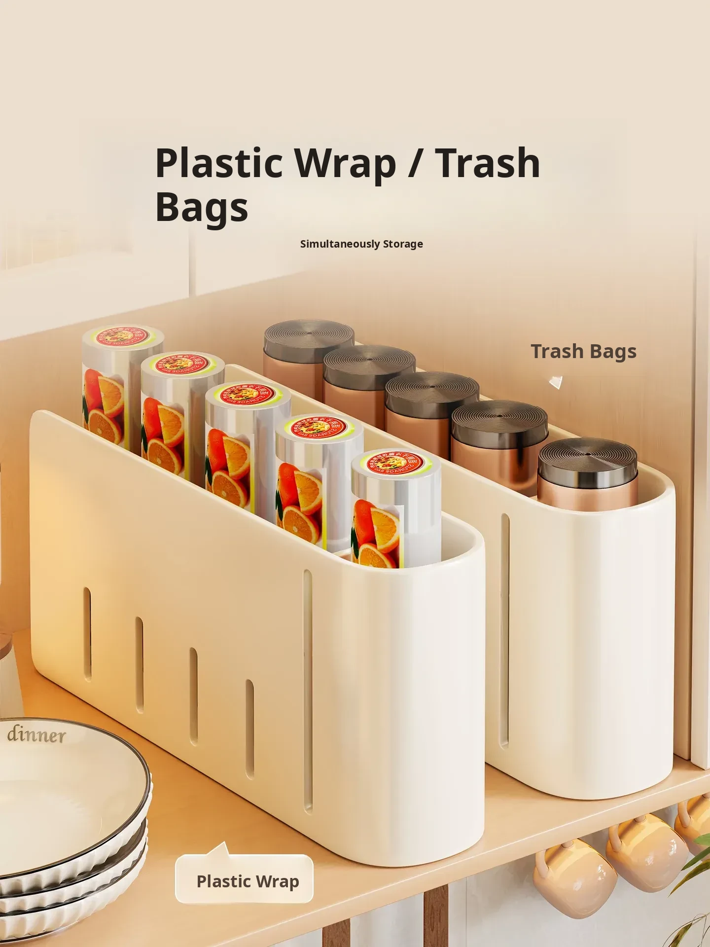 Cream White-Garbage Bag Storage Box [Seamless Sticker Nail-Free Installation]